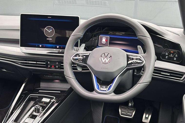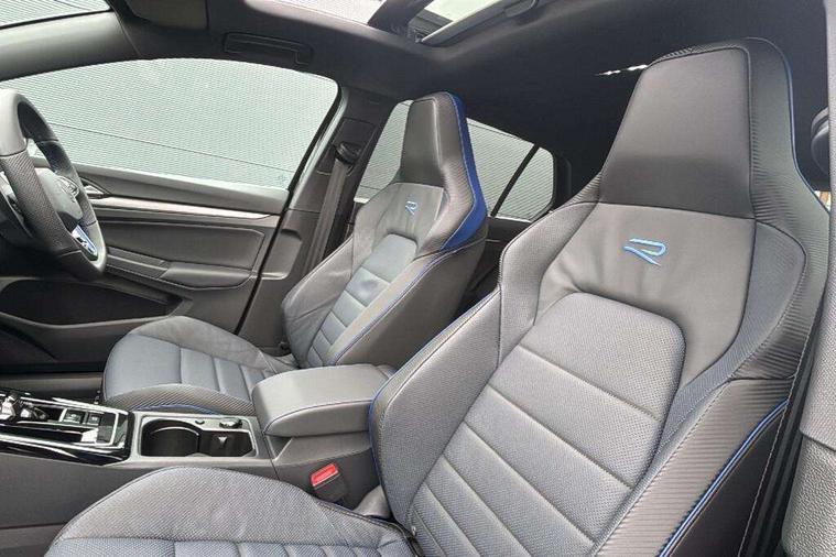 Activated carbon canister, Adaptive cruise control (ACC), Advanced driver attention and drowsiness monitor, Dynamic road sign display, E-Sim card for online connectivity, eCall emergency call system, Electronic maximum speed limit increased to 270 km/h, includes driving Modes 'drift' and 'special', larger roof spolier and GPS laptimer + G-Meter, Multi-color Digital cockpit pro, selection of different info profile possible, Multifunction front facing camera for distance control, Navigation system, Oncoming vehicle braking when turning including swerve support, Progressive steering, Side assist blind spot lane change system, rear traffic alert and exit warning system, Speed limiter, Speedo, rev counter, electronic odometer, trip, service interval display, exterior temperature and fuel gauge, Traffic jam assist, Voice enhancer and voice control, Warning signal and warning light for front and rear seatbelts not fastened, We connect plus preparation, We connect preparation, Wireless app connect, All wheel drive - 4Motion, Petrol Particulate Filter, Start-stop system with battery regeneration (recuperation - energy recovery during braking), XDS electronic differential lock for improved traction and handling, 2 USB C ports in front, 2 USB charging sockets on the centre console in the rear charging capacity upto 45W, Digital radio reception (DAB), Diversity antenna for FM reception, Gaming platform via car app, Infotainment system with 12.9" display, Mobile phone interface with inductive charging feature, 3rd brake light, Auto dimming rear view mirror, Automatic headlamp activation with Coming home and Leaving home feature, Black badge on B-pillar, Black mirror caps, Black strips on radiator grille and headlights, Body colour door handles, Darkened headlights, Darkened R Logos and VW logos in front, rear and on fender, Exterior mirrors convex on the left and aspherical on the right, Front and rear electric windows, Front fog lamps and cornering light, Heat insulating windshield made of laminated glass, Illuminated lighting animation with wake up/goodbye scenario, LED matrix headlights with ambient light V2, advanced high beam, dynamic range contol with cornering, LED rear lamp with indicator, poor weather, LED separate daytime running light, Light assist with High beam control, R name plate, Rain sensor, Rear fog light on one side and reversing lights on both sides, Rear side wing doors, Rear tinted glass 65% light absorbing from B pillar backwards, Rear windscreen washer and wiper with interval delay, Remote electrically foldable door mirrors, puddle lights and reverse activated passenger's door mirror, Welcome light with surround lighting, 12V socket in front centre console, 12V socket in luggage compartment, 3 rear head restraints, 3 seat bench in 2nd row, 30 colour ambient lighting, illuminated center console storage compartment in front, Air care climatronic 3 Zone automatic climate control with rear air conditioning control panel, Aluminium gearshift handle, Brushed stainless steel pedals, Chrome plated radiator grille inserts, air vent surrounds and light switch surrounds, Entry lights, Front + rear black carpet mats, Front centre armrest, Integrated front head restraints, ISOFIX anchors for child seats on outer rear bench seats and on front passanger seat compatible for i-Size, Luggage compartment lighting, Rear cupholder and loadthough, Single front passenger seat, Soul black instrument panel, Soul black roof lining, Split folding backrest with centre armrest and unsplit rear seat bench, Sun visors with illuminated vanity mirrors, Driver assistance pack - Golf Estate/Hatchback Auto, R styling pack - Golf, Technology park and comfort pro package - Golf Hatchback, 3 point height adj front seatbelts + pretensioners, 3 rear three point seatbelts, ABS, Autonomous emergency braking front assist with pedestrian and cyclist monitoring, Child locks on rear doors, Driver and front passenger airbag with front passenger airbag deactivation, Electronic parking brake with auto hold, ESC (Electronic Stability Control), Extended pedestrian protection measures, Front and rear black brake calipers with darkened R-logo, Hill start assist, Rear disc brakes, Two tone horn, Tyre pressure loss indicator, Volkswagen roadside assistance, Anti theft wheel bolts, Preparation for alcohol interlock, Sporty vehicle dynamics, Tool kit for tyre mobility set, Tyre mobility kit Includes 12V compressor and tyre sealant, Wheel hub cover with darkened R-logo,