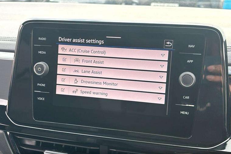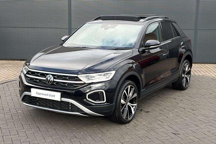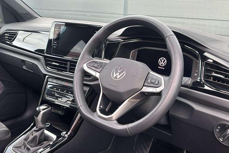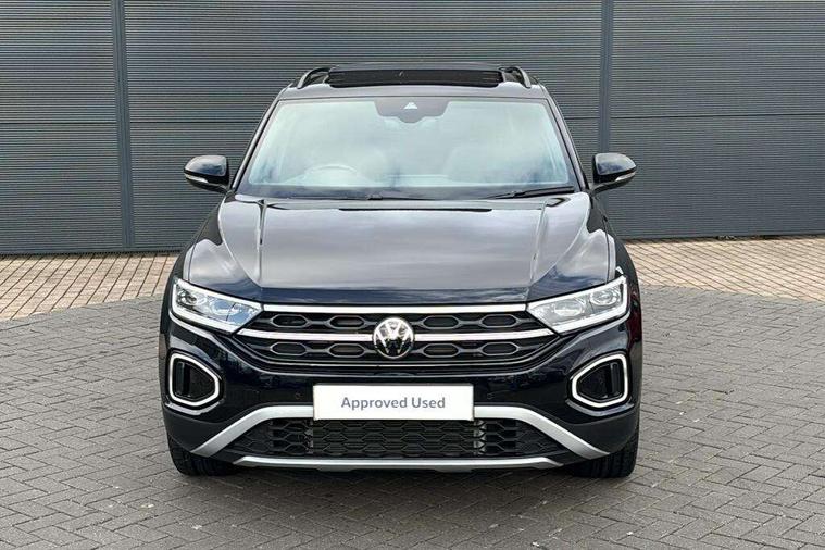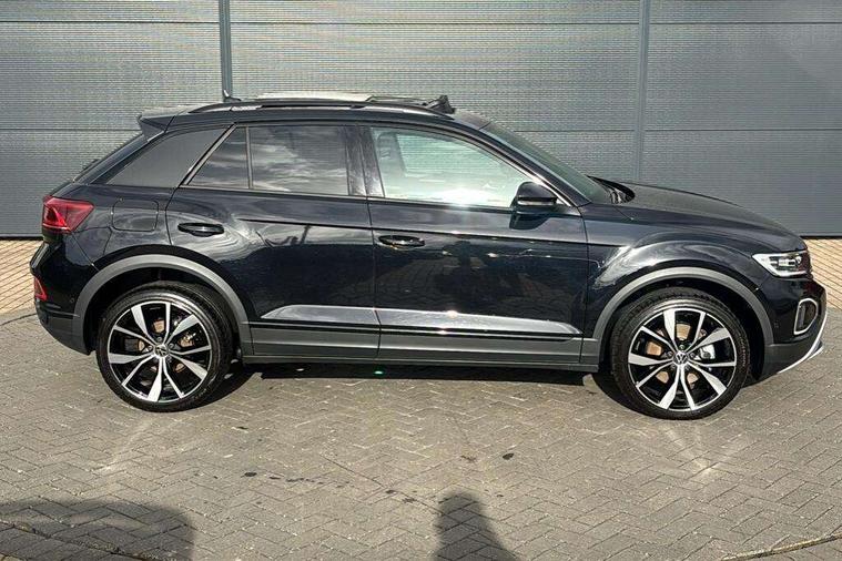 10.25" Digital cockpit pro, Advanced driver attention and drowsiness monitor, Dynamic road sign display, Emergency call service, Lane keeping system Lane Assist, Mobile phone interface, Modified key software - reduce switch off time for key status change to Long no motion, Online services, Park assist including front and rear parking sensors, Power assisted speed sensitive steering, Rear view camera, Service interval indicator, Tailgate/trunk lid release from outside, Think blue trainer driver tips and journey analysis, Warning sound and light for front seatbelts unfastened, Wireless app connect, Battery regeneration during braking, Start/stop function with battery regeneration, DAB Digital radio, Diversity antenna for FM reception, Music playback - MP3, WMA and AAC files, Premium USB cable in choice of either Apple or Android smartphone compatibility, SD card slot, Simultaneous pairing of 2 compatible mobile devices, Title and cover art display, We Connect and We Connect Plus functionality, Adhesive film in carbon look on the C-pillars, Advanced dynamic light assist for LED matrix headlights, Auto dimming interior rear view mirror, Automatic hazard lights activation under emergency braking, Black roof rails, Body colour sports bumpers with silver metallic underbody fascia, Body coloured exterior mirror housings and door handles, Dynamic cornering light, Dynamic headlight range control with self adjusting whilst driving, Electrically adjustable and heated door mirrors, Extended roof spoiler, Exterior ambient lighting, Exterior mirrors aspherical on driver side, convex on front passenger side, External USB type C socket and charging sockets, Front windscreen wiper with intermittent wipe and 4 position delay, Heated rear window, Illuminated front grille, IQ LED matrix headlights, LED 3rd brake light, LED rear number plate lights, LED rear tail lights with dynamic turn signal, LED separate daytime running light, Light mode for poor weather, rain, fog or snow, Power windows with comfort operation and circuit breaker, Privacy glass for rear side windows and rear window, Rain sensor, Rear exhaust tailpipe, Rear fog light on one side and reversing lights on both sides, Rear side wing doors, Rear wash/wipe with intermittent wipe setting, Remote electrically foldable door mirrors, puddle lights and reverse activated passenger's door mirror, Tilting and sliding panoramic sunroof with rear panoramic sunroof, 12V power socket in centre console, 3 rear head restraints, 3 seat bench in 2nd row, 4 load lashing points in luggage compartment, Air care climatronic air conditoning system with active combination filter and 2-zone temperature control, Black roof lining, Chrome plated radiator grille inserts, air vent surrounds and light switch surrounds, Door and side trim panel with leatherette insert, Drawer under drivers seat, Front + rear carpet mats, Front centre armrest, Front comfort sports seats, Front cupholders x 2, Front footwell illumination, Front seat back storage pockets, Glove compartment door with light, Instrument lighting, white adjustable panel illumination, Interior ambient lighting and surround lighting, Interior light delay, Isofix child seat preparation, Leather gearshift handle, LED interior light with switch off delay/dimmer and 2 front/rear LED reading lights, Load-through provision with cup holder when folded down ('Unsplit rear seat bench, split folding backrest, with centre armrest), Luggage compartment lighting, Non-folding front passenger seat backrest, Single front passenger seat, Storage compartment in left and right luggage area, Storage compartment in rear doors, Storage compartments in driver and front passenger doors, Sunvisors with illuminated vanity mirrors, Variable boot floor, height adjustable and removable, Black design pack - T-Roc style design, Driver assistance pack without proactive passenger protection - T-Roc, Easy open package with safelock - T-Roc, 3 point height adj front seatbelts + pretensioners, 3 point seatbelts in outer rear with ECE label, ABS, Child locks on rear doors, City emergency braking and pedestrian monitoring, Driver and front passenger airbag with front passenger airbag deactivation, Driver and front passenger safety-optimised head restraints, Drivers seatbelt reminder, Electronic parking brake, Electronic Stability Control (ESC) inc EDL (Electronic Differential Lock) and ASR (Traction Control), Front and rear passengers curtain airbag system including front side airbags, Predictive pedestrian protection, Rear disc brakes, Two tone horn, Tyre pressure loss indicator, Volkswagen roadside assistance, Black decorative trims, Piano black decorative inserts in dashboard and front door trim panels, Tool kit, Trims for alloy wheels, Tyre mobility kit including compressor and sealing foam,
