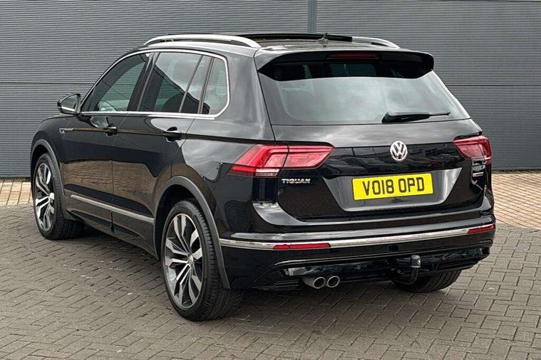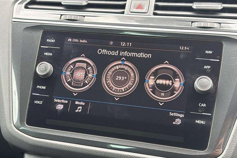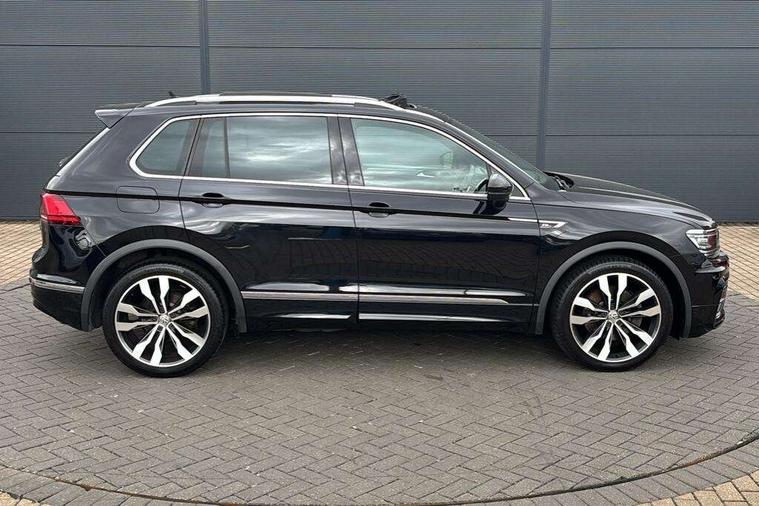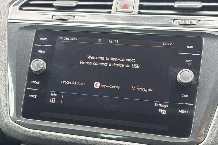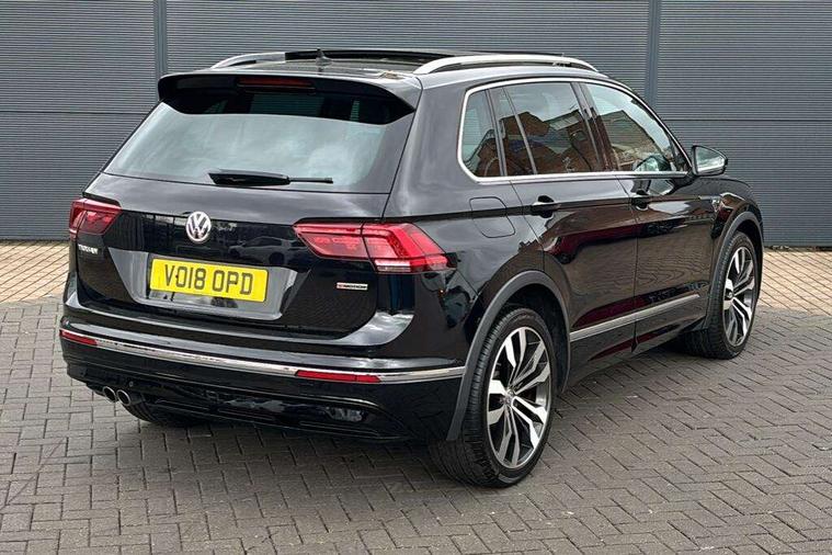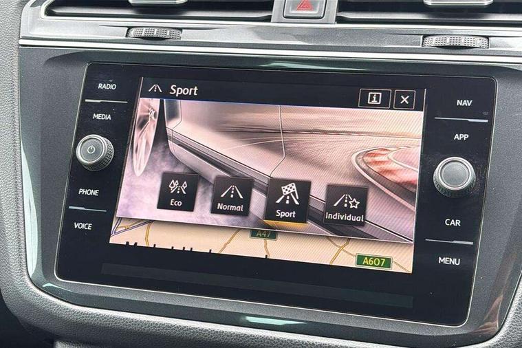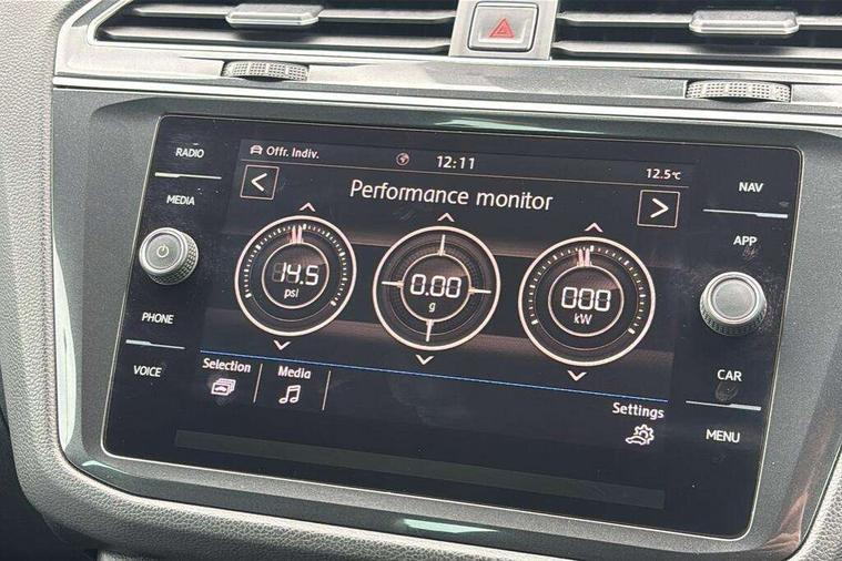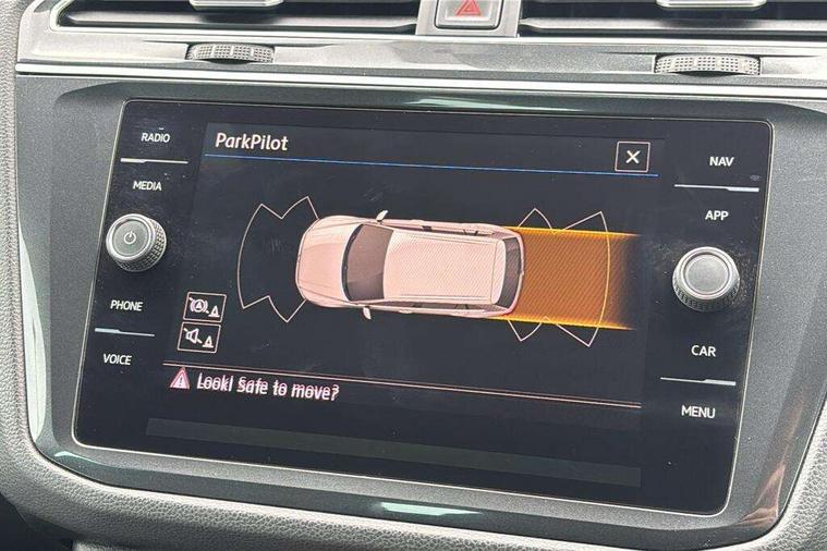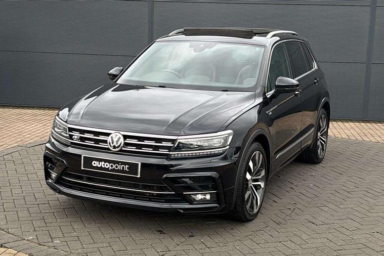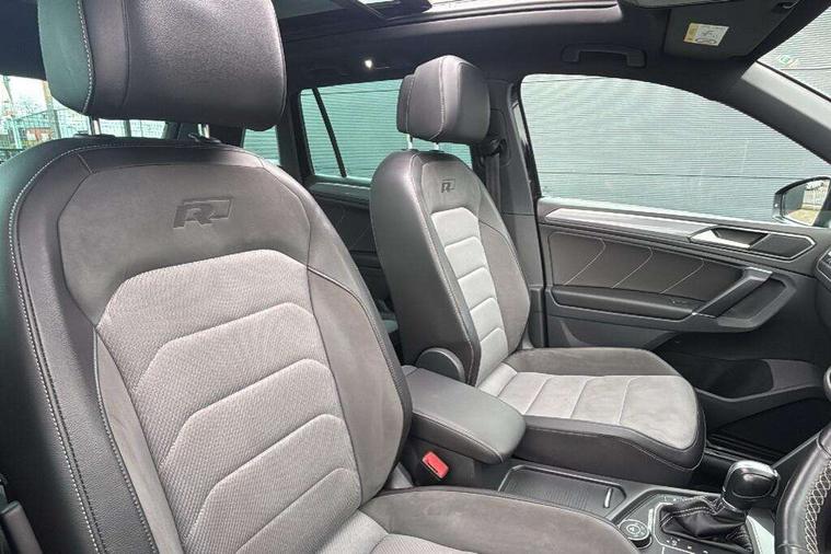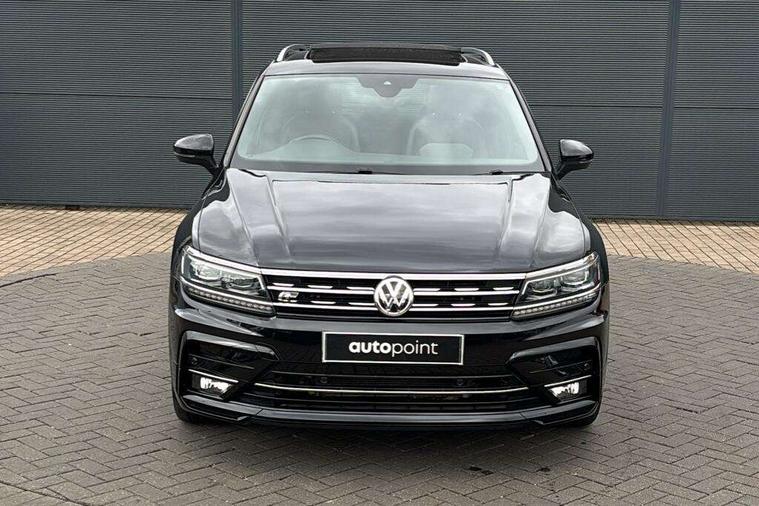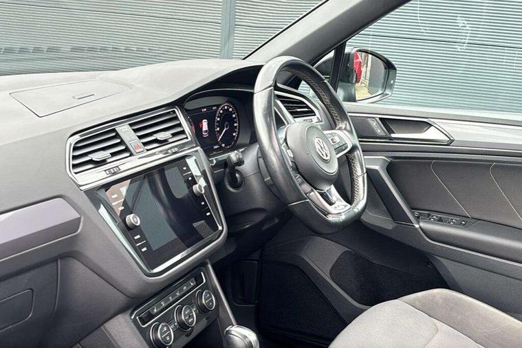 Active information display, Adaptive cruise control, App-Connect, Bluetooth phone integration system, Distance control assist, Drive mode selector, Driver profile selection, Fatigue detection system, Instrument cluster, Lane assist, Low washer fluid warning light, Outside temperature display, Progressive power assisted steering, Service interval indicator, Speed limiter, Warning lights, Diesel particulate filter, XDS electronic differential lock, 2x USB sockets in front, Aux-in socket, DAB Digital radio, MP3 compatible single CD player, SD card slot, Auto dimming interior mirror, Automatic activation of hazard warning lights, Body colour door handles, Body colour door mirrors, Body colour rear spoiler, Body colour side skirt, Body coloured bumpers, Chrome side window surrounds, Chrome trimmed radiator grille, Coming/leaving home lighting function, Dusk sensor + auto driving lights, Electric folding door mirrors, Electric heated + adjustable door mirrors, Electric panoramic sunroof with sunblind, Front and rear electric windows, Heated rear window, LED headlights with dynamic light assist daytime running lights and cornering front fog lights, LED rear lights, Piano black rear diffuser, R Line body kit, Rain sensor windscreen wipers, Rear windscreen washer and wiper with interval delay, Silver roof rails, Silver under body guard, Tinted windows (B pillar backwards), Twin trapezoid chrome exhaust pipes, Windscreen wipers/ intermittent wipe + 4 position delay, 12V Accessory socket in centre console, 3 rear headrests, 3 zone climate control, 4 load lashing points, 40:20:40 split folding rear seats, Bag hook in luggage compartment, Black headlining, Driver + front passenger lumbar support, Foldable passenger seatback, Front + rear carpet mats, Front centre armrest with 12v socket, Front centre armrest with storage + rear 2 air vents + cupholders, Front seatback folding tables, Height/reach adjust steering wheel, Illuminated driver/passenger vanity mirrors, Illuminated scuff plates, Interior light with delay, Isofix Preparation 2 Rear child seats, Leather gear knob, Leather multifunction steering wheel with paddle shift, Load through provision with 2 cupholders when folded, Lockable cooled glovebox, Luggage compartment lighting, Luggage compartment side storage, Map pockets on front seats, Passenger seat height adjuster, Rear cupholders, Removable luggage cover, Sliding/reclining rear seats, Stainless steel pedals, Storage compartment in driver's door, Storage compartment in passenger's door, Storage compartment in rear doors, Storage tray on dashboard, Sunglasses storage, Variable boot floor, Ambient lighting pack - Tiguan, 3 rear 3 point seatbelts, ABS+EBD+Brake assist, Active bonnet, Active pedestrian safety system, Curtain airbags, Driver/Front Passenger airbags, Driver/Passenger whiplash optimised head restraints, Drivers knee airbag, DTC - Drag torque control, Electronic parking brake with auto hold, ESP with EDL + ASR, First aid kit, Front assist including city emergency braking, Front side airbags, Head airbag system, Height adjustable front 3 point seatbelts + pretensioners, Hill hold control, Passenger airbag deactivate switch, Passenger knee airbag, Pre crash system, Rear side airbags, Seatbelt warning lamp and buzzer, Two tone horn, Warning triangle, Alarm with interior protection, Electronic engine immobiliser, Remote central locking with 2 remote folding keys, Aluminium decorative inserts, Chrome door trim inserts, 20" Suzuka alloy wheels + anti theft wheel bolts, Steel space saver spare wheel,