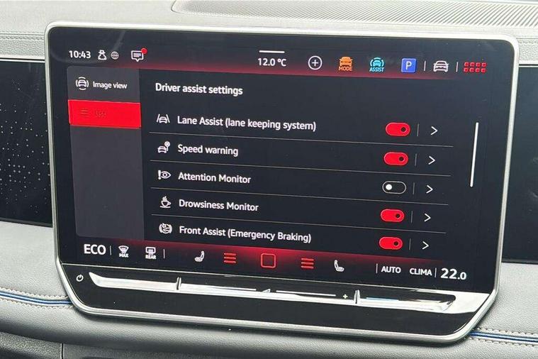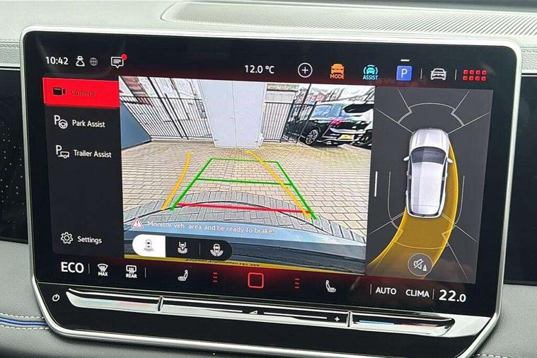 Adaptive cruise control (ACC), Advanced driver attention and drowsiness monitor, Bluetooth mobile phone interface, Car2X technology, Digital Cockpit Pro - 10.25" high resolution dash display screen with customisable menus and information, Dynamic road sign display, E-Sim card for online connectivity, eCall emergency call service, Front Assist - Autonomous emergency braking with pedestrian and cyclist monitoring, Lane change system, Side assist, Rear traffic alert and Exit warning system, Lane keeping system Lane Assist, Oncoming vehicle braking when turning including swerve support, Park assistance plus with front and rear parking sensors, Power assisted steering with speed sensitive, Start/stop system with regenerative braking, Warning signal and warning light for front and rear seatbelts not fastened, Wireless App-Connect, Adaptive chassis control DCC pro includes driving mode selection, Charging cable Mode 3 Type 2 / 3 (16A), Front shock absorption, Front wheel drive, Rear shock absorption, Digital radio reception (DAB), Diversity antenna for FM reception, Air intake with Chrome trim, Ambient lighting with logo projection, Auto dimming interior rear view mirror, Automatic headlight control system, Body coloured door handles, Chrome moldings on the side windows, Coming/leaving home lighting function, Heat insulating glass in side and rear windows, Heated rear window, Heated windscreen washer jets, High level 3rd brake light, Illuminated door handle recesses, Illuminated lightline between headlamps, Laminated safety glass windshield, LED Day time running light, Puddle lights and reverse activated passengers door mirror, Rain sensor windscreen wipers, Rear fog light on one side, reversing light on both sides, Rear side wing doors, Rear wiper, 12V outlet in center console rear and in luggage compartment, 12V socket in centre console, 3 bench rear seats in 2nd row, Air care climatronic 3 zone air conditioning system with rear air conditioning control panel, Black roof lining, Brushed stainless steel pedals, Carpet mats, front and rear, Centre console with illuminated storage compartment with sliding cover and two drinks holders, Chrome elements on the mirror switch and power window switches and door pulls, Door and side trim panel with leatherette insert, Door sill protectors, Front centre armrest, Interior ambient lighting with 30 colour options, ISOFIX anchors for child seats on outer rear seats and front passenger seat compatible with i-Size, Mechanical rear seat release, Power adjustable lumbar support in front, Rear bench seat, split folding, longitudinally movable and folding with load-through hatch and centre armrest, Single front passenger seat, Soul headlining, Sports comfort seats in front, Sun visors with illuminated vanity mirrors, Three rear head restraints, Variable luggage compartment floor, 3 point seat belt for centre rear seats, 3 Point seat belts in front with pretensioners, 3 point seatbelts in outer rear with ECE label, Driver and front passenger airbag with front passenger airbag deactivation, Electronic parking brake with auto hold, Front and rear curtain airbags, Front and rear side airbags, Front centre airbag, Front disc brakes, Manual child proof rear door locks, Rear disc brakes, Two tone horn, Warning triangle, Decorative inserts, Interior door handle in matte chrome, Soul instrument panel, Tyre mobility kit including compressor and sealing foam,