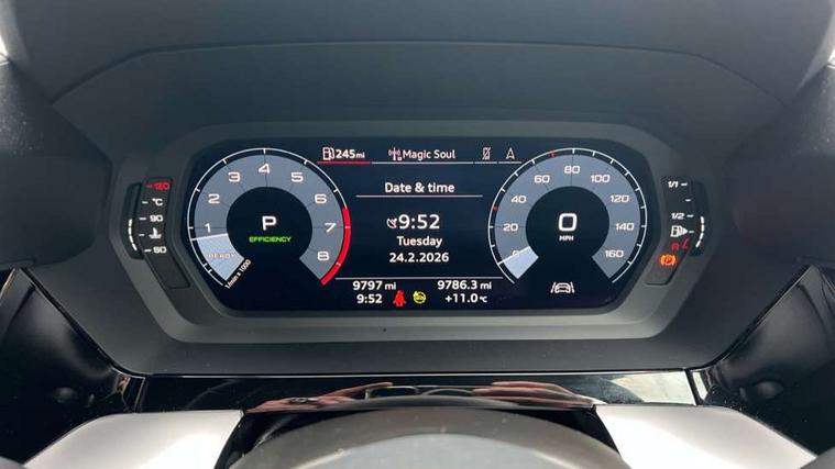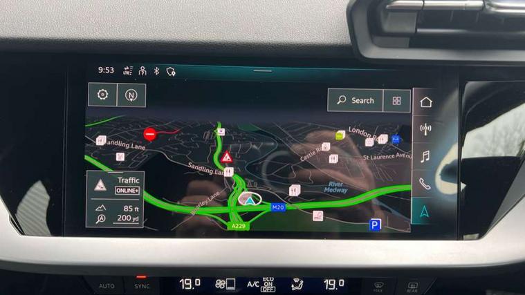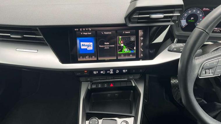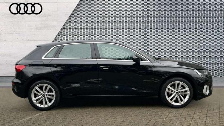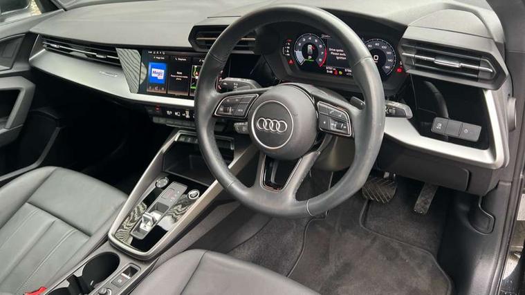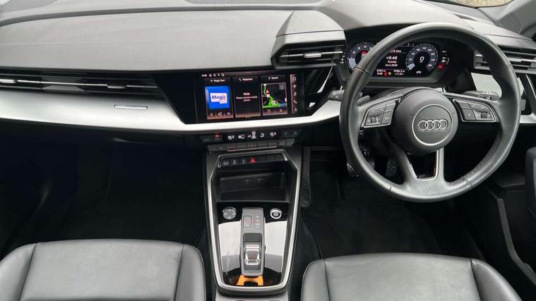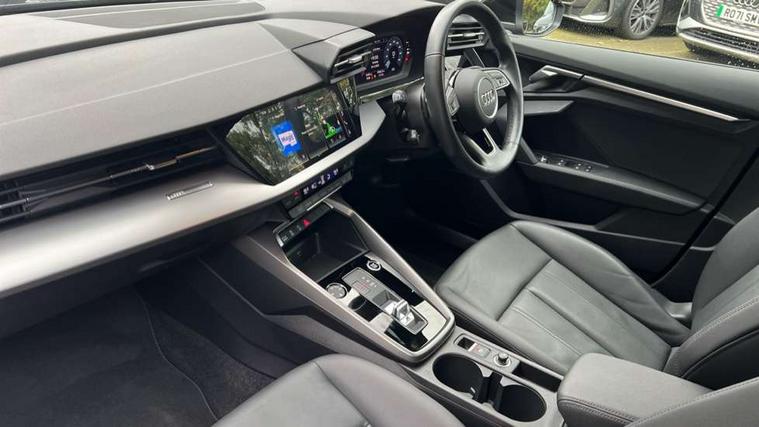 Audi drive select (Auto, Comfort, Dynamic, Efficiency and Individual), Audi smartphone interface, Audi Virtual Cockpit - 10.25" digital and colour instrument cluster, Automatic start/stop system with recuperation, Bluetooth interface, Collision avoidance assistant, e-Call (emergency call), Electromechanical power speed sensitive steering, Lane departure warning system, MMI Navigation Plus with high resolution 10.1" colour touch screen display, Service indicator, Trip computer, Voice control system with natural language interaction, Standard suspension, 2xUSB-C connection with data and charging functions, 6 passive loudspeakers, DAB Digital radio, 3rd brake light, Acoustic glass windscreen, Aluminium window trim, Auto dimming frameless rear view mirror, Body colour exterior mirrors, Body colour roof spoiler, Electrically adjustable/heated/folding/auto dimming door mirrors with integrated LED indications + kerb view function for passenger side, Front electric windows, LED daytime running lights, LED headlights and halogen rear lights, Light and rain sensors, Rear electric windows, Rear side wing doors, Rear window, rear door windows and rear side windows in clear glass, Rear wiper, 12V socket and storage compartment in front centre console, 3 seat bench in 2nd row, 3 spoke leather multifunction steering wheel with paddle shift, 40/20/40 split folding rear seat bench with cupholder, Dual zone electronic climate control, Front and rear centre armrest, Front and rear headrests, Front door sill trims with aluminium inlay, Front/rear floor mats, Height and reach adjustable steering wheel, Interior lighting - Front and rear roof module including reading lights, glove compartment light and right hand side, Luggage compartment floor covering, Manual boot compartment lid, Manually adjustable front seats, Seat side bolsters, Single front passenger seat, Steel grey cloth headlining, Twin leather upholstery, Aluminium interior elements pack - A3 Sportback, Sport styling pack - A3 Sportback, 3x3 point rear seat belts, Audi pre sense front, Driver and front passenger airbag with passenger airbag deactivation, Electronic Stabilisation Control (ESC) including ABS, ASR and EDL, First aid kit with warning triangle and 2 safety vests, Front side airbags with head airbags and interaction airbag, Pre-sense front with pedestrian and cyclist detection, Seatbelt monitoring, Tyre pressure loss indicator, Anti theft alarm, Anti-theft wheel bolts, Electronically operated child lock, Immobiliser, Remote control central locking, Inlays with silk effect paint in platinum grey,