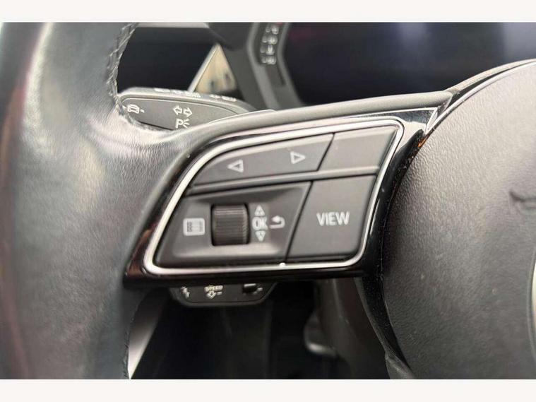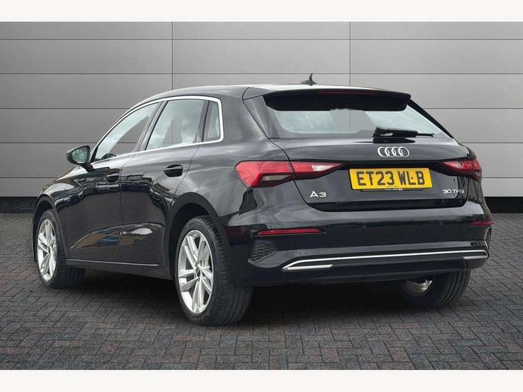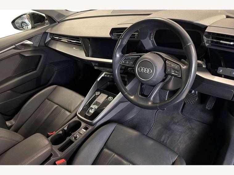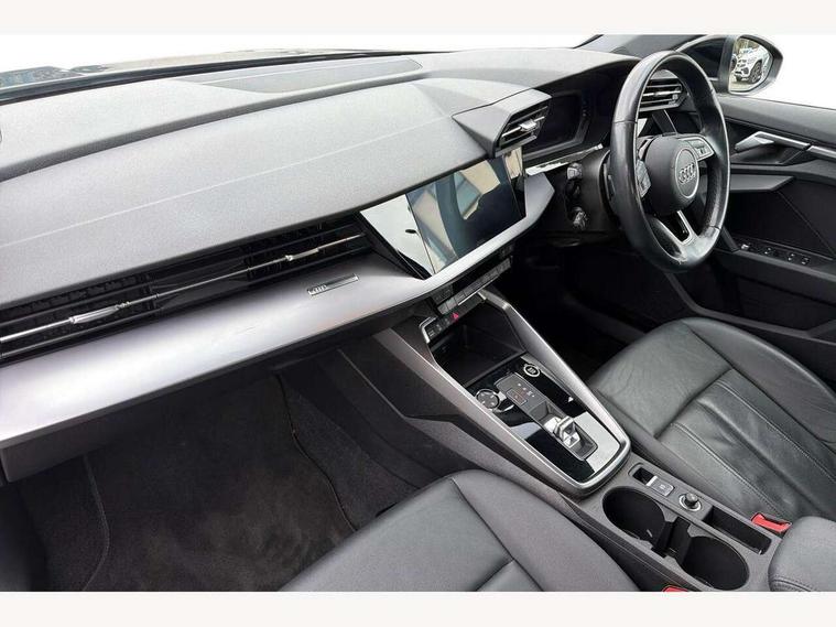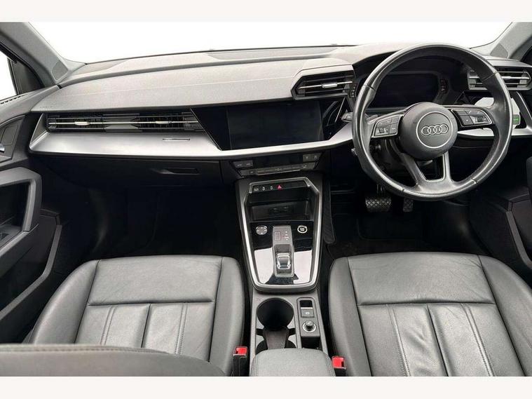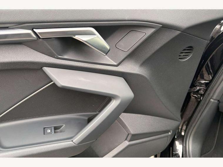 Audi drive select (Auto, Comfort, Dynamic and Individual), Audi smartphone interface, Audi Virtual Cockpit - 10.25" digital and colour instrument cluster, Automatic start/stop system with recuperation, Bluetooth interface, Camera based traffic sign recognition, Collision avoidance assistant, Cruise control, e-Call (emergency call), Electromechanical power speed sensitive steering, Lane departure warning system, MMI Navigation Plus with high resolution 10.1" colour touch screen display, Rear parking sensors, Service indicator, Trip computer, Voice control system with natural language interaction, Standard suspension, 2xUSB-C connection with data and charging functions, 6 passive loudspeakers, DAB Digital radio, 3rd brake light, Acoustic glass windscreen, Aluminium window trim, Auto dimming frameless rear view mirror, Body colour exterior mirrors, Body colour roof spoiler, Electrically adjustable/heated/folding/auto dimming door mirrors with integrated LED indications + kerb view function for passenger side, Front electric windows, LED daytime running lights, LED headlights and halogen rear lights, Light and rain sensors, Rear electric windows, Rear side wing doors, Rear window, rear door windows and rear side windows in clear glass, Rear wiper, 12V socket and storage compartment in front centre console, 3 seat bench in 2nd row, 3 spoke leather multifunction steering wheel with paddle shift, 4 way electrically adjustable lumbar support for driver and front passenger, 60/40 split folding rear seat bench, Dual zone electronic climate control, Front and rear headrests, Front centre armrest, Front door sill trims with aluminium inlay, Front/rear floor mats, Height and reach adjustable steering wheel, Interior lighting - Front and rear roof module including reading lights, glove compartment light and right hand side, Interior lighting - glove compartment light and right hand side, Luggage compartment floor covering, Manual boot compartment lid, Manually adjustable front seats, Routine cloth upholstery with front sports seats, Seat side bolsters, Single front passenger seat, Steel grey cloth headlining, Aluminium interior elements pack - A3 Sportback, LED interior lighting pack - A3 Sportback, Sport styling pack - A3 Sportback, 3x3 point rear seat belts, Driver and front passenger airbag with passenger airbag deactivation, Electronic Stabilisation Control (ESC) including ABS, ASR and EDL, First aid kit with warning triangle and 2 safety vests, Front side airbags with head airbags and interaction airbag, Pre-sense front with pedestrian and cyclist detection, Seatbelt monitoring, Tyre pressure loss indicator, Anti theft alarm, Anti-theft wheel bolts, Electronically operated child locks, Immobiliser, Remote control central locking, Inlays with silk effect paint in platinum grey,
