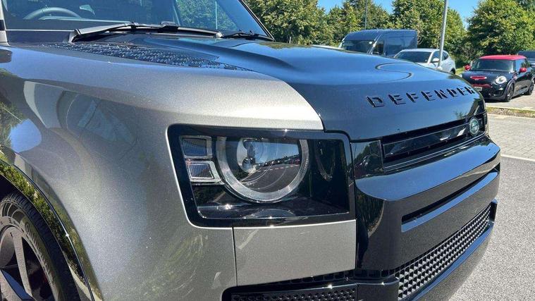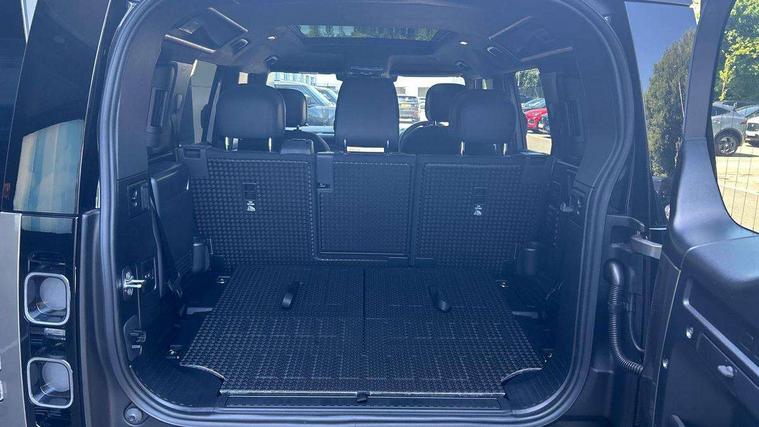 1 x USB-C (power only) & 1 x USB-C (power & data) in Row 1, 2 x USB-C in Row 2, 11.4" touchscreen, 2 x USB-C in Row 3, 360 degree parking aid, 3D Surround Camera with 360 View, 180 Rear View, Front Traffic Detection, Forward Vehicle Guidance, Tow Hitch Assist and clear sight Ground View, Adaptive cruise control, Android Auto, Apple CarPlay, Blind spot assist, Bluetooth system, Brake pad wear indicator, Clear exit monitor, Connected navigation pro, Driver condition monitor, Electric power assisted steering (EPAS), Head up Display, Interactive driver display, Lane keep assist, Push button start, Rear collision monitor, Rear traffic monitor, Traffic sign recognition with adaptive speed limiter, Trip computer, Wade Sensing, Wireless device charging, 8 speed automatic transmission, Adaptive dynamics, All terrain progress control, All wheel drive system, Configurable Terrain Response, Electronic active differential with brake torque vectoring, Electronic air suspension, Terrain Response 2, Twin speed transfer box, DAB Radio (Digital Audio Broadcasting), Meridian 700w surround sound audio system with 15 speakers, Pivi pro connected, Automatic headlight levelling, Automatic headlights, Centre high mounted stop light, ClearSight interior rear view mirror, Darkened LED tail lights, Electric heated/power fold door mirrors with approach lights and auto dimming driver side, Electric windows with one touch open/close and anti-trap, Follow me home lighting, Front fog lights, Heated rear window with timer, Heated windscreen, Illuminated metal treadplates with brand name script, Matrix LED headlights with signature DRL, Privacy glass, Puddle lights, Rain sensing windscreen wipers, Rear fog lights, Rear side wing doors, Rear wiper, Side hinged tailgate, Sliding panoramic roof, Standard tail door, Trailer stability assist, X badge, 12V power socket in loadspace, 14 way heated and cooled electric memory front seats with 4 way manual winged headrests, 2 seat bench in 3rd row, 3 seat bench in 2nd row, 60:40 load through climate rear seats with winged headrests, manual slide and recline and centre armrest, Alpine lights, Bright metal pedals, Configurable cabin lighting, Domestic plug socket, Durable rubber cabin flooring, Durable rubber loadspace flooring, Electric reach + rake adjustable steering column, Electrically adjustable steering column, Footwell lights, Front head restraints, Front passenger isofix child seat attachment, Heated steering wheel, Loadspace cover, Loadspace Hook, Multifunction steering wheel, No flat load floor storage, Overhead stowage for sunglasses, Rear headrests, Rear ISOFIX, Rear reading lights, Signature interior upgrade, Single front passenger seat, Soft close tail door, Storage glovebox, Sunvisors with illuminated vanity mirrors, Twin front cupholders, Family Comfort Pack - Defender 7 Seat, Non-smoker package, Online pack with data plan - Defender, 7 three point seatbelts, ABS, Brake hold function, Cornering brake control (CBC), Cross car beam in metallic grey powder coat brushed finish, Customer configurable autolock, Driver and passenger airbags, DSC - Dynamic Stability Control, EBD - Electronic brakeforce distribution, Electric parking brake (EPB), Emergency brake assist, Emergency braking, ESP + traction control, Front airbags with passenger seat occupant detector, HDC - Hill descent control, Hill launch assist, Low traction launch, Orange brake calipers, Power operated child locks, Remote for (e-Call, Optimised assistance call, InControl app, Climate, beep and flash and door), RSC - Roll stability control, Seat belt reminder, TPMS (Tyre pressure monitoring system), Alarm, Immobiliser, Intrusion sensor, Keyless entry, Locking wheel nuts, Secure tracker pro,