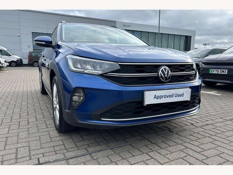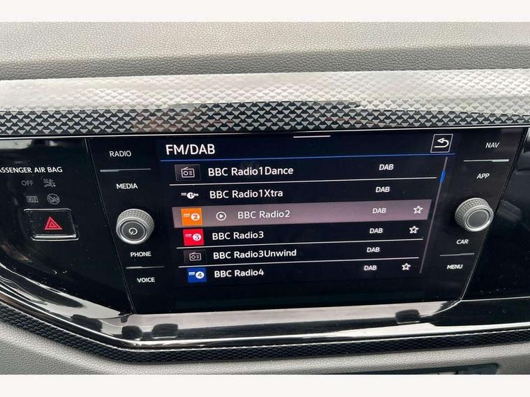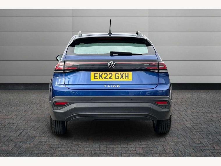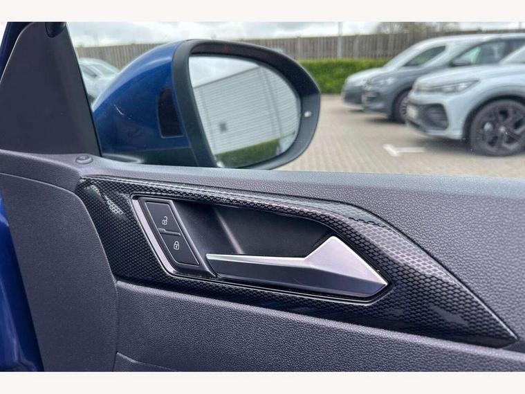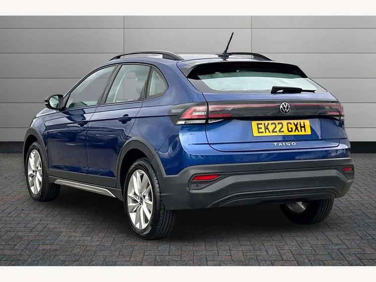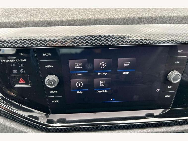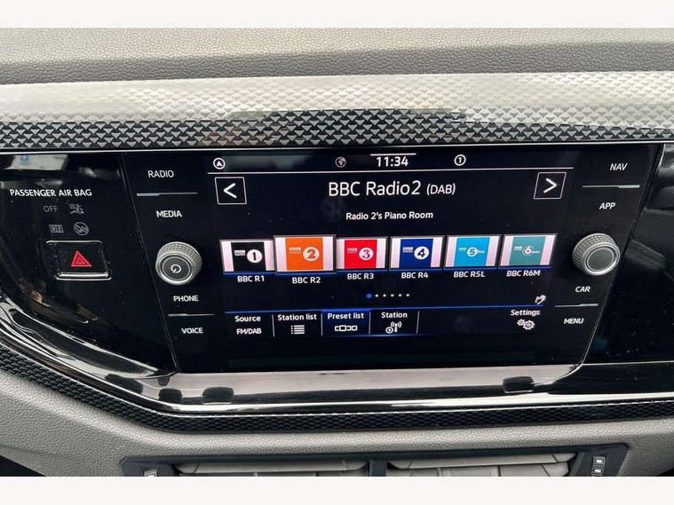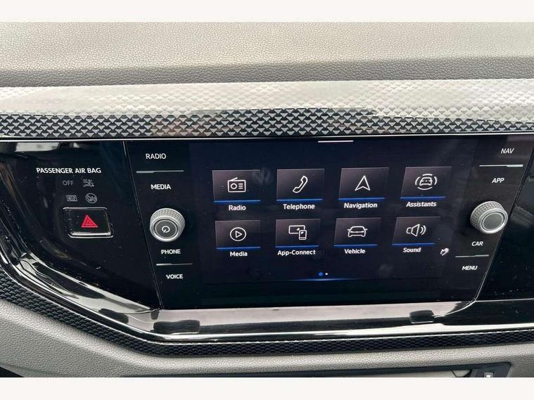 App-Connect including App-Connect Wireless, Driver alert system, e-Call (emergency call), Power Steering, Travel assist including emergency assist, Washer fluid level indicator, Wireless Charging including Bluetooth, Start-stop system with battery regeneration (recuperation - energy recovery during braking), Digital radio reception (DAB+), Diversity antenna for FM reception, WeConnect plus, Ambient lighting with logo projection, Aspherical driver's exterior mirror, Auto headlights, Body coloured bumpers, Body coloured exterior mirror housings and door handles, Electric windows, External USB type C socket and charging sockets, Front fog lamps with cornering function, Headlight range control, Heat insulating glass windscreen, LED headlamps, LED rear combination lamp, LED third brake light, Left convex exterior mirror, Power folding adjustable/heated exterior mirrors and front passenger exterior mirror lowering function, Rear fog light on one side, reversing light on both sides, Rear side wing doors, Rear wash/wipe with intermittent wipe setting, 'Slash/ Austin' Cloth upholstery, 12V socket in centre console, 2 front reading lights, 3 rear head restraints, 3 seat bench in 2nd row, Black carpets, Child seat anchor for child seat system i-Size, 2x top tether and child seat anchor in front on front passenger side, Door and side trim panels in titan black, Driver and front passenger seat height adjustment, Front centre armrest, Handbrake lever handle in leather, Height and reach adjustable steering wheel, Leather trimmed gear knob, Leather wrapped multifunction steering wheel, Luggage compartment floor, Luggage compartment light, Lumbar support for driver's and front passengers seat, Seat covers in titanium black, Single front passenger seat, Split folding backrest with centre armrest and unsplit rear seat bench, Storage compartment under front seats, Sun visors with illuminated vanity mirrors, Chrome Package - Taigo, Drivers assistance pack - Taigo, Light and Sight pack including High beam assist - Taigo, 2 x 3-point seatbelts/outer rear seats with ECE label, 3-point seat belts in front with pretensioner and height adjustment, 3-point seatbelt for centre rear seat, Driver and front passenger airbags with front passenger airbag de-activation, front side and curtain airbags, Driver and front passenger safety-optimised head restraints, Electronic stability control, Extended and predictive pedestrian/ cyclist protection, Front and rear disc brakes, Front curtain and side airbags with center airbag, Hill start assist, Manual rear child locks, Single tone horn, Tyre pressure loss indicator, Anti-theft alarm system with interior monitoring, backup horn, and towing protection, Anti-theft wheel bolts, Lava stone black gloss/matt decorative inserts in dash and front door panels, Low rolling resistance tyres,