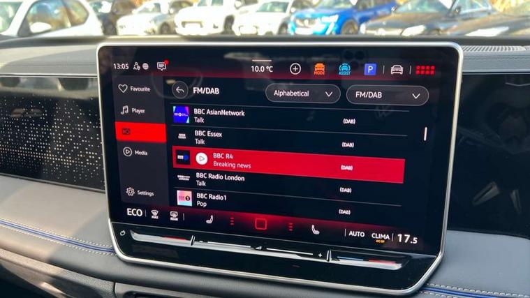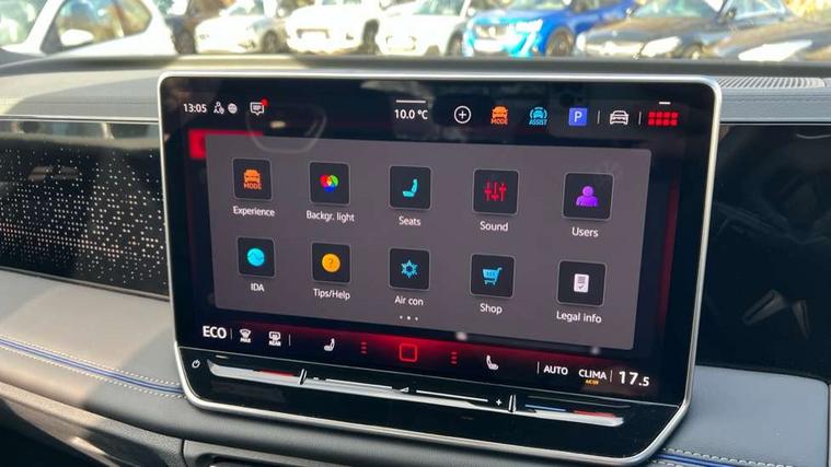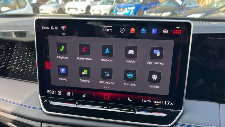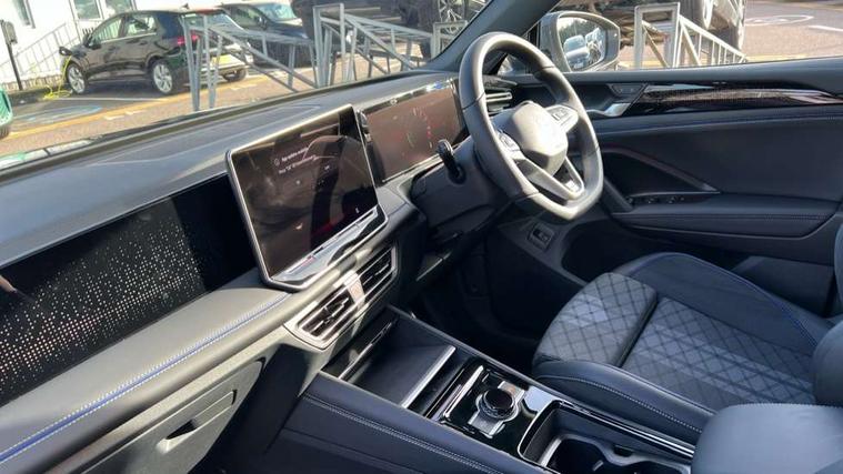 Adaptive cruise control (ACC), Advanced driver attention and drowsiness monitor, Bluetooth mobile phone interface, Digital Cockpit Pro - 10.25" high resolution dash display screen with customisable menus and information, Driving profile selection, Dynamic road sign display, E-Sim card for online connectivity, Easy Open and Close Electric tailgate with virtual pedal activation, eCall emergency call service, Extended safety system (proactive passenger protection system), Front Assist - Autonomous emergency braking with pedestrian and cyclist monitoring, IDA voice assistance with ChatGPT, Inductive smartphone charging without external antenna connection, Lane change system, Side assist, Rear traffic alert and Exit warning system, Multifunction front facing camera, Navigation system, Oncoming vehicle braking when turning including swerve support, Park assist plus with park distance control, Power assisted steering with speed sensitive, Progressive steering, Start/stop system with regenerative braking, Tailgate/trunk lid unlocking from outside, Warning signal and warning light for front and rear seatbelts not fastened, Wireless App-Connect, Adaptive chassis control DCC pro includes driving mode selection, Charging cable Mode 2 Type 2 / G (10A), Charging cable Mode 3 Type 2 / 3 (32A), Front shock absorption G08, Front wheel drive, Rear shock absorption, 12.9" infotainment display, Digital radio reception (DAB), Diversity antenna for FM reception, 3D rear combination light special signal pattern, Ambient lighting with logo projection, Auto dimming interior rear view mirror, Automatic headlight control system, Body coloured door handles, Chrome moldings on the side windows, Coming/leaving home lighting function, Dynamic headlight range control with dynamic cornering light, Exterior mirrors convex on the left and aspherical on the right, Heat insulating glass in side and rear windows, Heat insulating windshield, High Beam Assist, automatic sensing for switching between dipped and main beam, High level 3rd brake light, Highway light, Illuminated door handle recesses, Illuminated lightline between headlamps, Illuminated logo front and rear, Laminated safety glass windshield, LED headlamps, LED separate signature day time running light, Poor weather light, Rain sensor windscreen wipers, Rear fog light on one side, reversing light on both sides, Rear side wing doors, Rear wiper, Remote electrically foldable door mirrors, puddle lights and reverse activated passenger's door mirror, 12V outlet in center console rear and in luggage compartment, 12V socket in centre console, 2 USB-C ports in the front, 2 USB-C charging sockets on the centre console in rear, charging capacity up to 45 W, 3 bench rear seats in 2nd row, Air care climatronic 3 zone air conditioning system with rear air conditioning control panel, Black roof lining, Brushed stainless steel pedals, Carpet mats, front and rear, Centre console with illuminated storage compartment with sliding cover and two drinks holders, Chrome elements on the mirror switch and power window switches and door pulls, Door and side trim panel insert in Art velour, Drivers seat with manual adjustment of seat travel and height and backrest angle with thigh support longitudinally sliding, Front centre armrest, Front integrated head restraints, Front massage seats, Front scuff plates in aluminium, Front seats with manual height adjustment, Greyson sports cloth upholstery with inner side bolsters in artvelours, Interior ambient lighting with 30 colour options, ISOFIX anchors for child seats on outer rear seats and front passenger seat compatible with i-Size, Leather wrapped heated multifunction steering wheel with touch control and paddle shift, Mechanical rear seat release, Power adjustable lumbar support in front, Rear bench seat, split folding, longitudinally movable and folding with load-through hatch and centre armrest, Safety optimised front head restraints, Single front passenger seat, Sports comfort seats in front, Sun visors with illuminated vanity mirrors, Three rear head restraints, 3 point seat belt for centre rear seats, 3 Point seat belts in front with pretensioners, 3 point seatbelts in outer rear with ECE label, Driver and front passenger airbag with front passenger airbag deactivation, Electronic parking brake with auto hold, First aid kit with warning triangle and safety vest, Front and rear curtain airbags, Front centre airbag, Front disc brakes, Hill start assist, Manual child proof rear door locks, Rear disc brakes, Rear side airbags, Two tone horn, Tyre pressure monitoring system, Alarm with interior protection, Central locking system keyless entry, Interior door handle in matte chrome, Soul instrument panel, Tyre mobility kit including compressor and sealing foam,