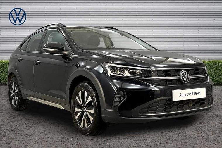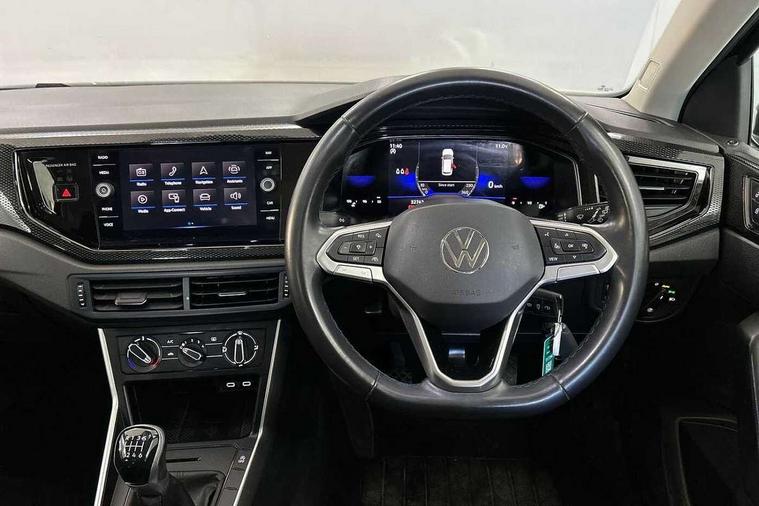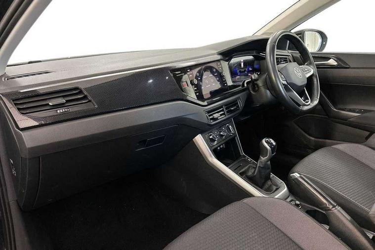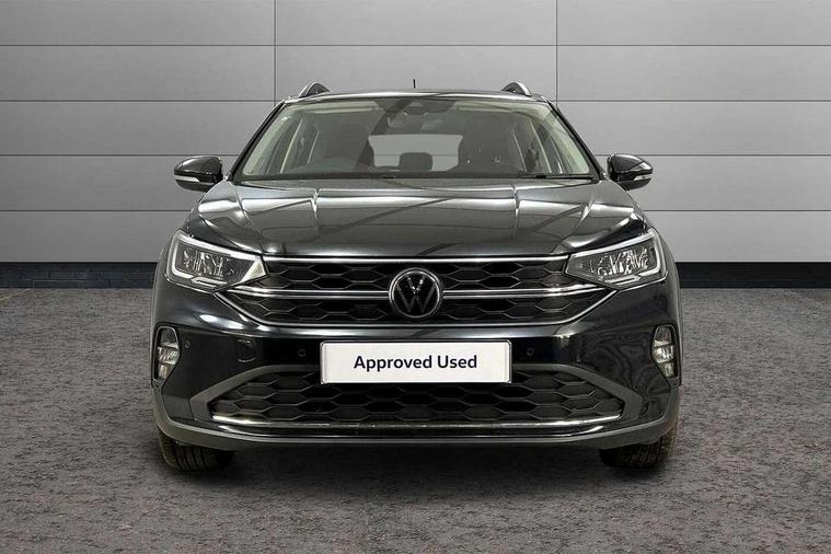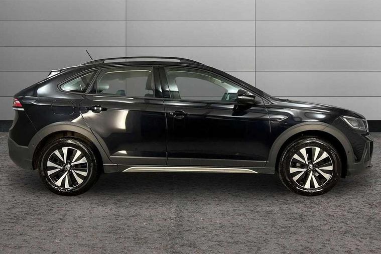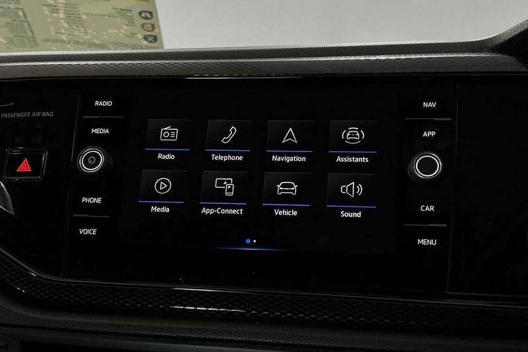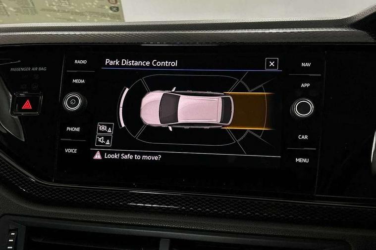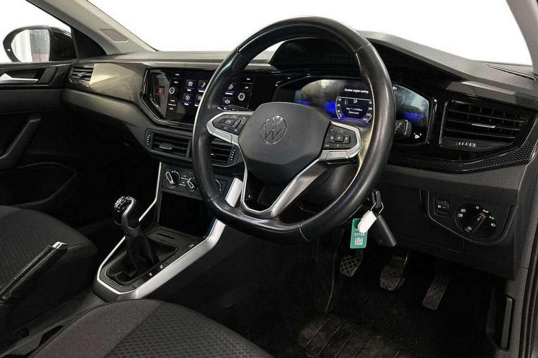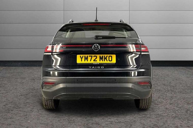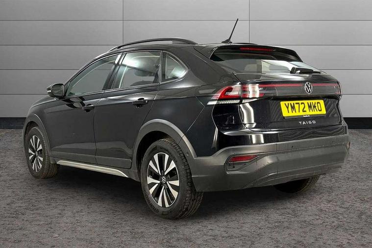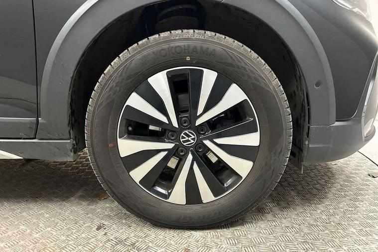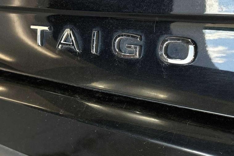 Driver alert system, e-Call (emergency call), Power Steering, Travel assist including emergency assist, Washer fluid level indicator, Wireless Charging including Bluetooth, Start-stop system with battery regeneration (recuperation - energy recovery during braking), WeConnect plus, Ambient lighting with logo projection, Aspherical driver's exterior mirror, Auto headlights, Body coloured bumpers, Body coloured exterior mirror housings and door handles, Electric windows, External USB type C socket and charging sockets, Front fog lamps with cornering function, Headlight range control, Heat insulating glass windscreen, LED headlamps, LED rear combination lamp, LED third brake light, Left convex exterior mirror, Power folding adjustable/heated exterior mirrors and front passenger exterior mirror lowering function, Rear fog light on one side, reversing light on both sides, Rear side wing doors, Rear wash/wipe with intermittent wipe setting, 'Slash/ Austin' Cloth upholstery, 12V socket in centre console, 2 front reading lights, 3 rear head restraints, 3 seat bench in 2nd row, Black carpets, Child seat anchor for child seat system i-Size, 2x top tether and child seat anchor in front on front passenger side, Door and side trim panels in titan black, Driver and front passenger seat height adjustment, Front centre armrest, Handbrake lever handle in leather, Height and reach adjustable steering wheel, Leather trimmed gear knob, Leather wrapped multifunction steering wheel, Luggage compartment floor, Luggage compartment light, Lumbar support for driver's and front passengers seat, Seat covers in titanium black, Single front passenger seat, Split folding backrest with centre armrest and unsplit rear seat bench, Storage compartment under front seats, Sun visors with illuminated vanity mirrors, Chrome Package - Taigo, Drivers assistance pack - Taigo, Light and Sight pack including High beam assist - Taigo, 2 x 3-point seatbelts/outer rear seats with ECE label, 3-point seat belts in front with pretensioner and height adjustment, 3-point seatbelt for centre rear seat, Driver and front passenger airbags with front passenger airbag de-activation, front side and curtain airbags, Driver and front passenger safety-optimised head restraints, Electronic stability control, Extended and predictive pedestrian/ cyclist protection, Front and rear disc brakes, Front curtain and side airbags with center airbag, Hill start assist, Manual rear child locks, Single tone horn, Tyre pressure loss indicator, Anti-theft alarm system with interior monitoring, backup horn, and towing protection, Anti-theft wheel bolts, Lava stone black gloss/matt decorative inserts in dash and front door panels, Low rolling resistance tyres,