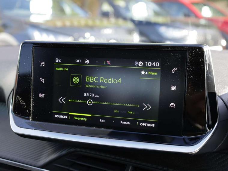 Bluetooth telephone facility, Driver attention warning, Exterior temperature indicator with ice warning, Lane keep assist, Mirror screen with mirror link, apple carplay and android auto, Multi function trip computer, Peugeot connect SOS and assistance, PEUGEOT i-Cockpit with 3.5" instrument panel display, PEUGEOT i-Cockpit with compact steering wheel, Programmable cruise control and speed limiter, Push button start, Rear parking sensors, Smart phone docking station, Speed limit recognition and recommendation, 2 front USB socket with USB-C, 2x USB sockets in rear, 6 speakers radio with mp3 compatible, DAB Digital radio, Voice recognition for radio, navigation and telephony features, 2 X Rear number plate lights, Automatic lights, Automatic windscreen wipers, Body coloured exterior door handles, Colour coded door mirror shells, Dark tinted rear side and tailgate windows, Eco LED headlights, Electric front windows + one touch + anti-pinch, Electric rear windows with one touch/anti-pinch, Electrically adjustable, heated and power folding door mirrors, Electrochrome rear view mirror, Extended diamond black rear spoiler, Follow me home headlights, Front windscreen wiper with magic wash cleaning system, Gloss black finish on B pillar, Gloss black rear cluster connecting strip, Headlights left on audible warning, LED daytime running lights with distinctive tooth design, Model designation badges front and rear, Radiator grille chrome chequered, Rear bumper with gloss black finish, Rear full LED 3D peugeot signature claw effect lights with daylight function, Rear lower bumper diffuser effect trim in gloss black, Rear reversing lights, Rear windscreen wiper triggered automatically in reverse gear, Tailgate with heated rear windscreen and wiper blade, Twin chrome exhaust tailpipes, 1/3 to 2/3 split folding rear seats, 12V socket, Automatic gear lever in full grain leather and satin chrome, Driver and front passenger comfort seats, Driver and front passenger seat manual adjustment in longitudinal and back rest angle, Driver seat mechanical height adjustment, Dual zone electronic climate control, Electric power steering with reach and rake adjustable steering column, Front centre armrest with storage compartment, Front interior light with 2 reading spotlights, High centre console with 2 cup holders, Leather steering wheel, Map pockets on the backs of the front seats, Piano keys gloss black plated toggle switches to access main functions of the vehicle, Roof lining - light grey, Seatbelt unfastened on the move audible and visual alert for front and rear seats, Tri material cloth/leather upholstery, 2x 2nd row ISOFIX child seat mountings, 3 rear 3 point seatbelts, ABS (Anti-lock Braking System) with EBD (Electronic Braking Distribution) and EBA (Emergency Braking Assistance), Child locking functionality on rear doors, Driver and passenger airbags with Passenger airbag deactivation system, Driver/front passenger side airbags, Electric parking brake, ESP with Hill Assist, Front and rear curtain airbags, Front and rear disc brakes, Front optimised safety headrests and 3 x rear retractable headrests with height adjustable, Front three point retractable seatbelts with force limiters, Pedestrians active safety brake, Tyre pressure sensor, Automatic door locking when moving off, Automatic hazard light activation upon heavy brake application, Deadlock, Electronic code immobiliser, Thatcham Cat.1 alarm, Carbon effect Dashboard, front and rear door panel finish, 16" Soho diamond cut alloy wheels, Tyre puncture repair kit,