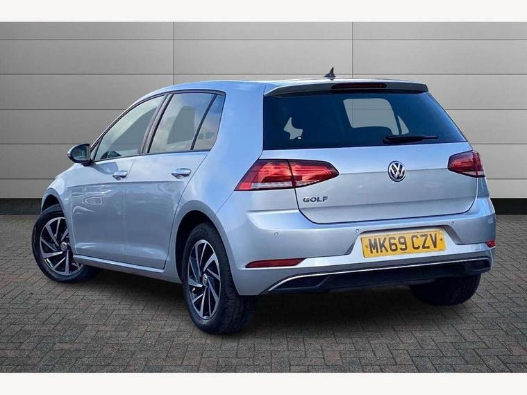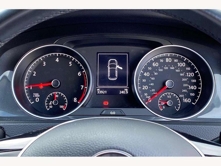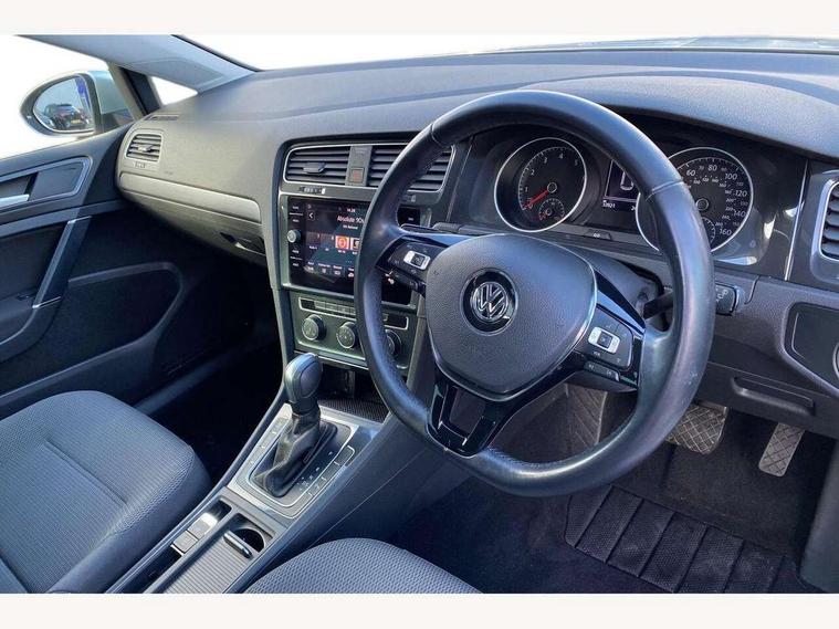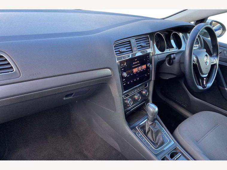 'Lights On' Reminder warning buzzer, ACC - Adaptive cruise control with front assist, forward collision warning, distance monitoring, city emergency brake and speed limiter, Bluetooth telephone and audio connection for compatible devices, Brake pad wear indicator warning light, Driver alert system, Driving Mode Selection with four preset modes - Eco, normal, sport or individual modes, Instrument cluster in white, Multifunction computer with visual gear change recommendation for fuel consumption, Power assisted speed sensitive electro-mechanical steering, Push tank flap, Speed limit display, Speedo, rev counter, electronic odometer, trip, service interval display, exterior temperature and fuel gauge, Stop/start system, Think blue trainer driver tips and journey analysis, Warning buzzer and light for front seatbelts unfastened, We Connect Go Dongle, Battery regeneration during braking, XDS electronic differential lock, Composition media system, DAB Digital radio receiver, Driver Personalisation profile selection, MP3/WMA compatability, Multi device interface (MDI) with USB connection, Personalisation 1.1 profile for media, Premium USB cable in choice of either Apple or Android smartphone compatibility, SMS Functionality, Title and cover art display, 4 X 20W output, USB connection and socket, USB and SD card connectivity, Auto dimming rear view mirror, Black front air intake and radiator grille with chrome insert, Black rear diffuser, Body colour bumpers, Body colour door handles, Body colour door mirrors with integrated indicators, Dusk sensor + automatic driving lights, Electric front windows, Electric rear windows, Electrically adjustable and heated door mirrors, Fully galvanised body, Heated rear windscreen, Hidden exhaust pipe, High level 3rd brake light incorporating LED Technology, LED front fog lights with static cornering light function, Range adjustable headlights via infotainment system with LED daytime running lights, Rear fog lamp, Rear number plate lights incorporating LED technology, Rear tinted glass 65% light absorbing from B pillar backwards, Rear window aerial, Rear window wash/wipe with intermittent wipe, Reflectors in all doors, Remote electrically foldable door mirrors, door mirror puddle lights and reverse activated kerb-view adjustment on passengers door mirror, Tailgate with integrated rear roof spoiler, Windscreen wipers/ intermittent wipe + 4 position delay, 12V socket in luggage compartment, 3 rear headrests, 4 load lashing points in luggage compartment, 60/40 split folding rear seat backrest, Auto fold down lever in rear seat backrest, Bag hook in luggage compartment x 2, Black decorative sleeve on gear handles, Cooled glovebox, Cover for storage compartment in centre, Cupholder cover, Dust/pollen filter, Front and rear reading lights X 2, Front centre armrest with storage compartment and two rear air vents, Front seat back storage pockets, Grab handles front x 2, rear x 2 with integrated coat hooks, Height and reach adjustable steering wheel, Illuminated vanity mirrors, Instrument lighting white adjustable panel illumination, Interior light delay, Isofix preparation for 2 rear child seats, Load through provision with rear centre armrest and cupholders x2, Luggage compartment lighting, Overhead storage box, Passenger underseat drawer, Pearl grey headlining, Storage box in luggage compartment, Storage compartment in roof console with cover, Storage compartments in centre console, Storage compartments in front doors, Storage compartments in rear doors, Stowable luggage compartment cover, Sun visors, Variable boot floor, height adjustable and removable, Convenience Pack - Golf, Light and Sight pack - Golf, Mirror pack - Golf, 3 rear three point seatbelts, Airbags - Driver's and front passenger's, curtain airbag, Driver's knee, front side impact and passenger's airbag deactivation switch, Anti-lock Braking System (ABS) with Hydraulic Brake Assist (HBA), Automatic post collision braking system, Child locks on rear doors, Driver/Passenger optimised head restraints, Electronic parking brake with auto hold, Electronic stability control (ESC) including Electronic differential lock (EDL) and ASR (Traction control) with deactivation via infotainment system, Front ventilated disc brakes and rear disc brakes, Pre crash preventive occupant protection, Three point height adjustable front seatbelts with tensioners, Tyre pressure loss indicator, Alarm with interior protection and deactivation via infotainment system, Electronic engine immobiliser, Brushed dark silver decorative inserts in dash and door panels, Chrome plated air vent surround, Chrome-plated light switch surround, Polar night black decorative inserts in centre console, Steel space saver spare wheel,