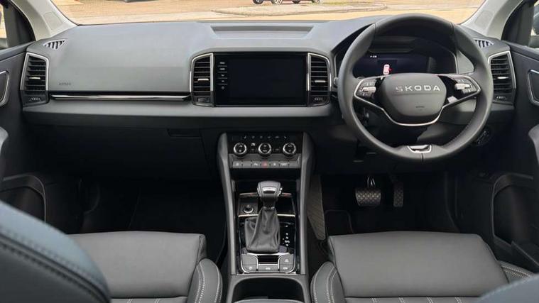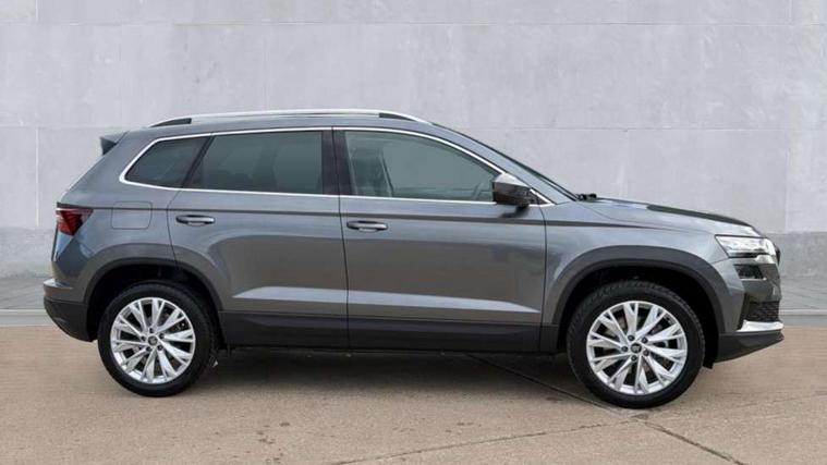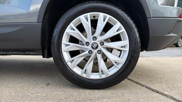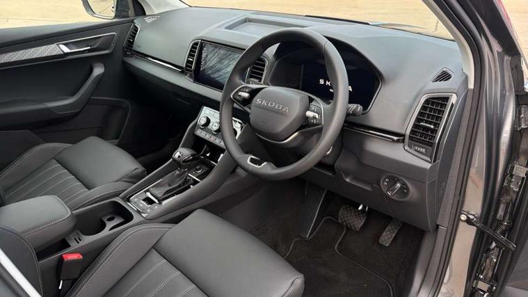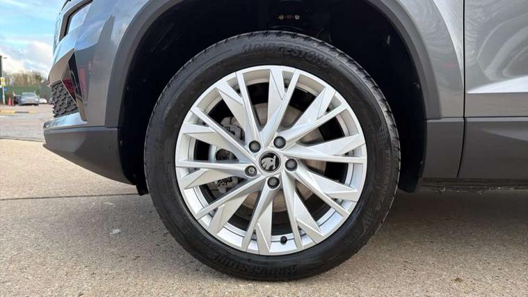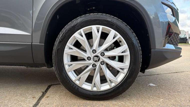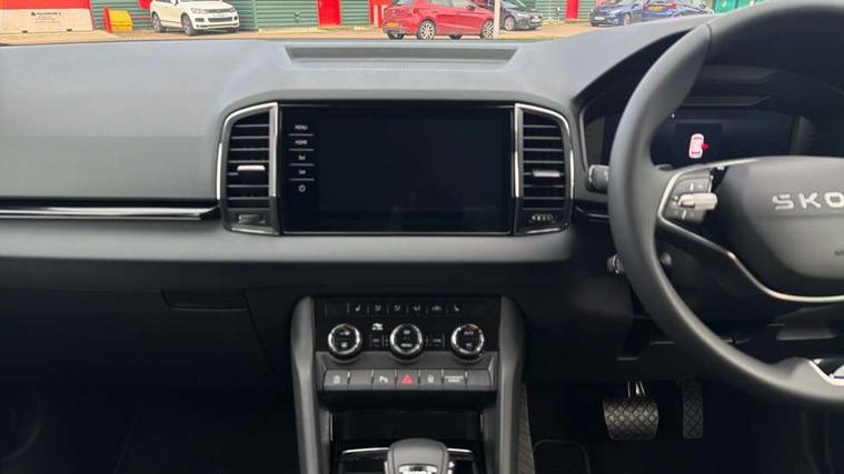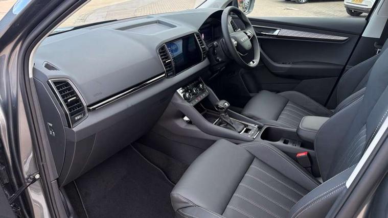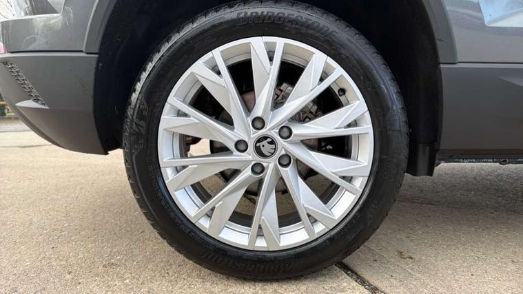 Advanced driver attention and drowsiness monitor, Drive Mode Selection including ECO function, Electro-mechanical PAS, Emergency services call system, Outside temperature gauge, Sensor for driver assistance systems, Service interval indicator, SmartLink wireless for Apple and wired for Android, Start/stop system with regenerative braking, Traffic sign recognition, USB C Port x 2 in front centre console, Virtual Cockpit - 10.25" digital display, Virtual pedal with electrically operated boot door, Wireless smartphone charging, DAB radio with Bluetooth, USB connection, Acoustic glass, Aero front windscreen wipers with intermittent function, Auto dimming rear view mirror with light and rain sensors, Black electric window control buttons, Body colour door mirrors and handles, Electric front and rear windows with child proof lock, Extended rear roof spoiler, Heated rear windscreen, LED daytime running lights, LED rear lights with high functionality welcome effect and dynamic indicators, Light assistant (coming/leaving home/tunnel light), Plastic scuff plates in door apertures, Privacy glass, Rear side wing doors, Rear window wiper with washer system and intermittent control, Safety reflectors on front doors, Third brake light, Unique dark chrome design logo on alloy wheels, 1.5 litre bottle holders in driver and front passenger door panels, 12V socket in boot, 12v socket in front centre armrest with storage compartment and rear air vents, 2 spoke leather heated multifunction steering wheel with DSG paddles, 2 x Tablet holder, 3 rear height adjustable headrests, 3 seat bench in 2nd row, 4 foldable roof handles with rear coat hooks, Black floor carpet, Cargo elements in boot, Chrome inner door handles, Decorative door sills with KAROQ badging, Foldable hooks in the boot, Front head restraints, Height adjustable front three point seats belts with tensioners, Height/reach adjust steering wheel, Ice scraper, Illuminated glovebox, Illuminated luggage compartment, Interior noise suppression, Isofix child seat preparation for front passenger seat, Isofix child seat preparation outer rear, Manual lumbar support for front seats, Pearl grey interior ceiling, Pen holder, Pollen filter, Rear backrest release from boot, Rear boot cover, Rear package tray, Rear reading lights, Rear seats fixed folding and divided 60:40, Rubbish bin door, Safety vest holder, Single front passenger seat, Skoda lettering on steering wheel, Storage box in upper central dashboard closed, Sunvisors with illuminated vanity mirrors, Textile floor mats, Ticket holder, Columbus pack - Karoq, Design Pack - Karoq, Non Smokers pack, Parking pack - Karoq, Automatic door unlocking in case of crash, Automatic fuel cut off in case of crash, Driver airbag, Electronic parking brake with auto hold function, Emergency rear braking signal, ESC (incl. ABS+MSR+ASR+EDS+HBA+DSR+RBS+MKB), Front side airbags, Head airbags, Hill hold control, Knee airbags, Passenger airbag with switch-off function, Pedestrian monitor, Power operated child safety locks, Seatbelt reminder signalisation and pretensioner for all seats, Three point seatbelts rear, Two tone horn, Tyre pressure monitor, Alarm with interior monitoring, back up horn and tilt sensor with safe function, Electronic engine immobiliser, Keyless entry and start/stop, Remote central locking with 2 remote folding keys, Black centre console, Chrome framed air vents, Satin black dashboard, Anti-theft wheel bolts protection, Breakdown and tool kit,