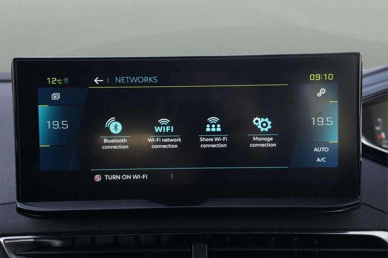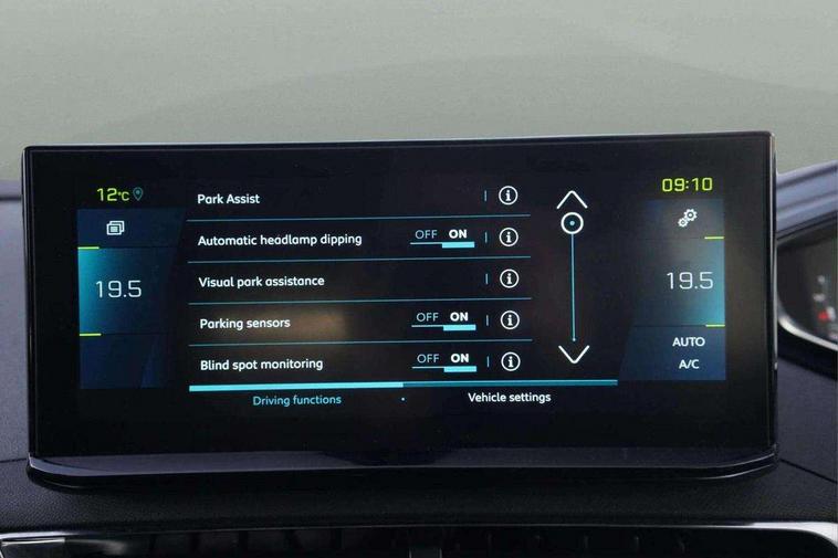 3D connected navigation with 10" HD touchscreen, Bluetooth telephone facility, Drive mode selector (Electric, Hybrid, Sport, 4WD) & Hill Assist Descent Control, Driving Time Warning (DAA1), Emergency services call system, Extended traffic sign recognition, Exterior temperature indicator with ice warning, Front and rear parking sensors, Mirror screen with mirror link, apple carplay and android auto, Multi function trip computer, Passive blind spot monitoring without Steering correction, PEUGEOT i-Cockpit with 10" high definition capacitive touchscreen, Peugeot i-cockpit with compact multi-function sports steering wheel, PEUGEOT i-Cockpit with configurable 12.3" Head-up digital instrument panel, PEUGEOT SOS and assistance, Rear passenger USB charging sockets (x2) (type A), Speed limit recognition and recommendation, Visio park assist 360 with colour camera system + automatic parking assist, Voice recognition, Deferred charging option, configurable in car or via My PEUGEOT App, Dynamic stability control and electronic anti-skid system, Mode 3 type 2 cable for wallbox charging, 6 speakers radio with mp3 compatible, DAB Digital radio, USB socket, Auto self levelling headlights, Automatic hazard light activation upon heavy brake application, Automatic triggered rear windscreen wiper in reverse gear, Black with chrome detailed front wing trim, Body colour door handles, Body colour rear roof spoiler with stainless steel edging trim, Body protectors (bottom of front and rear bumpers + wheel arches + protection at bottom of doors) in black, Dark tinted rear side windows + tailgate window, Diamond Black door mirror shells, Door mirror mounted LED courtesy floor lighting, Electric folding door mirrors with exterior courtesy LED lighting, Electric operated/heated door mirrors, Fog Mode, Front windscreen wiper with magic wash cleaning system, Full LED headlights with LED fog lights with static cornering function, Gloss black B and C pillar and aerodynamic deflector trim, Gloss black front bumper air scoops, Gloss black rear cluster connecting strip, Gloss black windscreen trim, Headlights left on audible warning, Heated rear windscreen with integrated antenna, HYBRID emblem on front wings and tailgate, LED daytime running lights, LED front indicator, LED rear number plate lighting, LED side indicator lights integrated into door mirrors, LED third brake light, One touch electric front/rear windows with pinch protection, Rear LED Peugeot signature 'Claw Effect' lights, Rear side wing doors, Stainless steel roof arches, Twin exhaust tailpipe, 1/3 to 2/3 split folding rear seats, 12V Sockets in dashboard, rear cabin and load area, 2 cupholders in front centre console, 2 cupholders in rear armrest, 2 x Rear reading spotlights, 2x Rear coat hooks, 3x Isofix child seat fittings in the front passenger and outer rear seats, 4 Grab handles retractable and damped, Aikinite stitching in armrest, gear lever and dashboard facia, Aluminium pedals, Blue ambient lighting for connecting zone, Blue ambient lighting to front door panels, central storage and cupholders, Blue ambient lighting to headup instrument panel, Cabin pre-conditioning, Centre front armrest with butterfly wing opening and illuminated storage compartment, Dual zone automatic climate control, Electric power steering with reach and rake adjustable steering column, Fixed boot floor with access to the charging cable storage box, Flocked front door pocket interior with blue ambient lighting, Flocked glovebox interior, Focal tweeter speaker grilles in Belem bronze metal effect finish, Foldable front passenger seat with picnic table, Footwell illumination, Front interior light with 2 reading spotlights and rear interior light with timer, Front passenger seat manual adjustment (longitudinal and back rest angle), Front seat back map pockets, Gear shift indicator, Illuminated glovebox, Individual left and right controls in boot for seat folding, LED interior lighting in storage spaces and load area, LED roof interior lighting, Mistral floor mats with Aikinite contrast stitching, Mistral full grain perforated leather steering wheel with aikinite stitch detail and satin chrome 'GT' emblem, Rear bench seat with central armrest and ski hatch, Rear centre console ventilation system, Roof lining - Mistral black, Satin chrome dashboard trim, Satin chrome digital instrument panel and touchscreen trim, Satin chrome front door panel recess trim, Satin chrome interior door handles, Satin chrome scorpion's tail and toggle switch trim, Seatbelt not fastened audible and visual alert for front seats, Seatbelt unfastened on the move audible and visual alert for front and rear seats, Sunvisors with illuminated vanity mirrors, Drive assist plus pack - 3008, Driver sport pack - 3008 Auto, Safety plus pack - 3008 hybrid, Visibility pack - 3008 PHEV, 3x Rear three-point retractable seatbelts with force limiters in the outer rear seats, ABS (Anti-lock Braking System) with EBD (Electronic Brakeforce Distribution) and EBA (Emergency Braking Assistance), Acoustic vehicle alerting system, Adaptive driver and front passenger airbags with passenger airbag deactivation function, Driver and front passenger side airbags, Electric child locking functionality on rear windows and doors, Electric parking brake, Front and rear curtain airbags, Front optimised safety headrests and 3 x rear retractable headrests with height adjustable, Front three point retractable seatbelts with pre tensioners and force limiters, Front ventilated disc brakes and rear disc brakes, Hill start assist, Two tone horn, Automatic door locking when moving off, Electronic immobiliser, key operated exterior door lock from the left hand door, Perimetric and volumetric alarm with lift and tilt sensor, Peugeot Open and Go System, Remote control central locking with two plip keys, Puncture repair kit including compressor, sealant cartridge and towing eye,