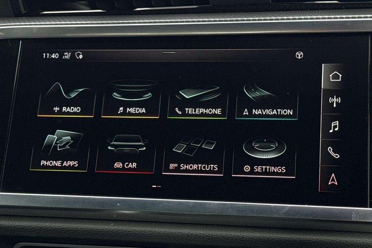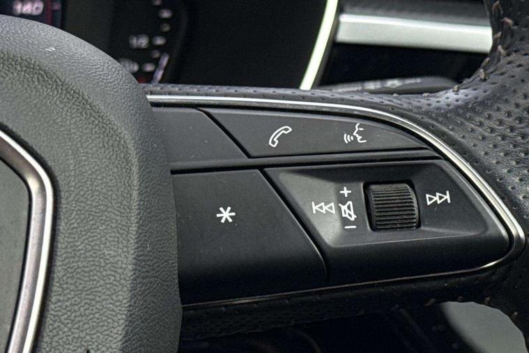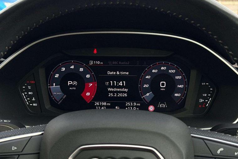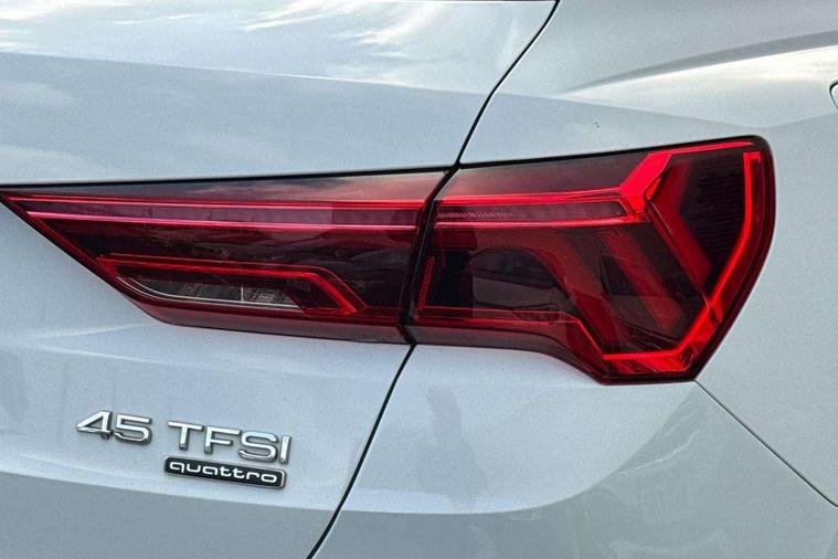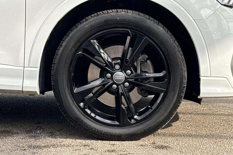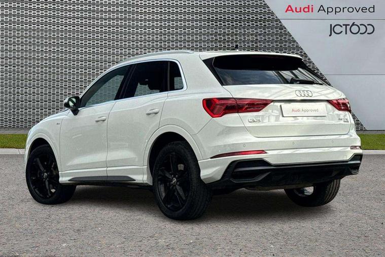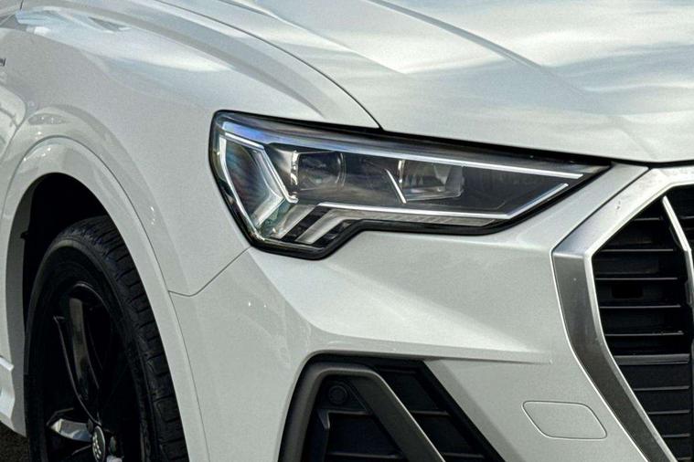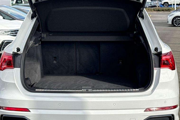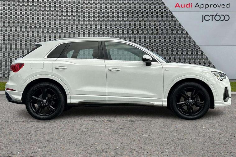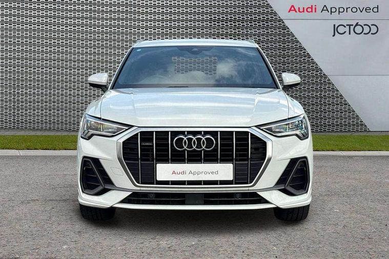 Audi connect safety and service (e-call), Audi drive select, Audi lane departure warning, Audi side assist, Audi Virtual Cockpit - 10.25" display, Bluetooth interface, Camera based traffic sign recognition, MMI Navigation Plus with high resolution 10.1 inch touchscreen colour display, Power operated tailgate, Progressive steering, Service interval indicator, Smartphone interface includes wireless Apple carplay/Android Auto, Start stop system with recuperation, Voice control system with natural language interaction, Sports suspension, 1 x USB type C and 1 USB type A charging points, 6 passive loudspeakers, DAB digital radio module, Acoustic windscreen, Aluminium roof rails, Aluminium window trim, Auto dimming frameless rear view mirror, Body coloured bumpers, Electrically folding, adjustable and heated door mirrors with integrated LED side indicators and kerb view function for passenger side, Front and rear electric windows, Front fog lights, Front side air inlets in matt platinum grey, Front spoiler blade in matt platinum grey, Grille vertical bars in aluminium silver/Matt, High gloss black finish B and C pillars, LED headlights with LED daytime running lights and dynamic rear indicator, LED rear lights, Privacy glass dark tinted rear and rear-side windows (from B-pillar backwards), Rain and light sensors, Rear diffuser strip in matt titanium black, S line badges on front wings, S Line front and rear bumpers, Side skirt insert in matt Platinium grey, Silver chrome grille surround, Titanium black radiator grille, 12V socket in rear centre console, 40:20:40 folding with manual adjustment for 60:40 forwards/backwards position and backrest angle, Adjustable rear seat bench/backrest with centre armrest and cupholder, Black cloth headlining, Dual zone electronic climate control, Front and rear black floor mats with contrast stitching in rock grey, Front and rear headrests, Front and rear roof module including reading lights, Front centre armrest, Glove compartment lighting, Height and reach adjustable steering wheel, Illuminated door sill trims with S logo, ISOFIX child seat mounting for front passenger with airbag deactivation and outer rear seat including top tether attachment point for outer rear seats, Luggage compartment light, Manual front seats with height adjustment, Perforated leather gearknob, Stainless steel luggage compartment sill finisher, Stainless steel pedals, Non smoking pack - Q3, 3x3 point rear seatbelts, 6 airbags - Driver, front passenger, curtain and side windows, Audi pre-sense front with pedestrain and cyclist recognition, Electrically operated child locks on rear doors, Electromechanical parking brake, Electronic stabilisation control including ABS, ASR and EDL, Hill descent control, Hill hold assist, Pre sense basic, Seatbelt monitoring, Tyre pressure warning, Warning triangle and first aid kit, Anti theft alarm, Anti theft wheel bolts, Remote central locking, Dark matt brushed aluminium inlay, Detail dashboard around MMI touch colour display in glass look, black with surround in aluminium look, Leatherette door armrest,
