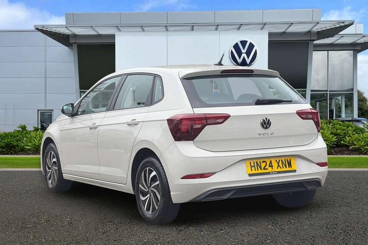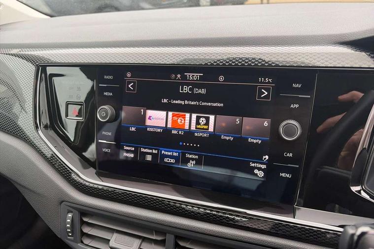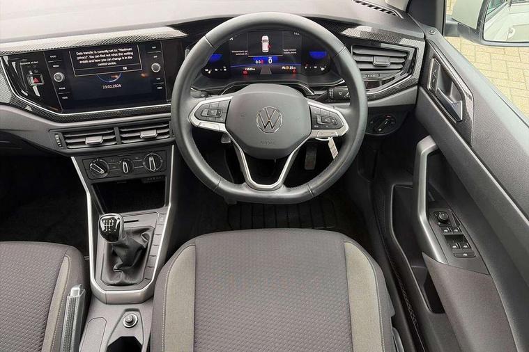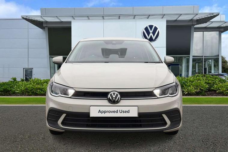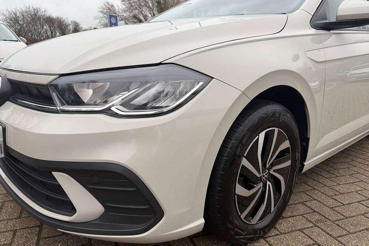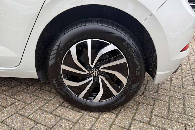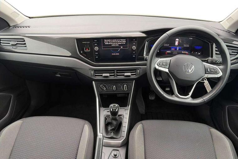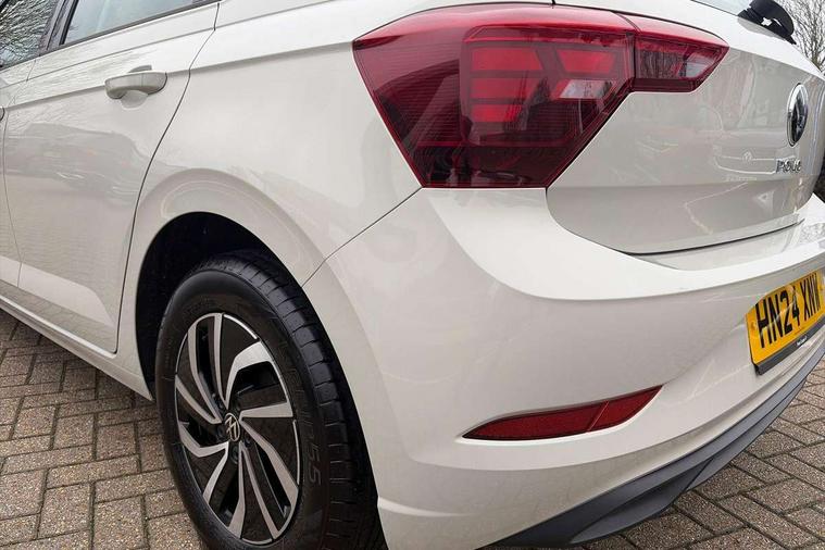 Adaptive cruise control without follow-to-stop and speed limiter, Advanced driver attention and drowsiness monitor, Bluetooth mobile phone interface, Dynamic road sign display, Emergency call service, Power assisted speed sensitive steering, Preparation for navigation system with media and internet package, Preparation for We connect and We connect plus, Speedo and rev counter, electronic odometer, trip, service interval display and exterior temperature gauge, Standard rear axle, Travel Assist - Lane keeping system and traffic jam assist, Travel assist including emergency assist, Trip computer, Warning signal and warning light for front and rear seatbelts not fastened, Washer fluid level indicator, Wireless app connect, Front wheel drive, Rear shock absorpion, Start-stop system with battery regeneration (recuperation - energy recovery during braking), DAB Digital radio, Diversity antenna for FM reception, Front and rear 6 speakers, Automatic dimming interior rear view mirror, Automatic headlight control with LED separate daytime running lights with coming/leaving home function, Body colour bumpers with chrome inserts, Body colour door handles, Body colour door mirrors, Electric front windows, Engine badge deletion, Headlight range adjustment, Heat insulating and laminated safety glass windshield, Heat insulating darkened glass in side and rear windows, Heat insulating glass windscreen, LED Headlights, LED rear combination lamps, Power folding adjustable/heated exterior mirrors and front passenger exterior mirror lowering function, Rain sensor, Rear electric windows, Rear fog light, Rear side wing doors, Rear windscreen washer and wiper with interval delay, Third brake light, 12V power socket in centre console, 2 front and 2 rear reading lights with switch off delay and dimmer, 2 USB-C ports in the front, 2 USB-C charging sockets on the center console in the rear, 3 rear head restraints, 60/40 split folding rear seat and rear seat bench not split, Ceramique roof lining, Chrome plated radiator grille inserts, air vent surrounds and light switch surrounds, Door and side trim panel, Driver and front passenger seat height adjustment, Driver/passenger sunvisors with illuminated vanity mirrors, Front centre armrest, Front seat backrest storage pockets, Front standard seats, Handbrake lever handle in leather, Hartley/Thomas cloth upholstery, Headliner in recycled material, Isofix child seat preparation easy-fit (for two outer rear seats, and front passenger seat) compatible with I-size, Leather trimmed gear knob, Luggage compartment cover, Luggage compartment lighting, Removable luggage compartment floor, Single front passenger seat, Standard climatic zones, Standard pedal cluster, Three spoke leather wrapped multifunction steering wheel, Light and vision pack - Polo, 3 point height adj front seatbelts + pretensioners, 3x3 point rear seatbelts, ABS, Driver and front passenger airbag with front passenger airbag deactivation, Drivers and front passengers safety optimised head restraints, ESC (Electronic stability control) + EDL (Electronic Differntial lock) and ASR (Traction control), Extended and predictive pedestrian/ cyclist protection, Front assist with autonomous emergency braking (for Adaptive Cruise Control ACC up to 130 mph), Front curtain and side airbags with center airbag, Front disc brakes, Hill hold control, Manual child lock in rear doors, Rear drum brakes, Single tone horn, Tyre pressure loss indicator, Alarm with interior protection, Anti-theft alarm system with interior monitoring, backup horn, and towing protection, Anti-theft wheel bolts, Electronic engine immobiliser, Lava stone black gloss/matt decorative inserts in dash and front door panels, Low rolling resistance tyres,