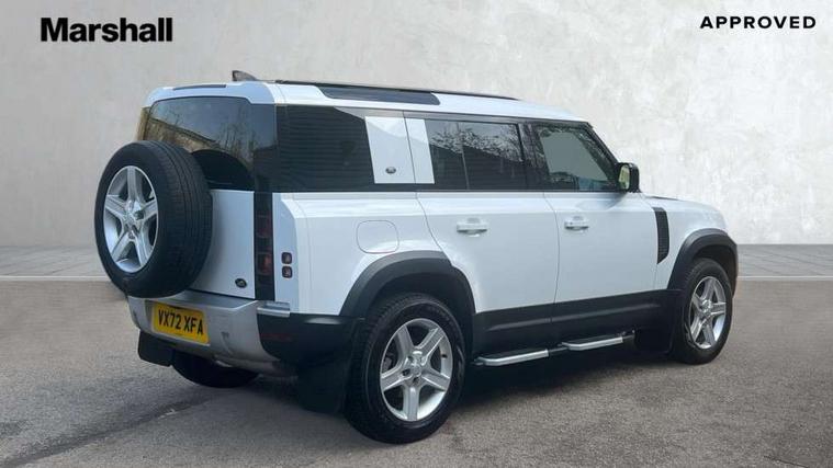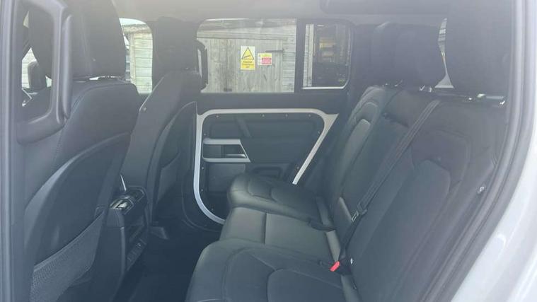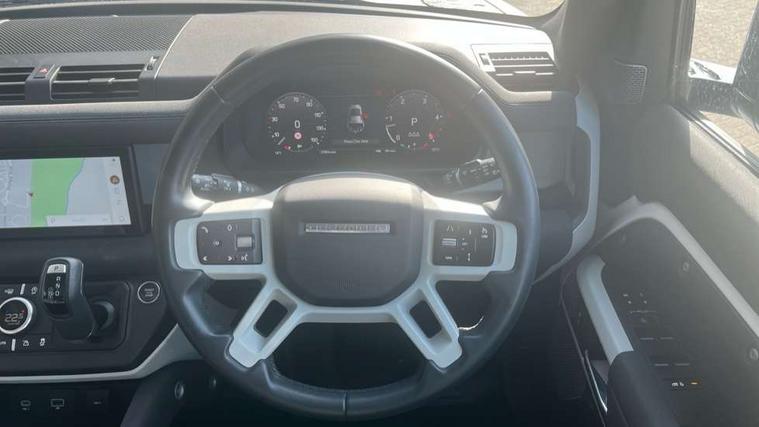 360 degree parking aid, 3D Surround Camera with 360 View, 180 Rear View, Front Traffic Detection, Forward Vehicle Guidance, Tow Hitch Assist and clear sight Ground View, Adaptive cruise control, Android Auto, Apple CarPlay, Assisted tailgate with soft close, Blind spot assist, Bluetooth system, Brake pad wear indicator, Clear exit monitor, Connected navigation pro, Driver condition monitor, Electric power assisted steering (EPAS), Interactive driver display, Lane keep assist, Push button start, Rear traffic monitor, Traffic sign recognition with adaptive speed limiter, Trip computer, Wade Sensing, 8 speed automatic transmission, All wheel drive system, Twin speed transfer box, DAB Radio (Digital Audio Broadcasting), Pivi pro connected, Automatic headlight levelling, Automatic headlights, Centre high mounted stop light, Electric heated/power fold door mirrors with approach lights and auto dimming driver side, Electric windows with one touch open/close and anti-trap, Follow me home lighting, Heated rear window with timer, Heated windscreen, LED tail lights, Puddle lights, Rain sensing windscreen wipers, Rear fog lights, Rear side wing doors, Rear wiper, Side hinged tailgate, Trailer stability assist, 12V power socket in loadspace, 3 seat bench in 2nd row, Alpine lights, Durable rubber cabin flooring, Durable rubber loadspace flooring, Footwell lights, Front passenger isofix child seat attachment, Loadspace cover, Loadspace Hook, Multifunction steering wheel, Overhead stowage for sunglasses, Premium cabin lighting, Rear headrests, Rear ISOFIX, Rear reading lights, Single front passenger seat, Standard seat configuration, Storage glovebox, Sunvisors with illuminated vanity mirrors, Online pack with data plan - Defender, 5 x 3 point seatbelts, ABS, Brake hold function, Cornering brake control (CBC), Customer configurable autolock, DSC - Dynamic Stability Control, EBD - Electronic brakeforce distribution, Electric parking brake (EPB), Emergency brake assist, Emergency braking, ESP + traction control, Front airbags with passenger seat occupant detector, HDC - Hill descent control, Hill launch assist, Low traction launch, Power operated child locks, Remote for (e-Call, Optimised assistance call, InControl app, Climate, beep and flash and door), RSC - Roll stability control, Seat belt reminder, TPMS (Tyre pressure monitoring system), Alarm, Immobiliser, Intrusion sensor, Keyless entry, Locking wheel nuts,