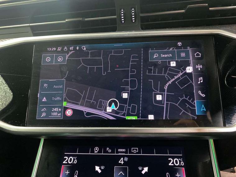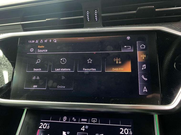 7" high resolution colour driver information display system, Audi connect safety and service (e-call), Audi connect with Amazon Alexa Integration, Audi drive select, Audi parking system plus - acoustic and visual park assist system for front and rear, Automatic start/stop system with coasting functionality, Bluetooth interface, Lane departure warning system, Power operated tailgate, Progressive steering, Rear view camera, Service interval indicator, Smartphone interface includes wireless Apple carplay/Android Auto, Voice control system, 12V Mild hybrid, Quattro on demand, Sports suspension, Audi front music interface, Audi sound system, Auxiliary input socket, DAB Digital radio, USB connection, All weather LED headlights, Black roof rails, Electric front/rear windows, Frameless auto dimming interior rear view mirror, Front intermittent wipers, Gloss black highlights on the exterior area of the Audi Single frame, Gloss black highlights on the front and rear bumpers, Gloss black highlights on the radiator grille, Gloss black highlights on the side windows trim strips, Headlight washers, Heat insulating darkened glass in side and rear windows, Heat insulating glass in windshield, LED rear lights, LED signature front daytime running light, LED third brake light, Matt black rear diffuser with diffuser strip and tailpipes in chrome, Matt black side air intake grille with inlay in matt aluminium, Privacy glass, Rain and light sensors, Rear roof spoiler, Rear side wing doors, Rear wiper, 2 zone deluxe electronic climate control, 4 way electric lumbar support for driver and front passenger, 40/20/40 split folding 3 rear seat bench in 3 parts with rear centre armrest, Black cloth headlining, Black front and rear carpet floor mat, Black steering wheel insert, Electrically adjustable front seats with driver memory, Front centre armrest, Front head restraints, Heated front seats, Height/reach adjust steering wheel, Illuminated door sill trims with S logo, Illuminated sun visors with vanity mirrors, ISOFIX child seat mounting and Top Tether with front passenger airbag deactivation, Leather gear knob, Luggage compartment system, Rear headrests, Single front passenger seat, Stainless steel pedals and foot rest, LED Interior Ambient Lighting Pack - A6, Non smoking pack - A6, Technology pack - A6, 3 point seatbelts on all seats, Airbags - Front side, front and rear including head, Audi pre-sense front, Black seatbelts, EBD - Electronic brakeforce distribution, Electromechanical parking brake, Electronic Stability Control (ESC) including ABS, ASR and EDL, Extended pedestrian protection measures, Manual child proof rear door locks, Seatbelt monitoring, Tyre pressure warning light, Warning triangle and first aid kit, Anti theft alarm with tow away protection, Anti-theft wheel bolts and wheel loosening detection, Immobiliser, Keyless Go, Remote central locking, Carbon twill inlays, 20" 5 V spoke star design Audi sport cast aluminium alloy wheels in matt titanium look,