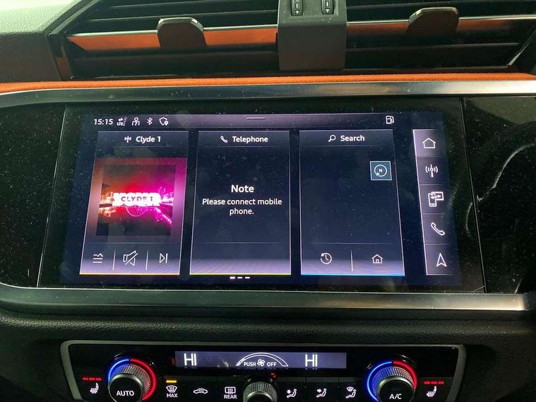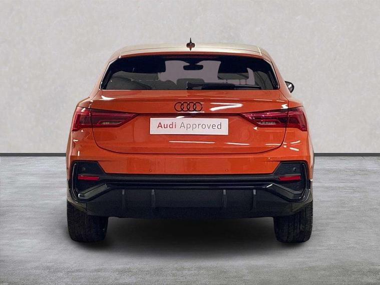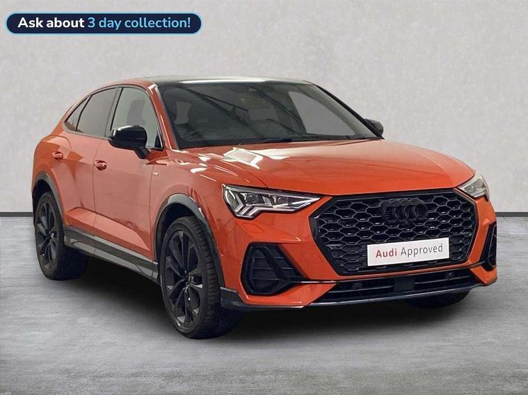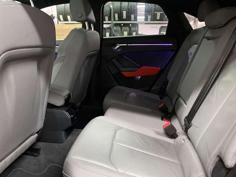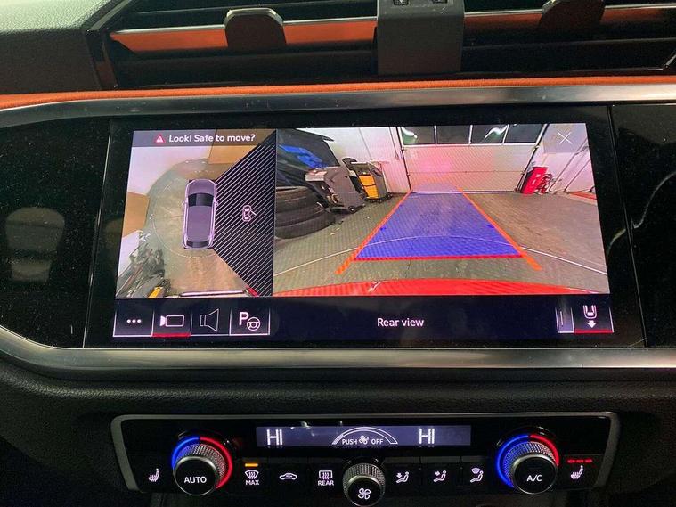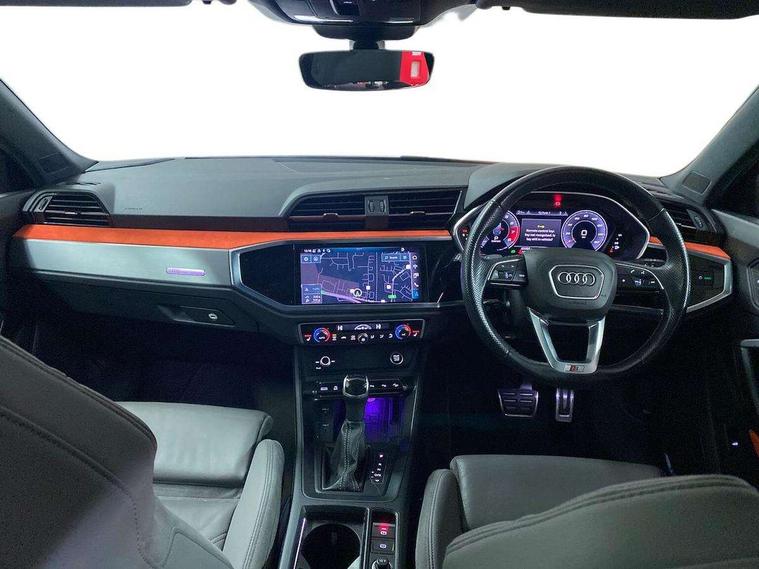 360 degree parking camera, Audi connect safety and service (e-call), Audi drive select, Audi lane departure warning, Audi phone box with wireless charging, Audi smartphone interface includes wireless Apple carplay/Android Auto, Audi virtual cockpit plus, Bluetooth interface, Camera based traffic sign recognition, MMI Navigation Plus with high resolution 10.1 inch touchscreen colour display, Power operated tailgate, Progressive steering, Rear cross traffic assist, Service interval indicator, Start stop system with recuperation, Voice control system with natural language interaction, 48V Mild hybrid technology, Adaptive suspension with damping control, 2 USB-C ports with charge and data functions, Bang + Olufsen 3D sound system, DAB digital radio module, Acoustic windscreen, Audi Beam uses LEDs to project Vorsprung logo, Auto dimming door mirrors, Auto dimming frameless rear view mirror, Bumpers and underbody protection in contrasting manhattan grey paint finish, Diffuser grille in grained matt black, Diffuser trim in selenite silver, Electrically folding, adjustable and heated door mirrors with integrated LED side indicators and kerb view function for passenger side, Front and rear electric windows, Front fog lights, Front side air inlets in selenite silver, Headlight washers, High gloss black finish B and C pillars, LED daytime running lights, Matrix LED headlights with LED rear lights and dynamic front and rear indicator, Panoramic opening glass sunroof, Privacy glass dark tinted rear and rear-side windows (from B-pillar backwards), Rain and light sensors, Rear underbody protection in matt black, 12V socket in rear centre console, 4 way electric lumbar support for driver and front passenger, 40:20:40 folding with manual adjustment for 60:40 forwards/backwards position and backrest angle, Adjustable rear seat bench/backrest with centre armrest and cupholder, Black cloth headlining, Dual zone electronic climate control, Electrically adjustable front seats, Front and rear black floor mats with contrast stitching, Front and rear headrests, Front and rear roof module including reading lights, Front centre armrest, Glove compartment lighting, Heated front seats, Height and reach adjustable steering wheel, Illuminated door sill trims with S logo, ISOFIX child seat mounting for front passenger with airbag deactivation and outer rear seat including top tether attachment point for outer rear seats, Leather steering wheel in 3-spoke design with multifunction plus and shift paddles, Luggage compartment light, Perforated leather gearknob, Stainless steel luggage compartment sill finisher, Stainless steel pedals, Tool kit, Black styling pack - Q3, Driver Assistance Pack - Q3, Multi coloured extended ambient interior lighting pack - Q3, Non smoking pack - Q3, 3x3 point rear seatbelts, 6 airbags - Driver, front passenger, curtain and side windows, Audi pre-sense front with pedestrain and cyclist recognition, Electrically operated child locks on rear doors, Electromechanical parking brake, Electronic stabilisation control including ABS, ASR and EDL, Hill descent control, Hill hold assist, Pre sense basic, Seatbelt monitoring, Tyre pressure warning, Warning triangle and first aid kit, Advanced key, Anti theft alarm, Anti theft wheel bolts, Remote central locking, Black dashboard, Detail dashboard around MMI touch colour display in glass look, black with surround in aluminium look, Leatherette door armrest, Tyre repair kit,