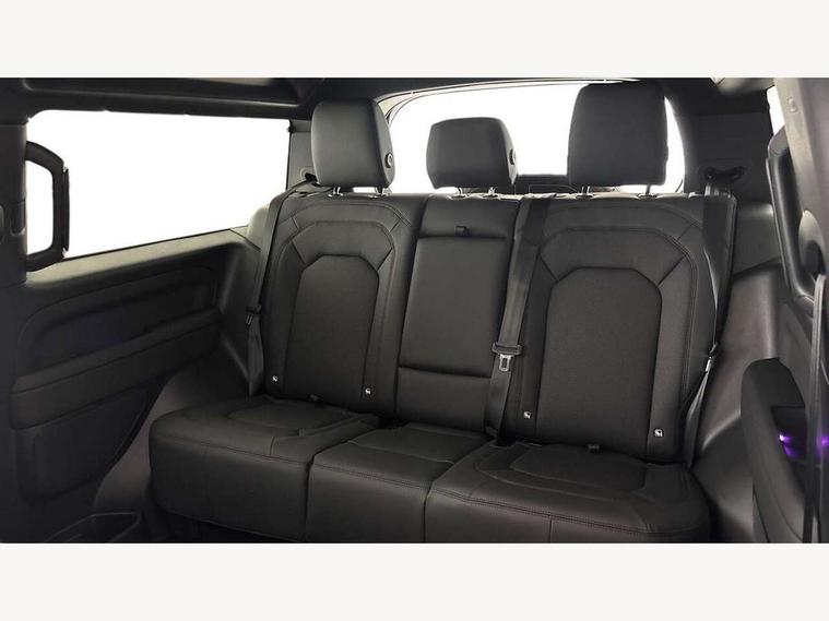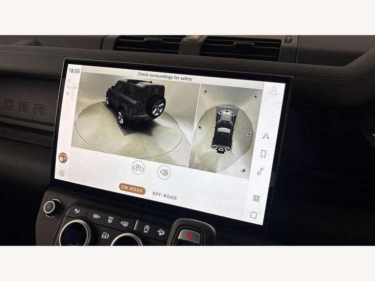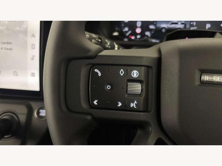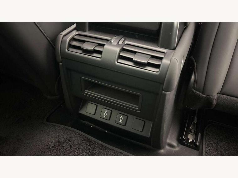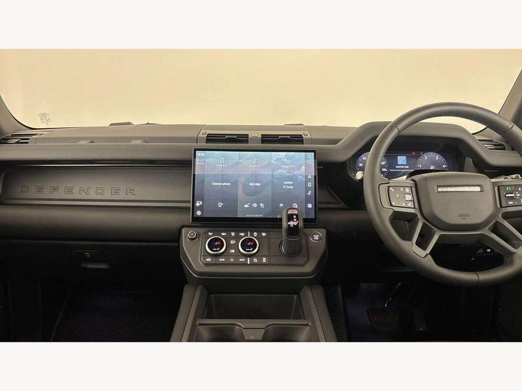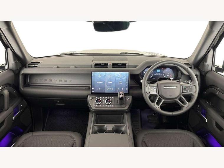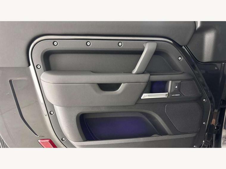 1 x USB-C (power only) & 1 x USB-C (power & data) in Row 1, 2 x USB-C in Row 2, 11.4" touchscreen, 360 degree parking aid, 3D Surround Camera with 360 View, 180 Rear View, Front Traffic Detection, Forward Vehicle Guidance, Tow Hitch Assist and clear sight Ground View, Adaptive cruise control, Android Auto, Apple CarPlay, Blind spot assist, Bluetooth system, Brake pad wear indicator, Clear exit monitor, Connected navigation pro, Driver attention monitoring system, Electric power assisted steering (EPAS), Interactive driver display, Lane keep assist, Push button start, Rear collision monitor, Rear traffic monitor, Traffic sign recognition with adaptive speed limiter, Trip computer, Wireless device charging, 8 speed automatic transmission, All wheel drive system, Twin speed transfer box, DAB Radio (Digital Audio Broadcasting), Meridian 400w sound audio system with 11 speakers and subwoofer, Pivi pro connected, Automatic headlight levelling, Automatic headlights, Black exposed rear recovery eyes, Body coloured bonnet, Darkened LED tail lights, Electric heated/power fold door mirrors with approach lights and auto dimming driver side, Electric windows with one touch open/close and anti-trap, Follow me home lighting, Front fog lights, Heated rear window with timer, Heated windscreen, LED 3rd brake light, LED tail lights, Panoramic rear side glass, Privacy glass, Puddle lights, Rain sensing windscreen wipers, Rear fog lights, Rear wiper, Side hinged tailgate, Standard tail door, Trailer stability assist, X-Dynamic badge, 12V power socket in loadspace, 3 seat bench in 2nd row, Alpine lights, Configurable cabin lighting, Durable rubber cabin flooring, Durable rubber loadspace flooring, Ebony carpet mats, Flat load space floor tray, Footwell lights, Front head restraints, Loadspace cover, Loadspace Hook, Multifunction steering wheel, Overhead stowage for sunglasses, Rear headrests, Rear ISOFIX, Rear reading lights, Single front passenger seat, Standard seat configuration, Storage glovebox, Sunvisors with illuminated vanity mirrors, Twin front cupholders, Non-smoker package, Online pack with data plan - Defender, 5 x 3 point seatbelts, ABS, Brake hold function, Cornering brake control (CBC), Customer configurable autolock, Driver and passenger airbags, DSC - Dynamic Stability Control, EBD - Electronic brakeforce distribution, Electric parking brake (EPB), Emergency brake assist, Emergency braking, ESP + traction control, Front airbags with passenger seat occupant detector, HDC - Hill descent control, Hill launch assist, Low traction launch, Remote for (e-Call, Optimised assistance call, InControl app, Climate, beep and flash and door), RSC - Roll stability control, Seat belt reminder, TPMS (Tyre pressure monitoring system), Alarm, Immobiliser, Intrusion sensor, Keyless entry, Locking wheel nuts, Secure tracker pro,