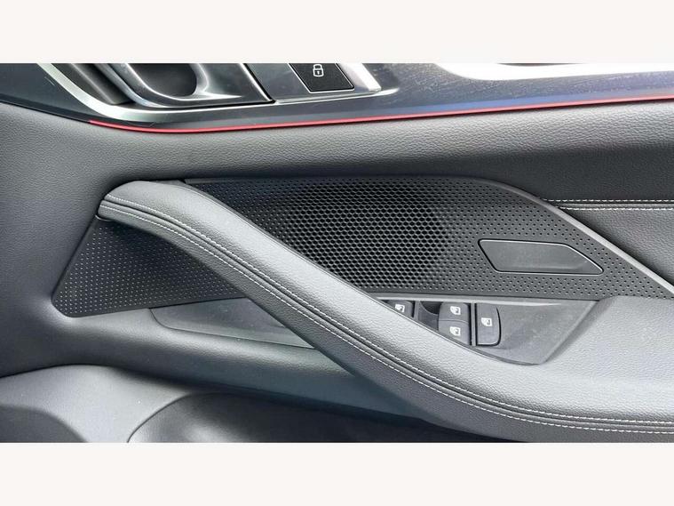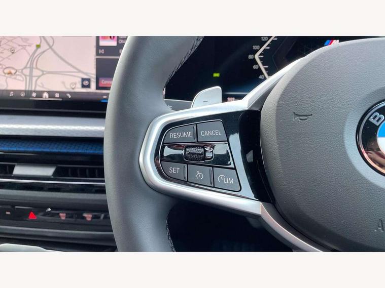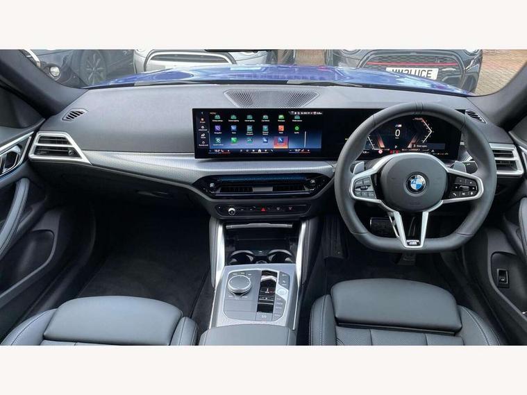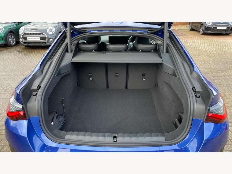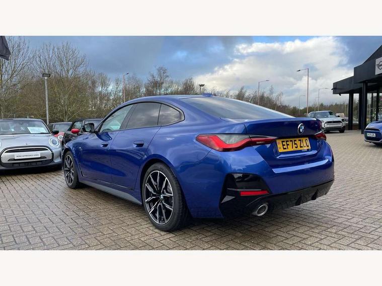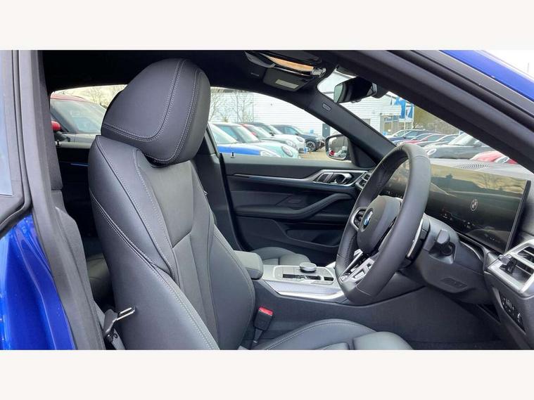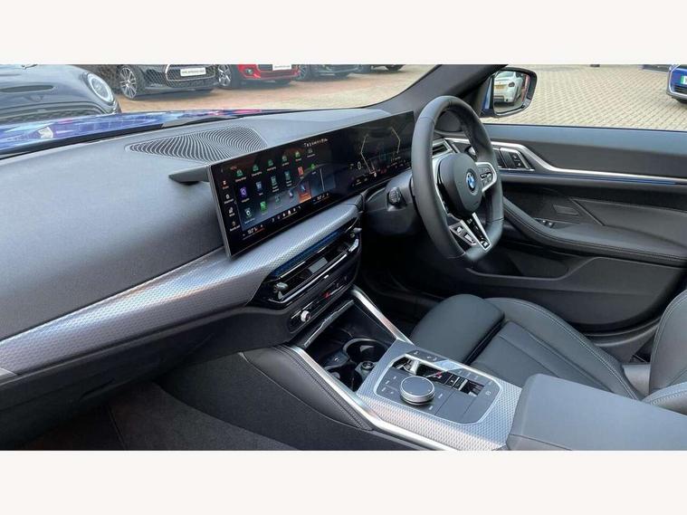 Active guard plus, Attentiveness assist, Automatic start/stop function, BMW ConnectedDrive online services, BMW iDrive controller on centre console, BMW service history, BMW Teleservices, Brake pad wear indicator in front and rear, Check Control warning system for monitoring of lights and door/luggage compartment open warning, Condition based service, Electric bootlid, Instrument cluster with speedometer with mph readout, tachometer, fuel gauge and oil temperature gauge, Integrated owners handbook, Language version English, Oil sensor for level and grade, On board computer - average speed, fuel consumption, outside temp display with acoustic warning, clock/date, service interval, odometer/trip meter, Run flat indicator, Shifting point display, Variable sport steering, 8 speed automatic steptronic transmission with gearshift paddles, Balanced 50/50 weight distribution, Double joint spring strut front axle, Drive experience mode switch - Comfort mode, ECO PRO mode and SPORT mode, Electronic differential lock control (EDLC), Low centre of gravity, Petrol Particulate Filter, Stroke dependent dampers, DAB tuner, Personal eSim, Acoustic glazing, Automatic headlight beam throw control with load dependent regulating reaction, dynamic compensation of braking dive and acceleration squat, Automatic windscreen wipers and automatic headlight, BMW radiator grille with mesh grille, end face of the nuggets in aluminium matt and frame in chrome matt, Body colour fuel filler flap, Body colour roof fin, Bonnet and tailgate badge, Electric folding wing mirrors - Driver side electrochromic, auto anti dazzle function & front passenger side auto parking function without anti dazzle, Electric windows - front and rear, with open/close fingertip control, anti trap facility and comfort closing function all round, Follow me home headlights, Front and rear bumper system, Front apron plastic in body colour, Green tinted heat protection glazing, Illuminated bow type door handles in body colour drivers side with door lock, Interior rear view electrochromatic mirror with automatic anti dazzle function, LED 3rd brake light, LED daytime running lights, LED front fog lights, LED front indicators, Licence plate panel integrated into front bumper and tailgate, M designation on front side panels, left and right, M Sport entry door sill strips, One piece front bumper cover including towing eye cover in body colour, Preparation for high beam assistant, Rear side wing doors, Rear wiper, Reversing light, Side frame trim strip black matt, Two part LED tailights in L-shape with components in smoked glass, brake light, LED turn indicator and rear fog light, Visible exhaust tailpipe finisher, Visible VIN plate, Welcome lights in interior and door handle area, Widened track and increased camber values for max transverse dynamics, agility and steering precision, Windscreen washer jets concealed underneath bonnet, 12V power socket in front centre console, 2 front cupholder in centre console with clamping elements and matt black inlay, 3 rear headrests, 3 seat bench in 2nd row, 3 spoke flat bottom M sport leather multifunction steering wheel, 3 zone automatic air conditioning, 4 pieces lashing eyelets in luggage compartment, 40:20:40 split folding rear seat, folding head restraint of centre seat and rear centre armrest with two cupholders, Anthracite headlining, Armrest integrated in front and rear door trim + front centre console armrest, Battery in luggage compartment, BMW ID, Extended storage - 2x Dual USB Type C 3A charging function in the rear centre console for the rear, Extended storage - Luggage compartment partition net on left side trim panel, Bag hook on both sides of the luggage compartment, Extended storage - Multifunction hook, Extended storage - Trailer tow hitch button in black (extendable trailer tow hitch) on the right hand side, Four grab handles integrated in roof lining, Front and rear door pockets, Front footwell lights, Heated driver and front passenger seats, Height adjustable front headrests, Illuminated armrest storage compartment, Illuminated glove compartment with separate small compartment, Interior light and front reading light, Luggage compartment light, Single front passenger seat, Steering column adjustment - Infinitely variable in height and length, Sunvisors with illuminated vanity mirrors and ticket pocket, Through load system, Toolkit located in luggage compartment, Velour front floor mats, Ambient lighting pack - 4 Series, BMW Live Cockpit Plus pack - 4 Series, Connected professional package - 4 Series, M High gloss shadowline exterior trim pack - 4 Series, M sport exterior styling pack - 4 Series, Park assist pack - 4 Series, 3 point seatbelts on all seats, BMW emergency call, Brake energy regeneration, Braking pre-tensioning, Child locks, Child seat ISOFIX attachment for the two outer rear seats, Crash sensor activating of airbags, Unlocking doors, hazard warning lights, interior light, safety battery terminal, Driver and front passenger side airbags, integrated in the door side seat backrest bolsters for all seat variants, Driver/Front Passenger airbags, Dry braking, Dynamic brake control, Dynamic stability control + (DSC+) - Anti-lock Braking System (ABS) with brake assist and cornering brake control + Automatic Stability Control (ASC), Dynamic Traction Control - DTC, Electric parking brake including automatic hold function and automatic release of the parking brake when driving off, Front and rear ventilated brake disc, Front passenger manual airbag deactivation, Head airbags for all 4 outer seats, Hill start assistant, Seat belt security check for driver and front passenger, Seat belt with belt stopper, pyrotechnic belt tensioners and belt force limiters, Seat occupancy detection for driver and passenger side, Side impact protection, Tyre pressure sensors, Warning triangle and first aid kit, Alarm system for monitoring doors, engine compartment, interior movement sensor, tilt sensor and siren w