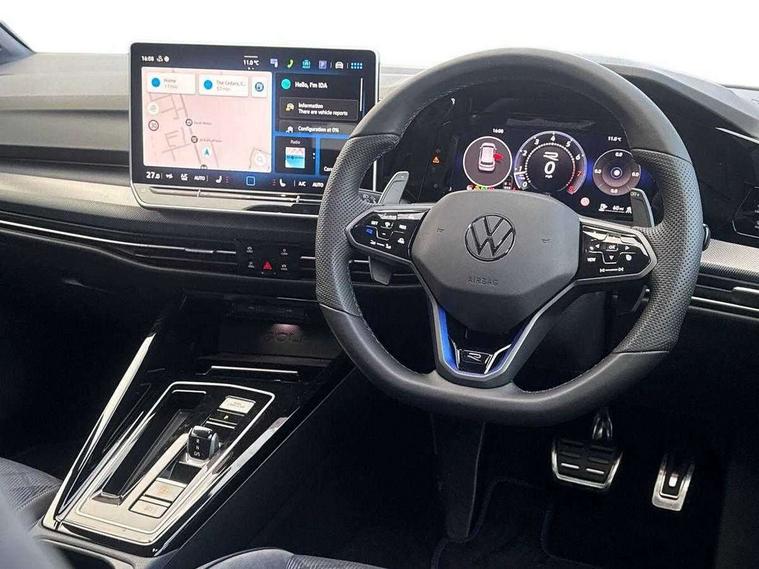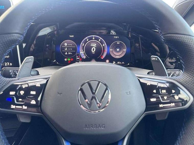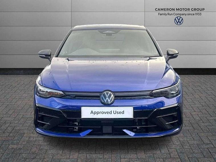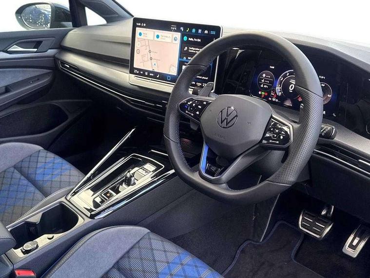 Activated carbon canister, Adaptive cruise control (ACC), Advanced driver attention and drowsiness monitor, Dynamic road sign display, E-Sim card for online connectivity, eCall emergency call system, Electronic maximum speed limit increased to 270 km/h, includes driving Modes 'drift' and 'special', larger roof spolier and GPS laptimer + G-Meter, Multi-color Digital cockpit pro, selection of different info profile possible, Multifunction front facing camera for distance control, Navigation system, Oncoming vehicle braking when turning including swerve support, Progressive steering, Side assist blind spot lane change system, rear traffic alert and exit warning system, Speed limiter, Speedo, rev counter, electronic odometer, trip, service interval display, exterior temperature and fuel gauge, Traffic jam assist, Voice enhancer and voice control, Warning signal and warning light for front and rear seatbelts not fastened, We connect plus preparation, We connect preparation, Wireless app connect, All wheel drive - 4Motion, Petrol Particulate Filter, Start-stop system with battery regeneration (recuperation - energy recovery during braking), XDS electronic differential lock for improved traction and handling, 2 USB C ports in front, 2 USB charging sockets on the centre console in the rear charging capacity upto 45W, Digital radio reception (DAB), Diversity antenna for FM reception, Gaming platform via car app, Infotainment system with 12.9" display, Mobile phone interface with inductive charging feature, 3rd brake light, Auto dimming rear view mirror, Automatic headlamp activation with Coming home and Leaving home feature, Black badge on B-pillar, Black mirror caps, Black strips on radiator grille and headlights, Body colour door handles, Darkened headlights, Darkened R Logos and VW logos in front, rear and on fender, Exterior mirrors convex on the left and aspherical on the right, Front and rear electric windows, Front fog lamps and cornering light, Heat insulating windshield made of laminated glass, Illuminated lighting animation with wake up/goodbye scenario, LED matrix headlights with ambient light V2, advanced high beam, dynamic range contol with cornering, LED rear lamp with indicator, poor weather, LED separate daytime running light, Light assist with High beam control, R name plate, Rain sensor, Rear fog light on one side and reversing lights on both sides, Rear side wing doors, Rear tinted glass 65% light absorbing from B pillar backwards, Rear windscreen washer and wiper with interval delay, Remote electrically foldable door mirrors, puddle lights and reverse activated passenger's door mirror, Welcome light with surround lighting, 12V socket in front centre console, 12V socket in luggage compartment, 3 rear head restraints, 3 seat bench in 2nd row, 30 colour ambient lighting, illuminated center console storage compartment in front, Air care climatronic 3 Zone automatic climate control with rear air conditioning control panel, Aluminium gearshift handle, Brushed stainless steel pedals, Chrome plated radiator grille inserts, air vent surrounds and light switch surrounds, Entry lights, Front + rear black carpet mats, Front centre armrest, Integrated front head restraints, ISOFIX anchors for child seats on outer rear bench seats and on front passanger seat compatible for i-Size, Luggage compartment lighting, Rear cupholder and loadthough, Single front passenger seat, Soul black instrument panel, Soul black roof lining, Split folding backrest with centre armrest and unsplit rear seat bench, Sun visors with illuminated vanity mirrors, Driver assistance pack - Golf Estate/Hatchback Auto, R styling pack - Golf, Technology park and comfort pro package - Golf Hatchback, 3 point height adj front seatbelts + pretensioners, 3 rear three point seatbelts, ABS, Autonomous emergency braking front assist with pedestrian and cyclist monitoring, Child locks on rear doors, Driver and front passenger airbag with front passenger airbag deactivation, Electronic parking brake with auto hold, ESC (Electronic Stability Control), Extended pedestrian protection measures, Front and rear black brake calipers with darkened R-logo, Hill start assist, Rear disc brakes, Two tone horn, Tyre pressure loss indicator, Volkswagen roadside assistance, Anti theft wheel bolts, Preparation for alcohol interlock, Sporty vehicle dynamics, Tool kit for tyre mobility set, Tyre mobility kit Includes 12V compressor and tyre sealant, Wheel hub cover with darkened R-logo,