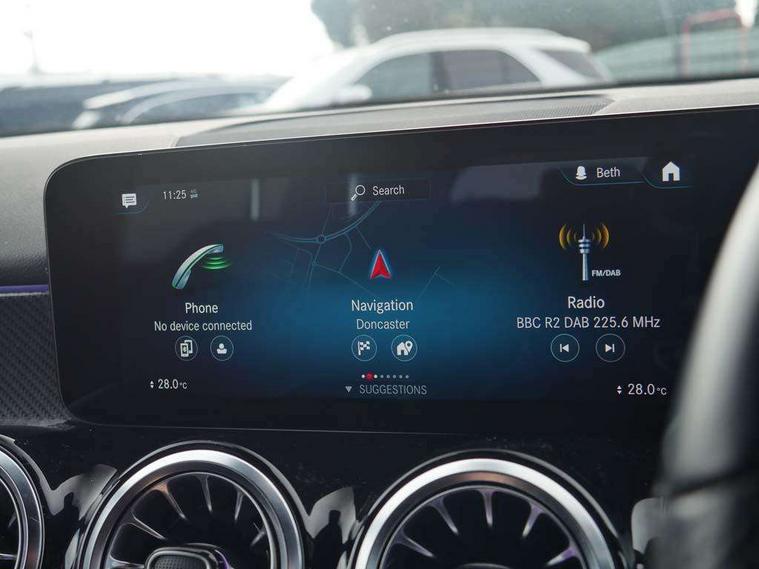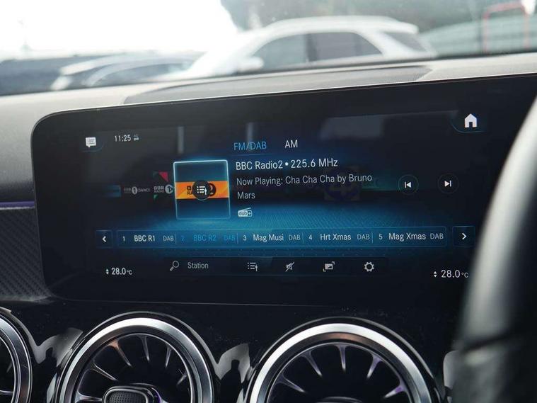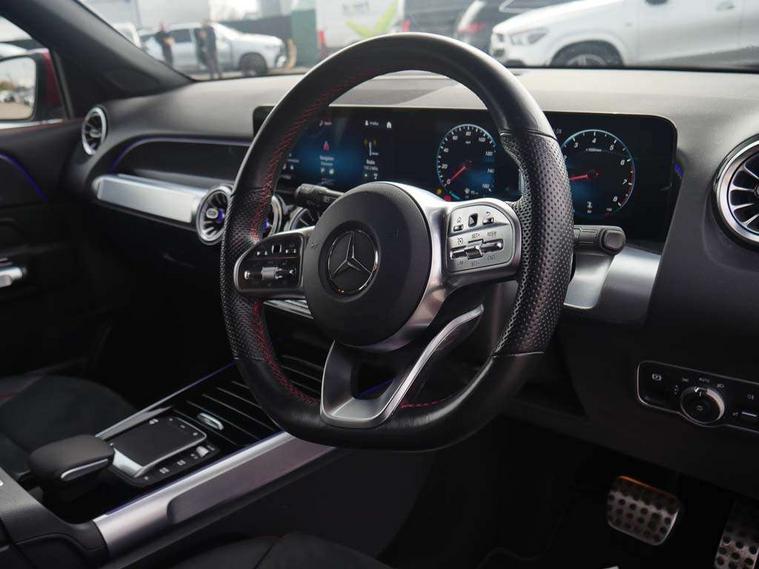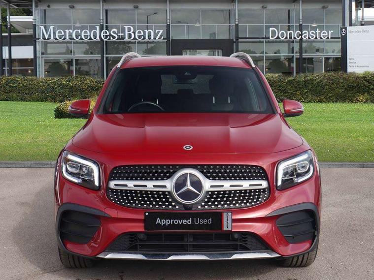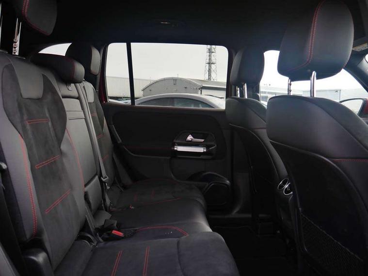 10.25" Digital instrument cluster display screen, 10.25" Digital media screen display, Active lane keeping assist, Attention assist - Monitors steering behaviour and long journey fatigue, Brake pad wear indicator warning light, Car wash mode, Cruise control with limiter, DYNAMIC SELECT with a choice of driving modes (ECO, Comfort, Sport and Individual), ECO start/stop function, Fluid level warning indicator for fuel, oil, coolant and washer fluid, Hard disk navigation, Hey Mercedes Voice activation, Lamp failure indicator, Mercedes me connect including emergency call system, accident recovery, breakdown and maintenance management, Mercedes me remote services, Outside temperature gauge, Owners manual and service booklet in English, Parameter steering system, Pre-installation of private car share, Preinstallation for parking damage notification, Radio aerial integrated into front and rear windshields, Service indicator (ASSYST), Smartphone integration with Apple CarPlay and Android auto, Speed limit assist, Trip computer in multifunction display with current consumption indicator, Comfort suspension, Rear axle multi-link, DAB digital radio tuner, MBUX multimedia system with DAB digital radio and touchpad including satellite navigation, Mercedes Benz sound system (225 W) with 10 speakers, 1 central speaker, speakers on doors, a tweeter on door, one sub woofer + boost amplifier, Pre installation for Mercedes Benz Link, USB (type C) port in front stowage compartment, USB (type C) ports (2) in stowage compartment, Adaptive brake lights, Aerial for GPS, AMG bodystyling door panels black grained with chrome plated inserts, AMG bodystyling front apron with chrome splitter, AMG bodystyling rear apron with diffuser optics and chrome trim element, AMG specific front and rear bumper including underride guard in high gloss chrome, Beltline strips and weather strip in chrome, Body coloured bumpers, Body coloured door handles with chrome insert for keyless entry, Body coloured door mirror caps, Electric adjustable and heated door mirrors with integrated LED side indicators, Exhaust system with dual flow exhaust pipes (non-functional), Front and rear electric windows, Headlamp assist automatic headlamp activation, Heated glass rear windscreen + timer control, High level LED third brake light, Interior mirror with black reading lamps and frameless, LED high performance headlamps with integrated LED daytime running lights, LED tail lamp, Polished aluminium roof rails, Privacy glass with dark tinting on rear side windows and rear window, Radiator grille with pins in chrome and single louvre with chrome insert, Rain sensor windscreen wipers, Rear fog lamp, Rear side wing doors, Rear wiper, Two visible tailpipe trim elements exhaust, 3 seat bench in 2nd row, 3 spoke multifunction sport steering wheel in nappa leather, Air conditioning - Two zone thermotronic luxury automatic climate control with display, AMG sports pedals with brushed stainless steel surfaces and black rubber studs, Artico man-made leather/Microfibre Dinamica upholstery with red contrast stitching, Automatic child seat recognition sensor, Black floor mats with AMG lettering, Black roof lining, Fore/aft adjustment rear seats, Freight packaging with tie-down hooks, Front centre armrest with stowage, Front door sills with illuminated changeable cover, Front passenger grab handle with brushed side silver chrome, Front sports seats with adjustable head restraints, Galvanished gear shift paddles on steering wheel, Heated front seats, Height/reach adjustable steering column, Interior lighting - 64 colour Ambient lighting, Luggage net on driver/front passenger seat backrest, Net in front passenger footwell, Rear armrest with two integral cup holders for drinks, Rear seat easy entry, Single front passenger seat, Stowage compartment in centre console, Stowage compartment with retractable cover, Third row of seats for two people on rear seat, Touchpad on center console, Twin front cup holders, Two outer rear seat isofix and top tether child seat fixing points, Interior lighting with light and sight pack - GLB, Keyless go pack - GLB, Mirror pack - GLB, Parking pack - GLB, Seat comfort package - GLB, 3 rear 3 point seatbelts, Active bonnet pedestrain safety measure which detects an impact and raises bonnet by 65mm, Active brake assist includes forward collision warning system with autonomous braking, Adaptive brake assist with hold function and hill start assist, Airbags - kneebag for driver, Anti-lock braking system (ABS) with brake assist, Childproof locks manually operated for rear doors and electrically operated for rear power windows, Crash responsive emergency lighting, Curve dynamic assist, Driver and front passenger head and sidebags, Driver and front passenger windowbags, Dual stage driver and front passenger airbags, Electronic parking brake, Electronic stability programme with acceleration skid control, Front and rear seatbelt reminder, Front brake callipers with Mercedes Benz lettering, Front passenger seat occupancy sensor, Tyre pressure monitoring system, Warning triangle and first aid kit, Interior monitoring system, Remote central locking and crash sensor with emergency opening function, Thatcham category 1 alarm system with immobiliser and interior protection, Urban guard vehicle protection - Anti theft alarm system, tow away protection with visual and acoustic warning and alarm siren, Vehicle key with decorative surround in chrome, Black air vents with chrome surround, Carbon structure trim, 19" AMG 5 twin spoke light alloy wheels painted in high gloss black with high sheen finish, Summer tyres, Tirefit tyre sealant kit,