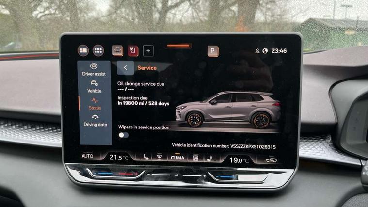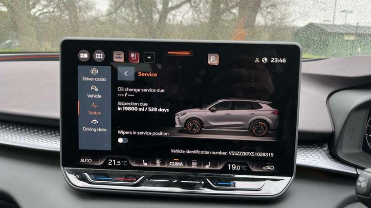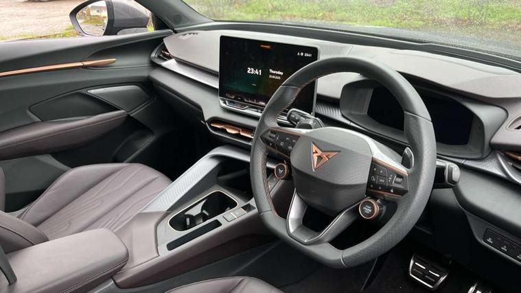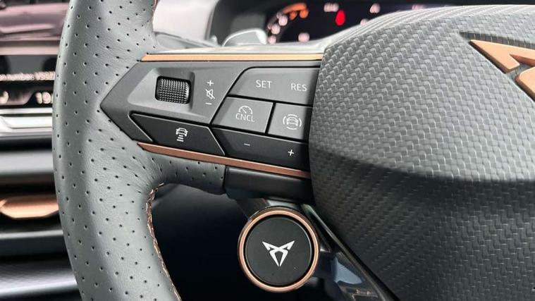 10.25" digital cockpit and configurable dashboard, Adaptive cruise control with follow-to-stop and speed limiter, Advanced driver alert system, Advanced lane assist with semi-automatic vehicle control in a medical emergency and traffic jam assist, Driving profile selection (DCC- Comfort, performance, CUPRA, Individual, Dynamic road sign display, E-call, Electric tailgate with virtual pedal, Emergency steering support with turn assist, Front and rear parking sensors, Front assist (Forward collision warning with automatic braking) with multifunction camera and front cross traffic assist, Head up Display, Intelligent park assist, Media system with Nav - 12.9" touch display, voice control, full link phone (wired/wireless), DAB and Steering wheel mounted controls, Rear traffic assist, Side and exit assist, Speed sensitive power steering, Start/stop system with regenerative braking, Top view camera (front camera, rear camera, 2 side cameras), Wireless phone charger, Adaptive chassis control with a 2-valve shock absorber, Auto dimming rear view mirror, Black roof rails, CUPRA 3D rear lights with ceremony & swiping indicator and illuminated logo, Dark tinted rear windows, Daytime running lights with automatic headlight control and Coming and Leaving home function, Door mirrors with memory function and lowing function on passenger mirror, Electric front/rear windows, Electrically adjustable, heated and folding door mirrors, Front fog lamps with cornering function, Heat reflecting windscreen, High beam assist, Rain sensing wipers, Rear fog light on one side, back up light on both sides, Rear side wing doors, Rear wash/wipe, Third brake light, Welcome lights (within exterior mirror housing), 3 seat bench in 2nd row, Black roof lining, Cupra sports pedals, Driver seat memory function, Electrically adjustable front seats including lumbar support, Four x USB Type C ports (2 in front and 2 in rear), Front and rear head restraints, Front and rear reading lights X 4, Front centre armrest, Heated front seats, Heated leather wrapped multi function sports steering wheel with tiptronic, Illuminated interior front door sills, Isofix, Leather upholstery, Operating voltage 12V, Single front passenger seat, Smart wraparound interior lighting, Sunvisors with illuminated mirror, Three zone climate control with control panel in rear, Unsplit rear seat bench, split folding backrest, with centre armrest, Variable luggage/load compartment floor, Pure performance pack - Terramar, 3 point seatbelts in front with pretensioner and electric height adjustment, 3 point seatbelts on all rear seats, Brake control system - ESC and brake booster, Child proof door locks, Driver and front passenger airbags, Electronic parking brake, Front and rear disc brakes, Front interaction airbag, Front passenger airbag deactivation switch, Front side airbags with curtain airbags, Pre-crash front and rear seat belt tensioner, window closure and hazard lights, Tyre pressure monitoring system, Visual and acoustic seat belt reminder, electric contact in front and rear, Anti theft alarm, Keyless locking and starting system keyless advanced with safelock, Locking wheel bolts, Black decorative trims, Chrome interior detailing, Performance tyres in polmer coating, Tool kit,