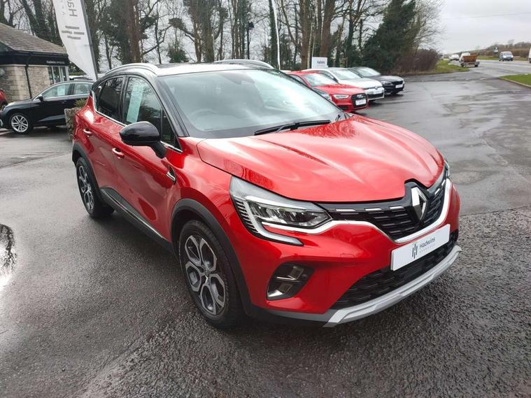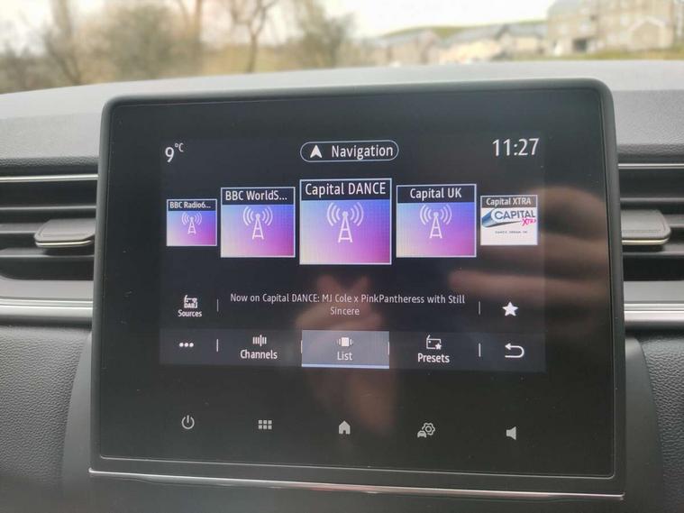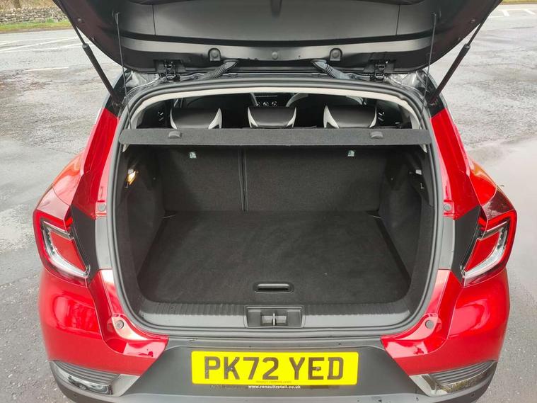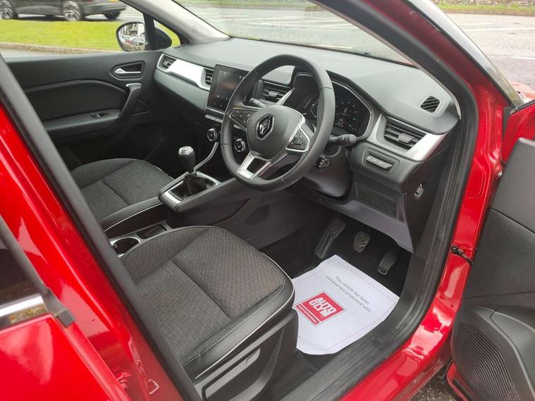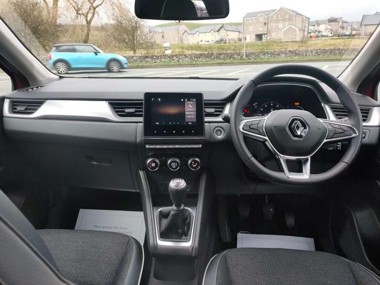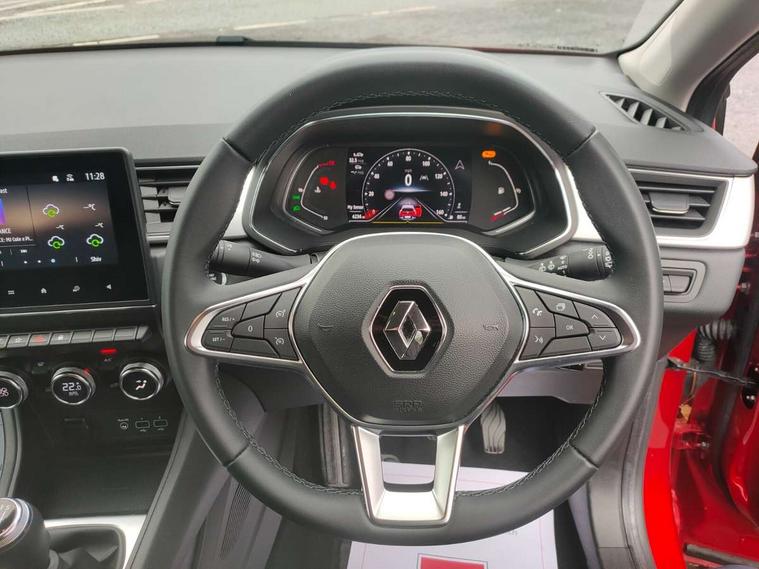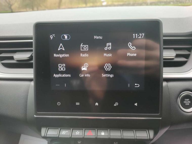 7" TFT Driver information display, Cruise control + speed limiter, EasyLink 7" touchscreen with navigation, google search and traffic information, Eco mode, Front and rear parking sensors with rear view camera, Gear change indicator, Lane departure warning system, Lane keep assist, Multisense with 3 driving modes + 8 ambient lighting colours, Renault automatic emergency assist, Smartphone integration compatible with Apple CarPlay and Android Auto, Traffic sign recognition with over speed prevention, Trip computer, Variable assistance power steering, Wireless phone charger, DAB Radio with Bluetooth and USB, 2 reverse gear LED lamps and 1 rear LED fog lamp in the bumper, Auto dimming rear view mirror, Automatic front wipers with rain sensors, Automatic headlights, Automatic high/low beam, Black side door protection with chrome effect, Body colour door handles, Body coloured bumpers, Body coloured door mirrors, C Shaped LED front and rear lighting signatures with 3D effect on the rear lights, Chrome around front air deflectors, on front wing deco element and window lining, Day time running light, Drivers one touch window with anti-pinch feature, Extra tinted glass in rear windows and tailgate, Front and rear electric windows, Front grille with chrome upper trim, Full LED headlights, Grey front and rear skid plate, LED front fog lights, LED high level brake lights, LED turn indicators on door mirrors, Longitudinal roof bars, Rear side wing doors, Rear wiper, Shark fin antenna, 12V Accessory socket, 3 rear headrests, 60/40 split and fixed base rear seat bench, Automatic climate control with one touch demist function and air quality regulator, Centre console storage tray, Front head restraints, Glovebox, Heating system with pollen filter, Height adjustable driver's seat, Height adjustable passenger seat, Height/reach adjust steering wheel, ISOFIX child seat fixing points on rear outermost seats, LED front roof lights, Middle console with armrest and storage, Modular boot floor, Rear air vents, Single front passenger seat, Sliding rear bench, Synthetic leather steering wheel, Synthetic leather/cloth upholstery, 3 rear seatbelts, ABS+EBA, Distance warning alert, Driver and front passenger, side, head and curtain airbags, Driver height adjustable seat belt, Electric parking brake with auto hold function, Electronic stability control, Front and rear no seatbelt warning sound, Front dash warning indicator in case of heavy braking, Front driver and passenger side airbag deactivation, Hill start assist, Rear door and window child locking function for rear door, Tyre pressure warning light, Anti drill door locks and locking fuel cap, Central door locking, Deadlocking system, Hands free keycard with push button and start/stop function, RAID (Renault Anti-Intruder Device) automatic door locking, Black soft touch dashboard, 18" Pasadena diamond cut alloy wheels with grey inserts,