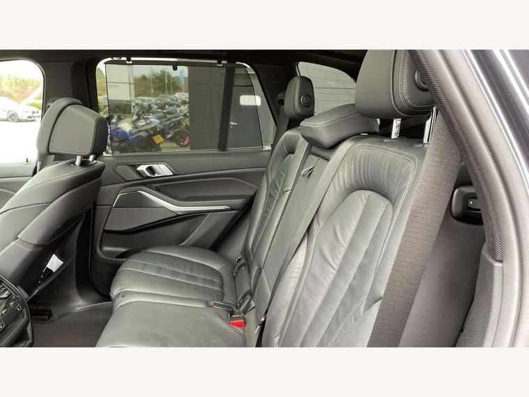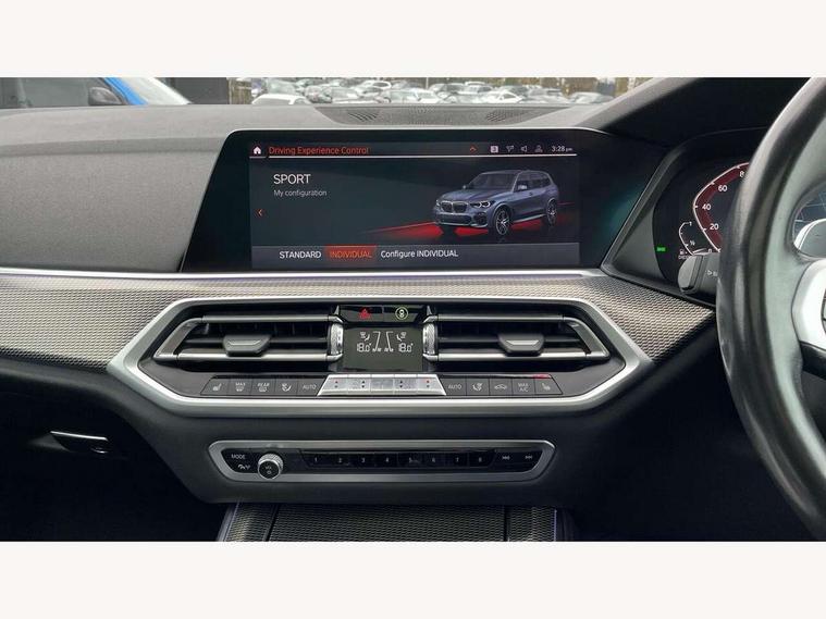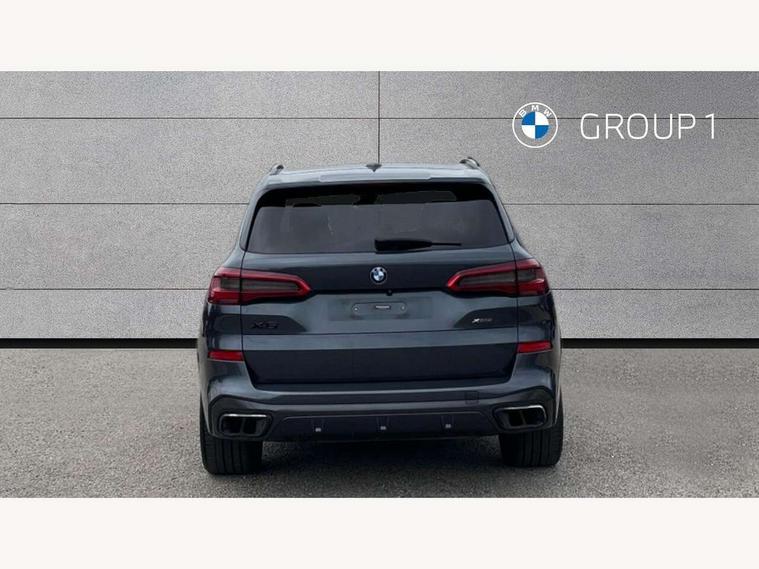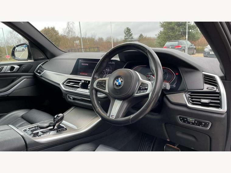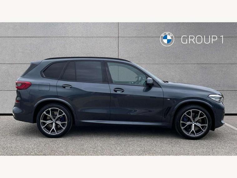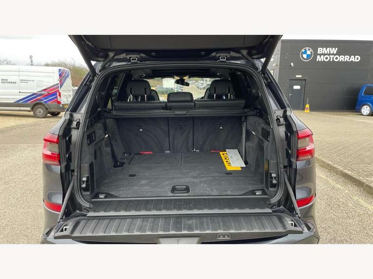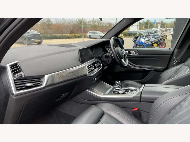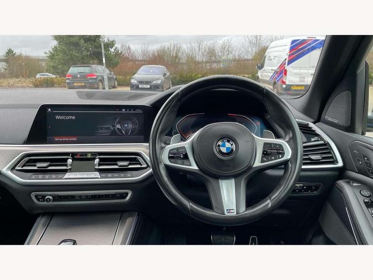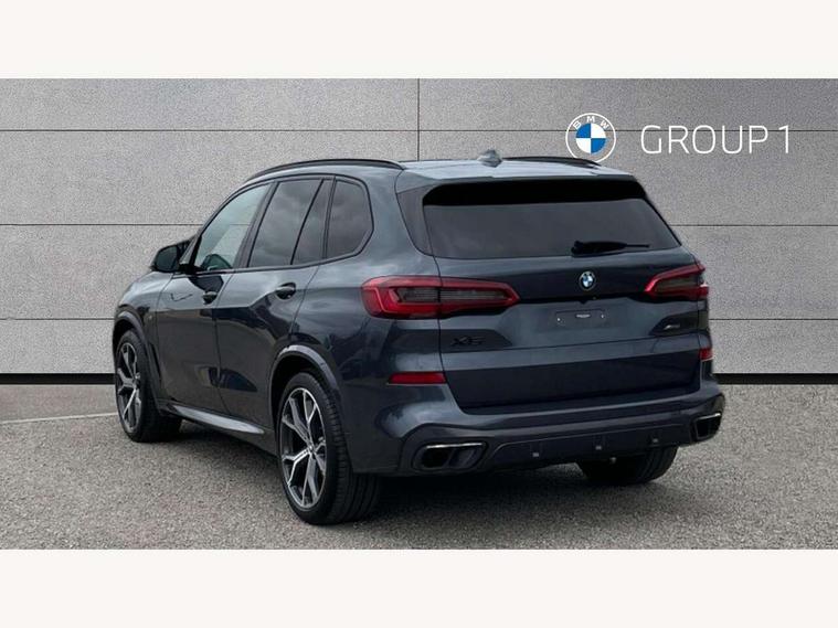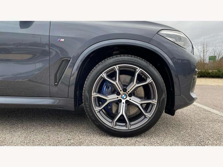 20GB hard disc drive (HDD) memory, Active guard plus, Attentiveness assist, Automatic tailgate with top hinged section open and manual bottom hinged section, BMW digital live cockpit professional - 12.3" digital instrument panel and 12.3" CID, with touch/voice command, BMW legal emergency call, BMW Online services, BMW Teleservices, Brake force display, Brake pad wear indicator warning light, Cruise control with brake assist, Enhanced bluetooth hands free facility with Telephony wireless charging, Front/rear park distance control, iDrive touch controller with shortcut buttons, Lights on warning, Oil sensor for level and grade, On board computer inc. average speed, fuel consumption, liquid crystal Info display, journey computer, outside temperature display, personal profile, Service interval indicator, Speed limiting function, Wi-Fi hotspot, Adaptive 2-axle air suspension, Diesel particulate filter, Double wishbone front axle, Drive performance control with ECO PRO comfort + sport mode, Safety battery terminal clamp, Sport automatic transmission, DAB Digital radio, Favourite buttons, Gesture control for infotainment system, USB connection, USB type A 1.5A in cupholder, USB Type C 3A in centre armrest, Active Air Stream kidney grille with high-gloss chrome, Adaptive air flap control bar in high-gloss black, Automatically dimming rear view mirror, Body colour bumpers, Body colour door handles, Body colour mirror housing, Dynamic brake lights with LED technology, Exhaust tailpipes - single, left and right with Chrome finisher, Follow me home headlights, Front and rear electric windows with open and close fingertip control, anti trap facility and comfort closing, Heat insulated glass, Heated windscreen washer jets, High gloss black outer and central air intakes on front bumper with pearlescent chrome finish, High gloss black Side elements, Intermittent rear wash/wipe, LED daytime running lights, LED fog lights, LED rear lights, M aerodynamic body styling, M designation on left and right front side panels, Pearlescent chrome front grille bars, Rain sensor with automatic headlight activation and windscreen wiper control, Satin aluminium side window graphic, Third brake light in rear spoiler, Welcome light carpet, X5 on left tailgate, xDrive designation on right tailgate, 12V - Power sockets with 2x centre console and 1x luggage compartment, 40:20:40 split folding rear seats, Ambient interior lighting with 6 pre-designed selectable lights including dynamic function, Anthracite headlining, Centre and rear interior light, Child seat ISOFIX attachment with rear outer seats includes top tether, Compartment in front of cupholder, Electric adjustable front seats + driver memory, Electrical steering column with adjustable height and length with activation and control on the steering column, Foldable rear centre armrest with 2 cupholders and storage compartment, Front and rear cupholders x 2, Front and rear door pockets, Front and rear door sill finishers with illuminated BMW designation, Front and rear door sill inlays with illuminated BMW M designation, Front and rear side armrest integrated into door trim, Front footwell lights, Front reading lights, Gearshift paddles on steering wheel, Light inside glove compartment, Lockable glove compartment, Luggage compartment floor panel with integral storage tray, Luggage compartment lighting, M leather steering wheel, M specific key, M specific pedals, M specific steering wheel, M specific velour floor mats, Make-up mirror lights, Multifunction controls for leather steering wheel, Multifunctional hooks, Seat back with flap pocket, Securing rings in luggage compartment, Storage bins on all doors, Storage tray and compartment with cover in centre console, Sunvisors with illuminated vanity mirrors, Toolkit located in luggage compartment, Connected Package Professional - X5, Expanded exterior mirror pack - X5/X5 M, Non-smokers pack - X5, ADB - Automatic Differential Brake, Airbags - driver/front passenger, rear and side, first and second row seats head airbags, front passenger seat airbag deactivation + knee airbag, Anti-lock braking system (ABS), Automatic Stability Control (ASC), Brake drying, Brake energy regeneration, Brake fade compensation, Braking pre-tensioning, Cornering brake control (CBC), Crash sensor activating central locking release, hazard warning lights, fuel cut off, interior lighting + activation of safety battery terminal clamp, Deformation zones - front and rear with door reinforcements and bumpers up to 2.5 mph, DSC - Dynamic Stability Control, Dynamic brake control, Dynamic Traction Control - DTC, Electromechanical parking brake with automatic drive away release and auto hold function, Electronic brake force distribution, Front and rear seatbelts with seatbelt stopper, seatbelt tensioner for front and outer rear seats and belt force limiter, Front head restraints with anti-whiplash, Height adjustable front seatbelts, Hill start assistant, Integrated brake system, M Sport braking system in blue high gloss + blue painted brake calipers with M designation, Mechanical child proof lock on rear doors, Passive protection for pedestrians, Seat occupancy detection for driver and passenger side, Side impact protection, Three 3 point inertia reel seatbelts, Two tone horn, Tyre pressure monitoring system, Ventilated front and rear disc brakes, Warning triangle and first aid kit, Closing system with central locking, Driver and front passenger door centre lock switch, Locking wheel bolts, Remote central locking, Thatcham 1 alarm system with remote control and engine immobiliser, Start/stop toggle diamond shaped trim finisher in pearl chrome,