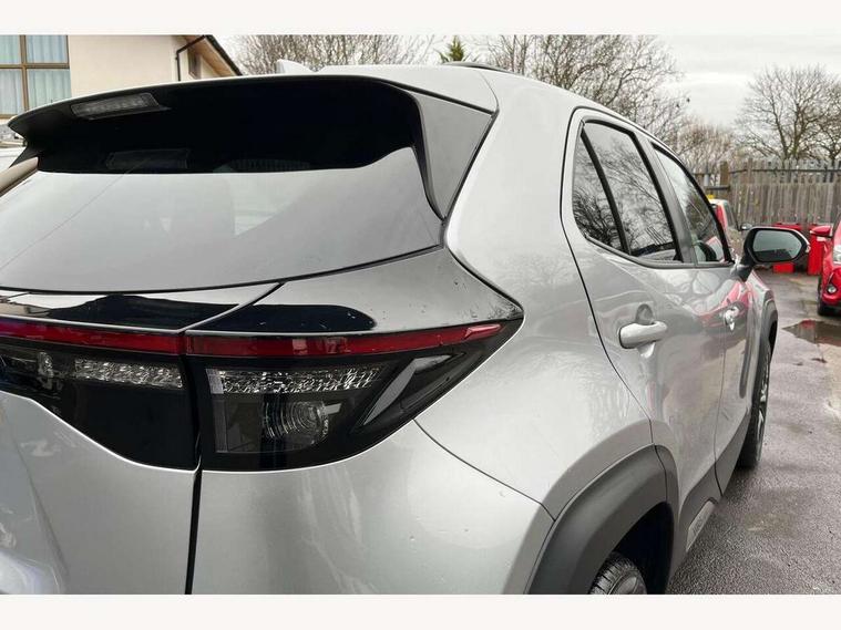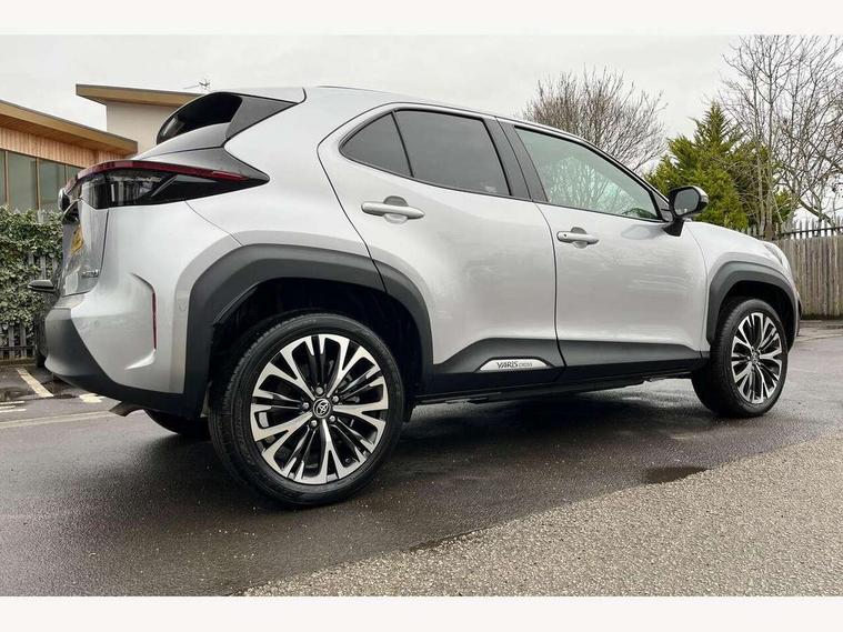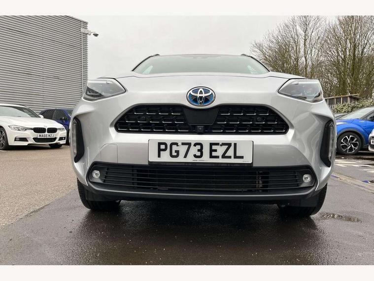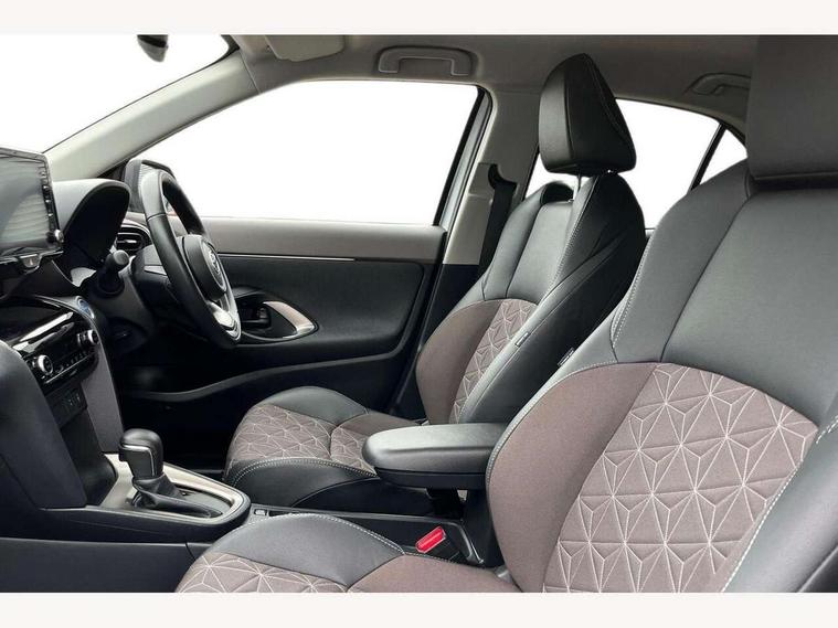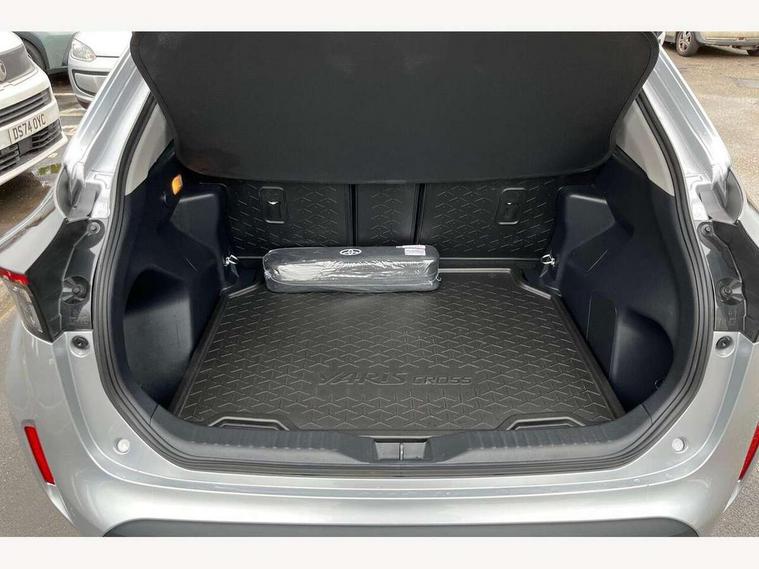 10.5" Multimedia display screen, 10.5" Toyota smart connect+ with navi multimedia system with wireless Smartphone integration incl Apple CarPlay, 360 degree panoramic view monitor, 7" Multi information display screen, Adaptive cruise control, multi info switches on steering wheel, Adjustable speed limiter, Advanced parking assist, Blind spot monitoring, Bluetooth connectivity, Color multi-information display, Digital speedometer, Digital tachometer, Drive mode selector, Driver attention alert system, Dynamic guide lines on reversing camera, eCall emergency system, Electric power steering, Emergency driving stop system, Full range intelligent adaptive cruise control, Hybrid system indicator, Intelligent front and rear parking sensors with clearance sonar and automatic braking, Intersection turn assist, Key reminder warning, Lane change assist, Lane departure warning, Lane trace assist, My T Connected services, Power tailgate, Pre-collision system enhanced with emergency steering assist, Rear cross traffic alert with brake assist, Remote boot door release in cabin, Road sign assist - RSA, Safe exit assist, Telephone switch on steering wheel, Wireless Mobile Phone Charger, Steering assisted vehicle stability control, 6 speakers, DAB Digital radio, Front USB Type-C connector, Front USB-C device charger, 3rd brake light, Acoustic windscreen glass, Anti-jam protection on power windows, Auto dimming rear view mirror, Auto high beam [AHB] with on/off switch, Auto intermittent windscreen wipers, Automatic headlights, Automatic headlights cut-off, Automatically retractable door mirrors, Black door moulding, Black lower front grille, Black protection moulding on side doors, Black roof rails, Black wheel arch mouldings, Body colour door handles, Body colour front bumper, Body colour rear bumper, Electric adjustable heated door mirrors, Follow me home headlights, Front and rear electric windows with auto up/down function, Gloss black upper front grille, Headlight cut off reminder, Indicators integrated on door mirrors, Intermittent rear wiper, Kick activated power back door, LED daytime running lights guide, LED front fog lights, LED front light guide, LED Indicators, LED projector headlights, LED rear lights with sequential indicators, Manual headlight levelling, Meshed shape upper front grille, Noise reduction layer on windscreen, Privacy glass, Rain sensor, Rear side wing doors, Rear spoiler, Rear window defogger, Shark fin antenna, 12v power outlet - front, 12V power point in boot, 2x Rear coat hooks, 3 seat bench in 2nd row, 3 spoke leather steering wheel, 40/60 split deckboard, 40:20:40 split folding rear bench seat, Adjustable rear headrests, Adjustable speed limiter switch on steering wheel, Boot light, Central armrest, Driver and front passenger personal lights, Driver and front passenger Whiplash injury Lesseing seats, Driver and passenger seatback pockets, Dual zone automatic air conditioning, Fabric door trim, Front console box, Front cup holders, Front door pockets, Front head restraints, Front sport seats, Front/rear assist grips, Gear shift indicator, Grey roof lining, Heated driver and passenger seats, Heated steering wheel, Height adjustable driver's seat, Height adjustable front passenger seat, Hooks for luggage holding belts, ISOFIX child restraint system, Lane departure alert switch on steering control, Leather gearshift, LED centre room light, Light on driver and passenger sun visor, Manual telescopic and tilting steering wheel, Mirror on driver and passenger sun visor, Nanoe-X air purifier, Partial synthetic leather upholstery, Pollen air filter, Power adjustable lumbar support on driver seat, Rear cup holders, Rear door pockets, Rear head restraints, Remote air-conditioning system, Single compartment glovebox, Single front passenger seat, Soft tonneau cover, Storage box under boot floor, Voice recognition switch on steering wheel, White ambient lighting in centre console, White ambient lighting in footwell, White ambient lighting on front doors, Yaris cross floor mats, Tech pack - Yaris Cross, 3x3 point rear seat belts, ABS+EBD+Brake assist, Downhill Assist Control (DAC), Driver and passenger central airbags, Driver and passenger front airbags, Driver and passenger side airbags, Electronic parking brake, Emergency brake light system (EBS), Front seat belt reminder, Hill start assist control (HAC), Passenger airbag on/off switch, Pre-collision system with pedestrian and cyclist detection, Rear door child safety locks, Rear passenger side airbags, Rear seat belt reminder, Traction control, Tyre pressure warning system, Immobiliser, Intrusion alarm, Keyless smart entry with push button start, Power door locks, Power passenger window lock, Remote door lock, Gloss black side air vent surrounds, Tyre repair kit,