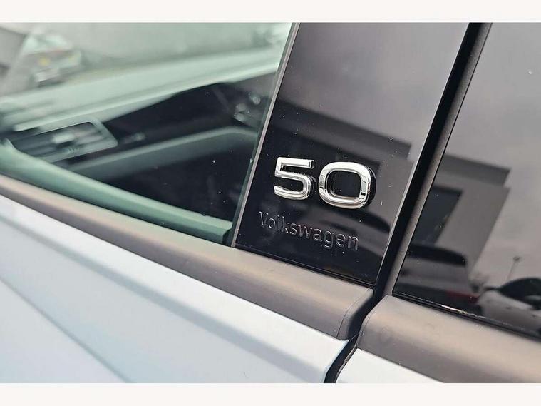 Advanced driver attention and drowsiness monitor, Bluetooth mobile phone interface, Cruise control + speed limiter, Digital Cockpit Pro with 10.25" Display, Driving mode selection, Dynamic road sign display, Emergency call service, Mobile phone preparation with inductive charging function, Multifunction camera, Park distance control, Power assisted speed sensitive steering, Preparation for navigation system with media and internet package, Preparation for We connect and We connect plus, Rear view camera, Speedo and rev counter, electronic odometer, trip, service interval display and exterior temperature gauge, Standard rear axle, Travel Assist - Lane keeping system and traffic jam assist, Trip computer, Warning signal and warning light for front and rear seatbelts not fastened, Washer fluid level indicator, Wireless app connect, Front wheel drive, Rear shock absorpion, Start-stop system with battery regeneration (recuperation - energy recovery during braking), DAB Digital radio, Diversity antenna for FM reception, Automatic dimming interior rear view mirror, Automatic headlight control with LED separate daytime running lights with coming/leaving home function, Body colour bumpers with chrome inserts, Body colour door handles, Edition 50 on scuff plates in door apertures, Electric front windows, Electric panoramic sunroof with glass sliding and tilting, Engine badge deletion, Heat insulating and laminated safety glass windshield, Power folding adjustable/heated exterior mirrors and front passenger exterior mirror lowering function, Rain sensor, Rear electric windows, Rear fog light, Rear side wing doors, Rear tinted glass from B-pillar backwards approx 65% tinted, Rear windscreen washer and wiper with interval delay, Third brake light, 12V power socket in centre console, 2 front and 2 rear reading lights with switch off delay and dimmer, 2 USB-C ports in the front, 2 USB-C charging sockets on the center console in the rear, 3 rear head restraints, 50 on steering wheel, 60/40 split folding rear seat and rear seat bench not split, Air care climatronic air conditoning system with active combination filter and 2-zone temperature control, Carpet mats, front and rear, Ceramique roof lining, Chrome plated radiator grille inserts, air vent surrounds and light switch surrounds, Door and side trim panel, Driver and front passenger seat height adjustment, Driver/passenger sunvisors with illuminated vanity mirrors, Front centre armrest, Front seat backrest storage pockets, Handbrake lever handle in leather, Headliner in recycled material, Isofix child seat preparation easy-fit (for two outer rear seats, and front passenger seat) compatible with I-size, Leather trimmed gear knob, Luggage compartment cover, Luggage compartment lighting, Lumbar adjustment for front seats, Removable luggage compartment floor, Single front passenger seat, Sports Edition 50 comfort seats in front, Standard pedal cluster, Three spoke leather wrapped multifunction steering wheel, Tracks cloth upholstery, Driver's assistance pack - Polo, IQ LED matrix headlights pack - Polo, Light and vision pack - Polo, 3 point height adj front seatbelts + pretensioners, 3x3 point rear seatbelts, ABS, Driver and front passenger airbag with front passenger airbag deactivation, Drivers and front passengers safety optimised head restraints, ESC (Electronic stability control) + EDL (Electronic Differntial lock) and ASR (Traction control), Extended and predictive pedestrian/ cyclist protection, Front assist with autonomous emergency braking (for Adaptive Cruise Control ACC up to 130 mph), Front curtain and side airbags with center airbag, Front disc brakes, Hill hold control, Manual child lock in rear doors, Rear drum brakes, Single tone horn, Tyre pressure loss indicator, Alarm with interior protection, Anti-theft alarm system with interior monitoring, backup horn, and towing protection, Anti-theft wheel bolts, Electronic engine immobiliser, Keyless locking and starting system keyless access with safelock, Low rolling resistance tyres,