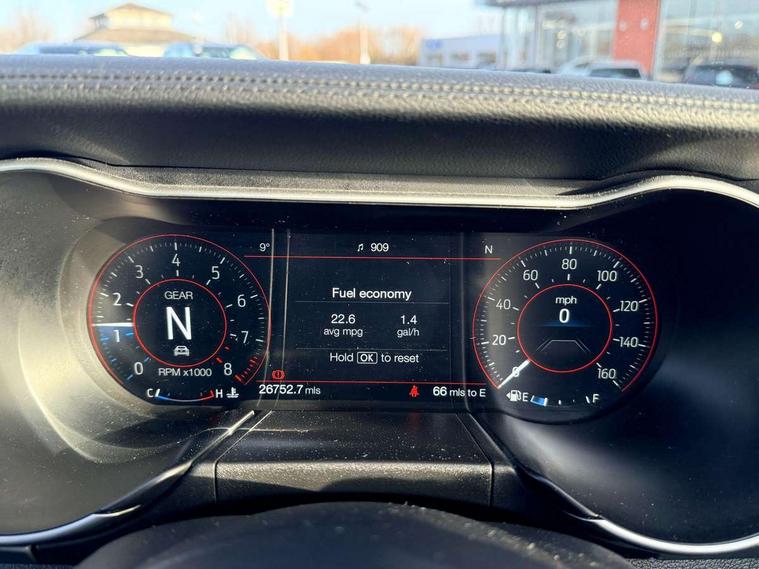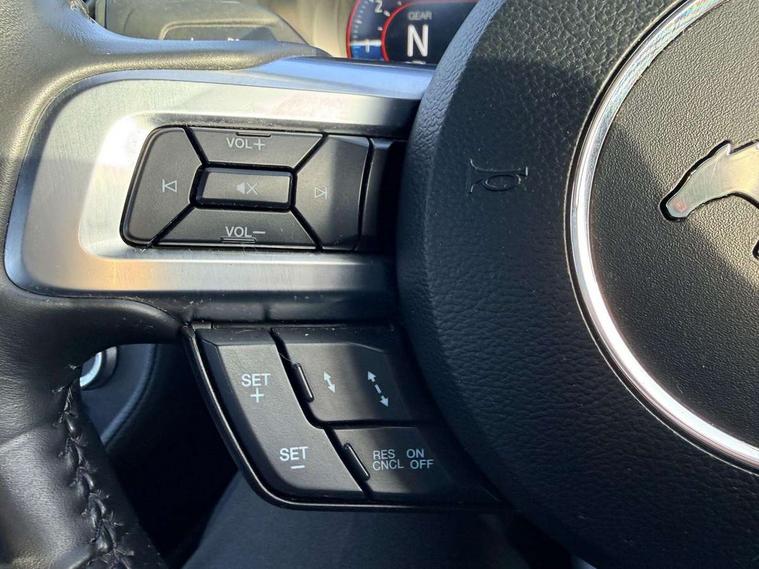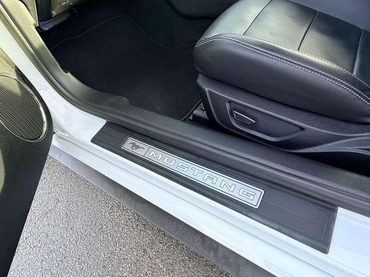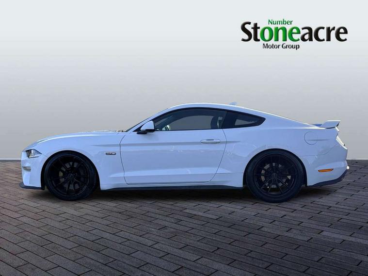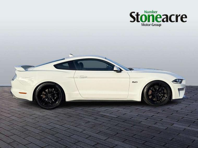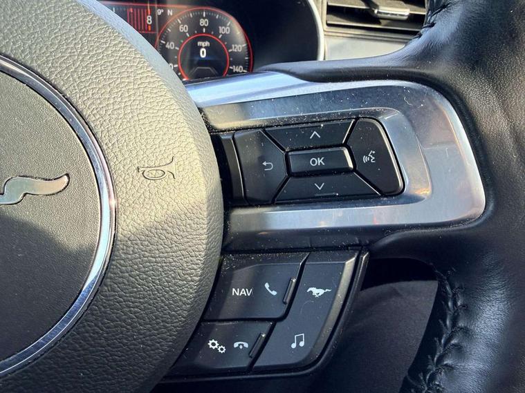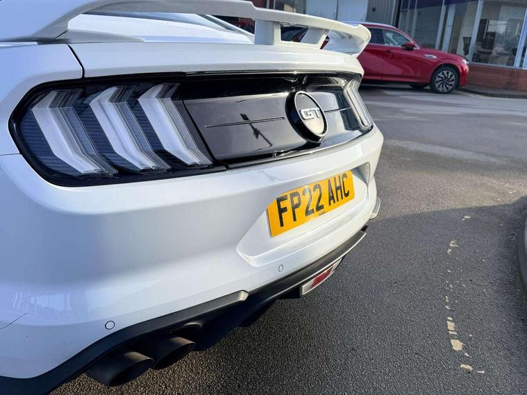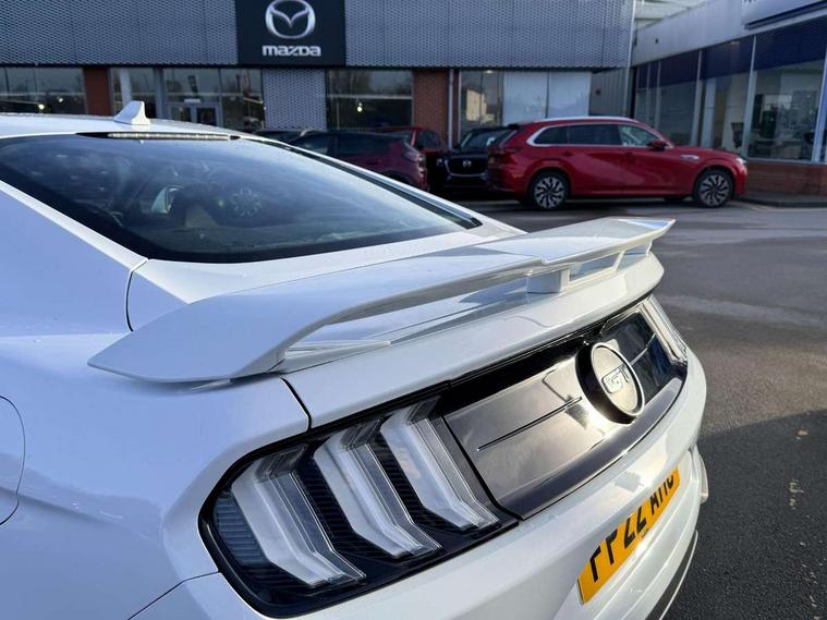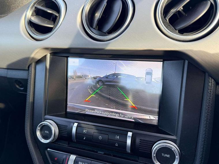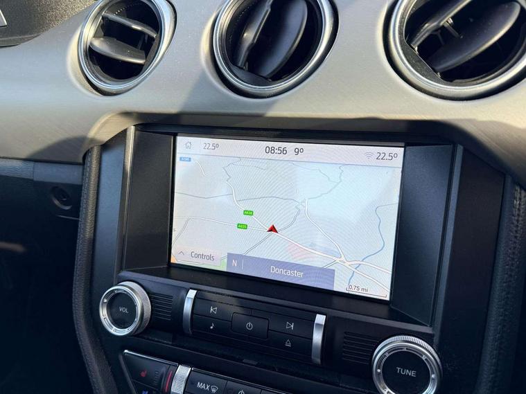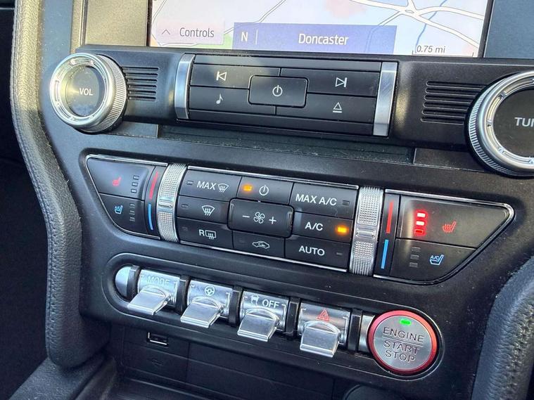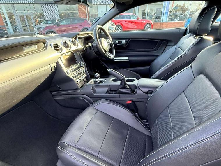 12" digital LCD instrument cluster, Adaptive cruise control, Apple car play/Android Auto, Bluetooth connectivity with voice control, Electric power steering, Ford pass connect embedded modem, Ford SYNC 3 with 8" colour touch screen, Lane departure warning with lane keeping aid, Oil pressure gauge, Rear view camera with rear parking sensors, Selectable driving modes - normal, mymode, snow/wet, sport+, track and drag mode, Service interval indicator, SYNC Emergency Assistance, Track apps with accelerometer technology, Trip computer, Adaptive damping system, Fully independent front and rear suspension, Launch control, Limited slip differential, DAB Digital radio, USB connection, 5.0 Exterior badge on front wings, Active exhaust system with quad tailpipes, Auto dimming rear view mirror, Auto high beam, Automatic headlights, Automatic rain sensing wipers, Bi-Xenon headlights, Body colour bumpers, Body colour door mirrors, Bonnet air intake, Electric front windows, GT exterior badge on bootlid, GT front grille with vertical power bars, LED headlamps with daytime running lights and LED fog lamps, Magnetic blade decklid rear spoiler, Power folding door mirrors with Mustang logo projection puddle lamps, 6 way power adjustable front seats and driver seat power lumbar adjust, Ambient lighting, Cup holders, Dual electronic automatic temperature control, Front headrests, Heated steering wheel, Illuminated entry system, Individually folding rear seats, Isofix system on outer rear seats, Leather gearknob, Leather multifunction steering wheel, Leather upholstery, Reach and rake adjustable leather steering wheel with integrated controls, Rear head restraints, 4 seatbelts, ABS, Drivers knee airbag, Dual front airbags, Electronic Line Lock, Electronic Stability Control (ESC) with three settings, ESP, Front side airbags, Performance brake system with brembo 6 piston front callipers and electronic brake prefill, Pre collision assist system, Side curtain airbags, Tyre pressure monitor, Ford key free system with power starter button and keyless entry, Immobiliser, MyKey system, Thatcham Cat.1 alarm, Tyre repair kit,