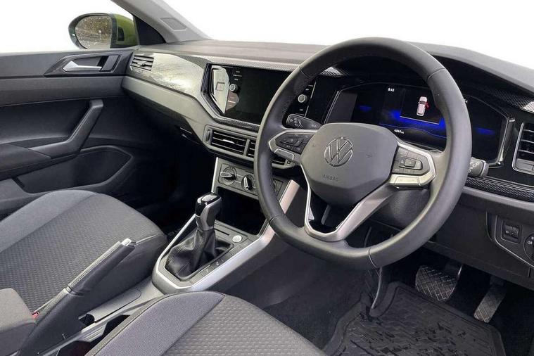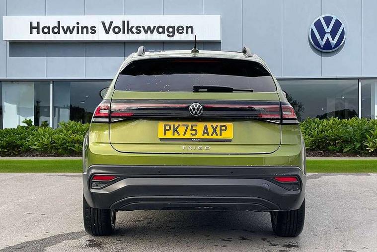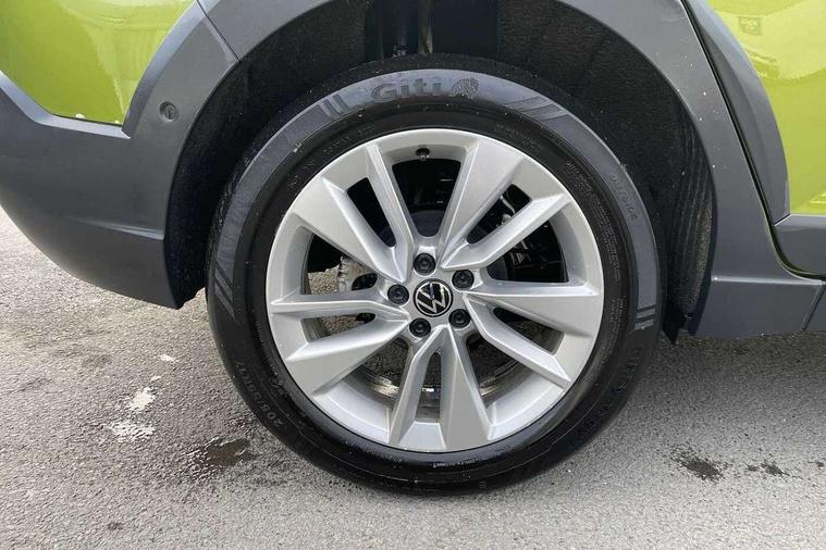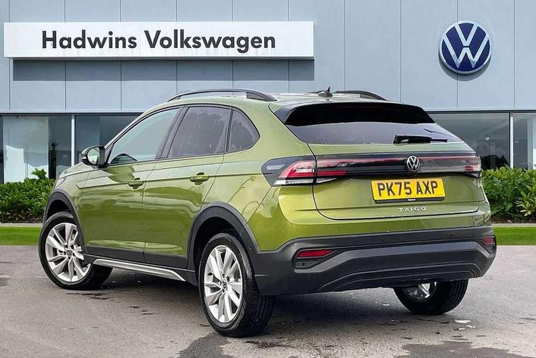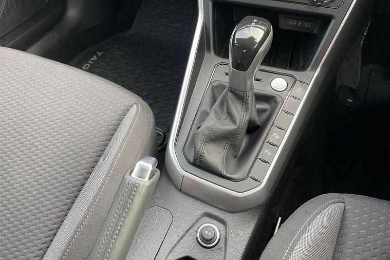8" Digital cockpit basic display, Adaptive cruise control, Advanced driver attention and drowsiness monitor, Dynamic road sign display, e-Call (emergency call), Power Steering, Rear view camera, Travel assist including emergency assist, Washer fluid level indicator, Wireless Charging including Bluetooth, Start-stop system with battery regeneration (recuperation - energy recovery during braking), Digital radio reception (DAB+), WeConnect plus, Ambient lighting with logo projection, Aspherical driver's exterior mirror, Body coloured bumpers, Body coloured exterior mirror housings and door handles, Electric windows, External USB type C socket and charging sockets, Heat insulating glass windscreen, LED rear combination lamp, LED third brake light, Left convex exterior mirror, Power folding adjustable/heated exterior mirrors and front passenger exterior mirror lowering function, Rear fog light on one side, reversing light on both sides, Rear side wing doors, Rear wash/wipe with intermittent wipe setting, Side windows in heat-insulating glass, from B-pillar and rear window dark tinted, 'Slash/ Austin' Cloth upholstery, 12V socket in centre console, 2 front reading lights, 3 rear head restraints, 3 seat bench in 2nd row, Black carpets, Ceramique headliner, Child seat anchor for child seat system i-Size, 2x top tether and child seat anchor in front on front passenger side, Door and side trim panels in titan black, Driver and front passenger seat height adjustment, Front centre armrest, Handbrake lever handle in leather, Height and reach adjustable steering wheel, Leather trimmed gear knob, Leather wrapped multifunction steering wheel with paddle shift, Luggage compartment floor, Luggage compartment light, Lumbar support for driver's and front passengers seat, Seat covers in titanium black, Single front passenger seat, Split folding backrest with centre armrest and unsplit rear seat bench, Storage compartment under front seats, Sun visors with illuminated vanity mirrors, Titanium black instrument panel, Chrome Package - Taigo, Drivers assistance package - Taigo, Light and sight pack - Taigo, 2 x 3-point seatbelts/outer rear seats with ECE label, 3-point seat belts in front with pretensioner and height adjustment, 3-point seatbelt for centre rear seat, Driver and front passenger airbag with front passenger airbag deactivation, Driver and front passenger safety-optimised head restraints, Electronic stability control, Extended and predictive pedestrian/ cyclist protection, Front and rear disc brakes, Front curtain and side airbags with center airbag, Hill start assist, Manual rear child locks, Single tone horn, Tyre pressure loss indicator, Anti-theft alarm system with interior monitoring, backup horn, and towing protection, Keyless locking and starting system keyless access with safelock, Black (slush) Dashboard, Lava stone black gloss/matt decorative inserts in dash and front door panels, Low rolling resistance tyres,
