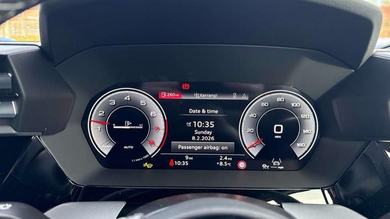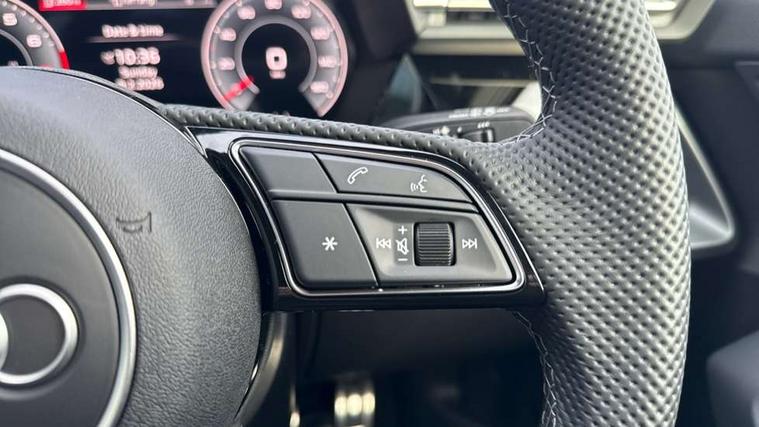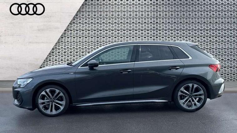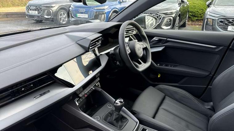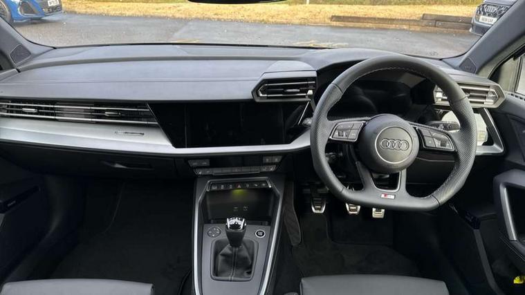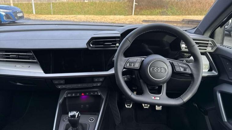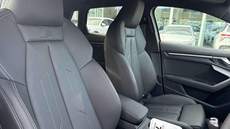 Adaptive cruise control (ACC), Adjustable speed limiter, Audi drive select (Auto, Comfort, Dynamic, Efficiency and Individual), Audi virtual cockpit plus - 12.3" full HD resolution dynamic digital instrument cluster, Automatic start/stop system with recuperation, Bluetooth interface, Camera based traffic sign recognition, Collision avoidance assistant, Driver attention and fatigue detection, e-Call (emergency call), Electromechanical power speed sensitive steering, Intersection assist, Lane departure warning system, MMI Navigation Plus with high resolution 10.1" colour touch screen display, Park Assist with parking system Plus, Reversing camera, Service indicator, Smartphone interface with app store includes wireless Apple carplay, Android auto and Amazon alexa integration, Trip computer, Voice control system with natural language interaction, Sports suspension, Audi Phonebox light with wireless charging, Audi sound system - 10 loudspeakers including centre loudspeaker and subwoofer, DAB Digital radio, USB ports with charging function in the rear, Acoustic glass windscreen, All weather light, Aluminium window trim, Auto dimming frameless rear view mirror, Automatic dynamic range control, Body colour exterior mirrors, Dipped beam, main beam, position light and turning light, Electrically adjustable/heated/folding/auto dimming door mirrors with integrated LED indications + kerb view function for passenger side, Exterior model badging, Front and rear side air inlets in grained matt black with dark liquid chrome frame, Front electric windows, Front radiator grill in high gloss dark chrome, Heat insulating glass windscreen, Illuminated door sills with aluminium inserts at the front with S logo, Intersection light, Invisible tailpipe, LED 3rd brake light, LED brake lights, LED daytime running x3, LED headlights with LED rear lights and dynamic rear indicators, LED rear number plate lights, LED reverse light, LED tail lights, Light and rain sensors, Manoeuvring light, Motorway light, Privacy glass - dark tinted rear window, rear door and side windows, Rear diffuser and grill in grained matt black with inlay in dark liquid chrome, Rear electric windows, Rear side wing doors, Rear wiper, S line bumpers, S roof spoiler, Side S line emblems on front wings, Side sill trim in dark liquid chrome, Static cornering light, 12V socket and storage compartment in front centre console, 3 seat bench in 2nd row, 3 spoke flat bottomed multi-function leather sport steering wheel, 3-zone deluxe automatic air conditioning, 4 way electrically adjustable lumbar support for driver and front passenger, 40/20/40 split folding rear seat bench, Black cloth headlining, Black front and rear floor mats, Front and rear centre armrest in artificial leather with contrasting stitching on armrests and instrument panel, Front and rear headrests, Heated front seats, Height and reach adjustable steering wheel, i-Size child seat mounting on the front passenger side and outer rear seats, i-Size and top tether on the outer rear seats, Manual boot compartment lid, Manually adjustable front seats, Rear centre armrest with cupholder, S badging on the steering wheel, Seat side bolsters, Single front passenger seat, Stainless steel pedals and front footrest in black, Twin leather upholstery with front sports seats S embossed logo, Aluminium interior elements pack - A3, Multi-coloured LED interior lighting package with Multi-coloured contour lighting of instrument panel - A3, 3x3 point rear seat belts, Driver and front passenger airbag with passenger airbag deactivation, Electronic Stabilisation Control (ESC) including ABS, ASR and EDL, First aid kit with warning triangle and 2 safety vests, Front side airbags with head airbags and interaction airbag, Hill hold assist, Pre-sense front with pedestrian and cyclist detection, Seatbelt monitoring, Tyre pressure loss indicator, Anti theft alarm, Anti-theft wheel bolts, Electronically operated child locks, Immobiliser, Black dashboard, Inlay in dark aluminium spectrum,