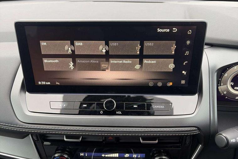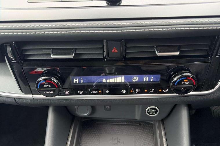 2 front USB-C ports, 2 rear USB-C ports, 360 degree Intelligent around view monitor with moving object detection, Blind spot warning, Drive assist, Drive assist custom mode, Drive modes (sport, normal, eco), Driver drowsiness and attention warning, Electric speed sensitive power steering, Emergency and breakdown call, Emergency lane keep assist, Emergency Stop Signal (ESS), Engine start/stop button, Event data recorder, Front and rear parking sensors, Full Digital 12.3" TFT Digital Combimeter, Google virtual personal assistance, Idle stop/start system, In-car WIFI hotspot, Intelligent Cruise control (ICC), Intelligent driver alert system, Intelligent forward collision warning, Intelligent lane intervention, Intelligent speed assist, Lane departure warning system, Maximum speed limiter, Nissan connect 12.3 inch touchscreen infotainment system, Nissan connect navigation with google maps, Nissan connect services 2.0 (Google Automotive System), Outside temperature sensor, Rear cross traffic alert, Remote control services - door locks, lights, horn and car locator, Reversing detection, Traffic sign recognition with legal speed adjustment, Trip computer, Wireless Apple CarPlay/Android Auto, Wireless charging pad, Limited slip differential, 6 speakers, AM/FM audio system with DAB, Bluetooth audio streaming, Auto dimming frameless rear view mirror, Auto rear wiper when reversing, Body colour mirror caps, Body coloured door handles, Bodyside mouldings, Chrome side window finisher, Electric auto folding door mirrors, Electrically adjustable and heated door mirrors with LED turn indicator, Follow me home headlights, High beam assist, Intelligent auto headlights, LED 3rd brake light, LED daytime running lights, LED Headlights, LED rear lights, One touch front and rear electric windows with remote opening and closing, One touch passenger window, Partially body coloured bumpers, Rain sensing wipers, Rear privacy glass, Rear roof spoiler, Rear side wing doors, Rear styling plate, Shark fin antenna, Silver roof rails, Splash free rain sensing wipers, Super UV and infrared cut glass, Three blink turn signal, 12v power socket in dashboard and luggage, 3 bench rear seats in 2nd row, 3 rear headrests, 60/40 split folding rear seat bench, Chrome interior door handles, Cloth upholstery, Driver and passenger sunvisors with illuminated vanity mirrors, Driver seat back pocket, Dual zone automatic climate control with pollen filter, Electrically adjustable lumbar support for driver, Front centre console and armrest, Front cupholders, Front door with bottle holders, Height adjustable driver seat, Height adjustable front headrests, Height adjustable passenger seat, Leather shift knob, Luggage board system, Luggage space lighting, Multifunction steering wheel, Passenger seat back pocket, Rear door bottle holders, Rear seat armrest with 2 cupholders, RGB ambient light (Full area coverage), Single front passenger seat, Smooth leather steering wheel, Tilt/telescopic adjustable steering wheel, Two rear isofix child seat anchorage points with top tether, 3x3 point rear seatbelt pretensioners + load limiters, ABS with EBD and brake assist, Autonomous emergency braking, Child locks on rear doors, Curtain and front side, far side airbags, Driver and passenger airbags, Driver, passenger and 2nd row rear seat belt reminder, Electric handbrake with auto hold function, Front seatbelt pretensioners + load limiters, Height adjustable front seatbelts, Hill start assist, Intelligent blind spot intervention, intelligent front emergency braking, Intelligent rear automatic braking, Tyre pressure monitoring system, Vehicle dynamic control, Engine immobiliser, Intelligent key with walk away lock and approach unlock functions, Remote central door locking with deadlocking, Thatcham alarm, 18" Diamond cut alloy wheels, Tyre puncture repair kit,