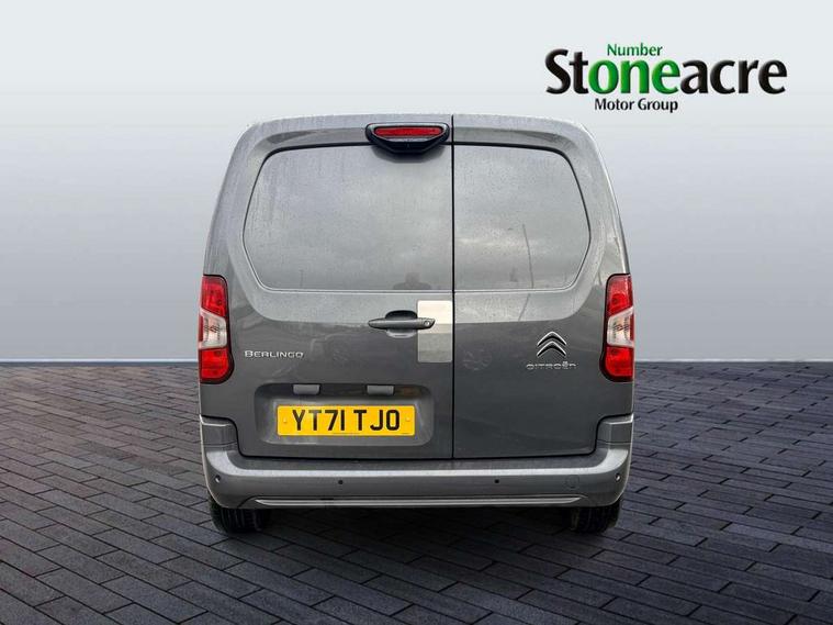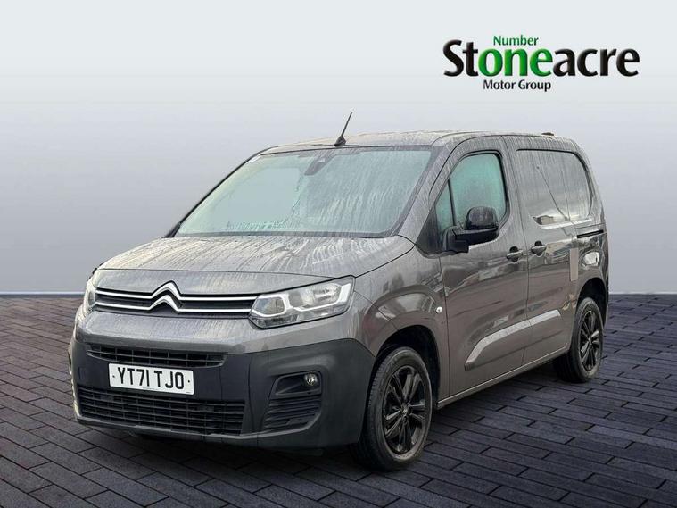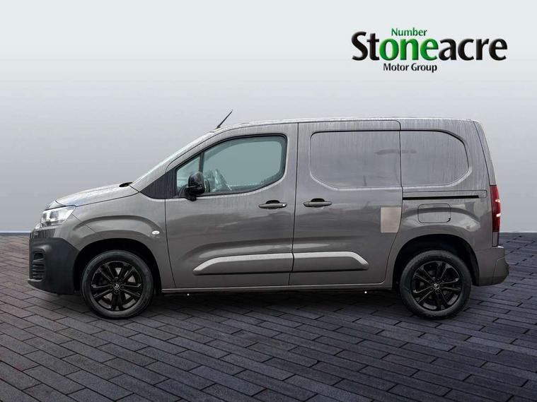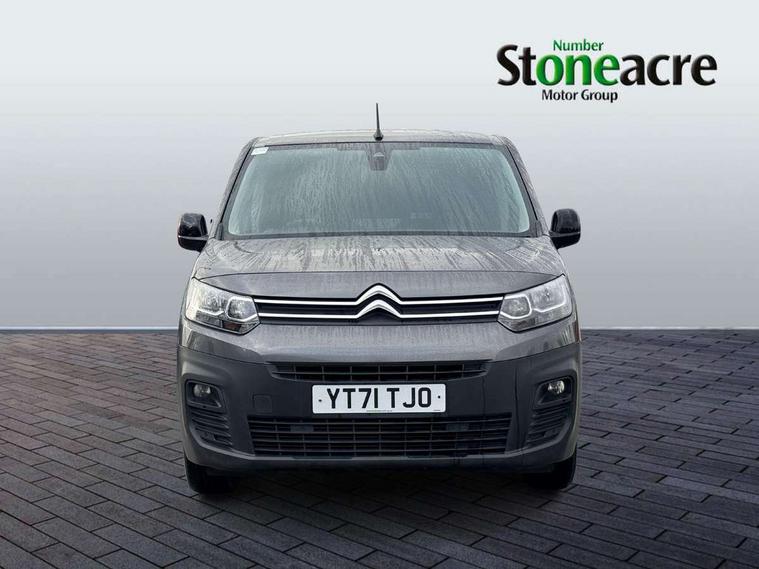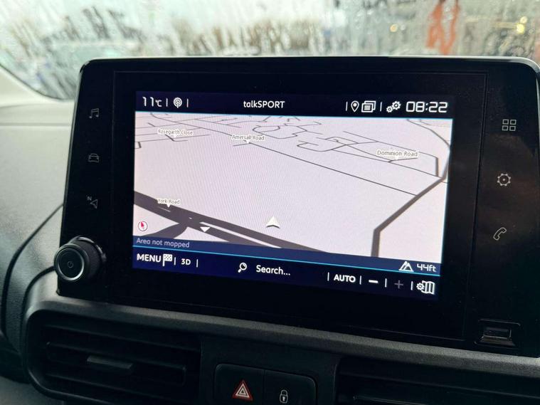 Citroen connect box with emergency and assistance system, Citroen connect navigation with 8" colour touchscreen, DAB radio, bluetooth with handsfree, USB socket and Aux-in jack, Cruise control with programmable speed limiter, Electric power assisted steering with height and reach adjustable steering wheel, Lockable fuel cap, Multi-function trip computer, Rev counter with maintenance and gear efficiency indicators (GEI), Surround Rear Vision - Front and rear parking sensors with passenger side and rear camera providing tri-function visibility via 5" screen, Tyre pressure monitor, Apple Carplay/Android Auto, 180 degree opening unglazed asymmetric rear doors, Acoustic laminated windscreen with sound insulating front windows, Additional acoustic insulation providing benchmark cabin refinement, Electric front windows with one touch operation, Electrically adjustable door mirrors, Electrically folding door mirrors with temperature sensor, Front fog lights, High level third brake light, Nearside side sliding door, Visible VIN at windscreen base, 12 volt socket in dashboard, 6 floor mounted load securing rings, 6 way adjustable driver seat with lumbar support and under seat storage, Comfort driver's seat, Cup holders for driver and passenger on either side of the dashboard, Curitiba cloth upholstery, Extenso modular fold front passenger 2 seat bench - pivot writing table, storage under central seat, load through hatch bulkhead, load protect cover, Front door pockets with 1.5L bottle holder, Hard plastic floor protection in cabin, Multi function steering wheel, Overhead storage shelf in cabin, Topbox storage compartment, Look pack with body coloured door mirrors - Berlingo, Visibility pack with Magic wash - Berlingo, Automatic activation of hazard warning lights on major deceleration, Door opening warning and audible lights on warning, Driver seatbelt unfastened warning, Driver's airbag, Dashboard mounted central locking push button and auto locking above 7mph, Perimetric and volumetric thatcham category 1 approved alarm with tilt sensor, Remote central locking with deadlocking, selective cab and load area locking via 3 button plip remote control key, Thatcham approved rolling code transponder immobiliser, Automatic electronic parking brake, Electronic Stability Control and ABS with hill start assist, EBA and EBFD, 16" Starlit alloy wheels, Full size steel spare wheel,