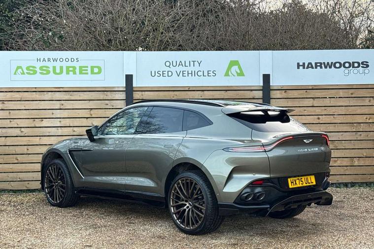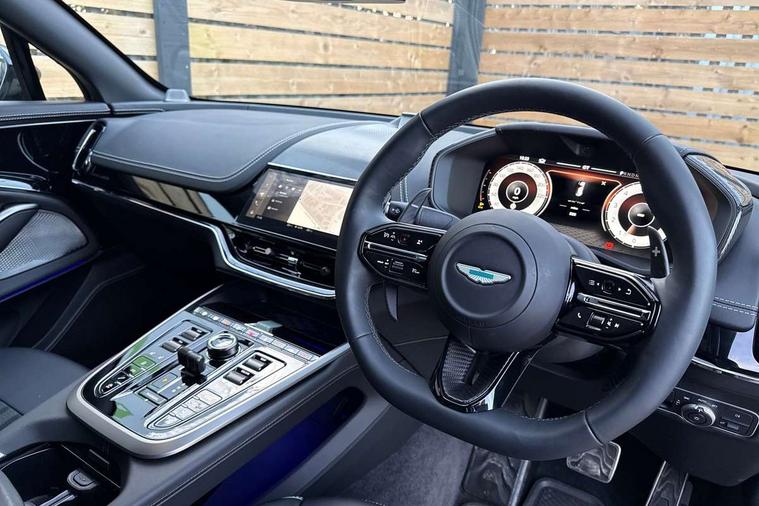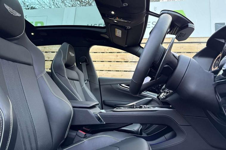 10.25" TFT centre display, 12.3" TFT instrument display, 360 degree view camera, Adaptive cruise control, Apple car play/Android Auto, Aston martin designer key, Blind spot monitoring, Bluetooth telephone connectivity, Brake pad wear indicator, Drive modes Terrain, Individual, GT, Sport, Sport + including launch control, eCall emergency call system, Electric power assisted steering (EPAS), Forward collision warning, Front parking aid with visual indicator, Inductive phone charger, Infotainment touchpad and dial, Lane change warning, Lane departure warning system (LDW), Lane keep assist, Outside temperature display, Park assist system, Rear crossing traffic warning, Rear parking aid with visual indicator, Rotary dials, Rotary infotainment system interface, Satellite navigation system, SOS emergency call button, Speed limiter, Standard underbonnet, Stop/start system, Traffic sign recognition, Voice control system, 9 speed automatic transmission, Active centre transfer case, Adaptive triple chamber air suspension, All Wheel Drive (AWD), Battery conditioning connector, Electric active roll control, Electric limited slip rear differential, Electronic adaptive damping system, AM/FM radio, Bluetooth audio streaming, Bowers and Wilkins audio system, DAB Digital radio, SD card slot, USB port, Acoustic laminated front windows, Active rear brake lights, Approach Illumination, Auto dimming interior rear view mirror, Automatic headlights, Automatic high beam - AHB, Bi LED headlights, Body colour hood, Body colour side vent, Carbon fibre rear wing lip spoiler, Electric windows, Fixed panoramic glass sunroof, Heat insulating glass, Heated rear window, Horizontal DRL/turn indicator design with larger air intakes and brake cooling grilles, LED centre high mounted stop light, LED daytime running lights, LED rear fog light, Matte black mesh bonnet vents, Power foldback door mirrors, Rain sensing windscreen wipers, Rear bumper design with integrated quarter panel vents, Rear side wing doors, Rear wiper, Sport exhaust, Standard paint protection film, 12V power sockets, 16 way electric front seats with memory, 3 seat bench in 2nd row, 40:20:40 split folding rear seats, Ambient lighting, Anodised aluminium sill plaques with aston martin wings, Automatic climate control, Black loadspace carpet, Courtesy Light, Front and rear door pockets, Front centre console storage cover, Front head restraints, Gloss black double layer side sills, Glovebox with electric locking, Heated seats, Isofix/I size rear outer, Load rails in load space, Load tie downs in load space, Lower front console storage, Map pocket on front seat storage, Monotone sport leather steering wheel, Rear head restraints, Single front passenger seat, Soft close doors, Sports plus seats, Stainless steel sill protector in load space, Twin cupholders in front and rear, Twin front centre armrest, Twin sunvisors with illuminated vanity mirrors, Satin silver interior jewellery pack - DBX, 3x3 point rear seatbelts, Airbags - Driver and front passenger and knee, Anti theft locking wheel bolts, Anti-lock braking system (ABS), Auto vehicle hold function, Autonomous emergency braking, Carbon ceramic disc brakes, Door exit warning, EBD - Electronic brakeforce distribution, Electric parking brake (EPB), Emergency brake assist, ESC (Electronic Stability Control), Front thorax airbags/Side curtain airbags, HDC - Hill descent control, High performance braking system, Hill start assist, Intelligent wet brake control, Rear child proof door locks, Rear thorax airbags, RSC - Roll stability control, Seatbelt pre-tensioners, Seatbelt status indicator, Torque vectoring brake, Traction control, Tyre pressure monitoring system, Warning triangle, Alarm/immobiliser, Keyless entry, Remote central locking, Stolen vehicle tracker, Brogue detailing, Piano black wood veneer trim, Seat perforaton elegant, Seat quilting elegant,