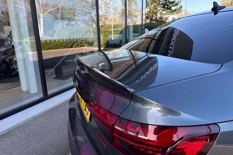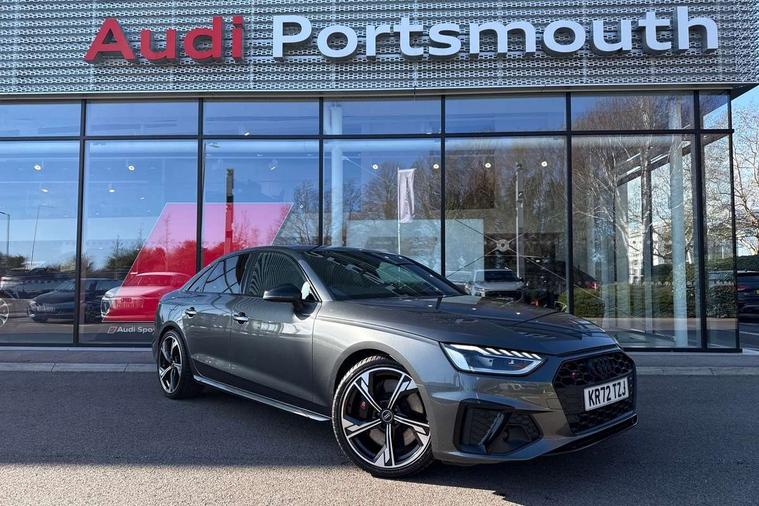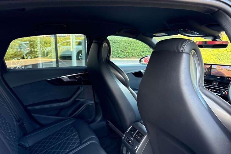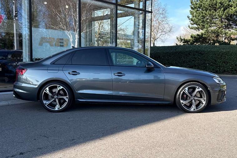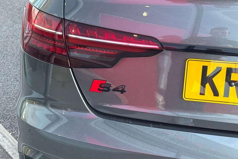 Audi connect safety and service (e-call), Audi connect with Amazon Alexa Integration, Audi drive select, Audi smartphone interface, Audi virtual cockpit, Automatic start-stop system with coasting functionality and efficiency programme, Bluetooth interface, Electric boot lid release, Electromechanical power steering, Email, calendar and text messages displayed via MMI, MMI Navigation plus with MMI touch includes 10.1" high resolution colour MMI display, 3D map, S instrument dials, Voice control system, 58 Litre fuel tank, S sports suspension, 2 USB charging ports, Audi sound system with 10 loudspeakers, DAB digital radio reception, Audi Beam uses LEDs to project the Audi logo, Audi rings and model badging in black, Auto dimming rear view mirror, Body colour door handles, Body colour front spoiler lip, Body colour side sill trim, Electrically folding auto dimming/adjustable/heated door mirrors with LED side indicators and kerb view function for passenger side, Front and rear bumpers with side skirts, High beam assistant, High gloss black B pillar trims and triangular rear door trim, LED headlights with LED rear lights + dynamic rear indicators + headlight adjustment and high beam, turning light + LED daytime running lights, LED third brake light, Privacy glass, Rain and light sensors, Rear boot, Rear side wing doors, S Line badges on the front wings, S rear diffuser in twilight grey matt and honeycomb grille in black, S specific dual branch chrome tailpipes with twin oval pipes on left and right, S specific side air inlets in titan black with chrome inlays in unique S design, S Style rear spoiler, Variable intermittent front wash/wipe, Windscreen with acoustic glazing, 40/20/40 split folding 3 rear seat bench in 3 parts with rear centre armrest, Black cloth headlining, Black leather gear lever knob, Contrast stitching on seats, steering wheel and gear lever gaiter, Deluxe 3 zone electronic climate control, Door sill trims with aluminium inlay, Electrically adjustable front seats, Fine nappa leather upholstery with S embossed logo + super sports seats, Front and rear head restraints, Front centre armrest, Gear lever with diamond S badge, Heated front seats, Illuminated door sill trims with S logo, ISOFIX child seat mounting and top tether, Key with S logo, Pneumatically adjustable lumbar support with massage function, Single front passenger seat, Stainless steel pedals and foot rest, Tool kit, Black styling pack - A4 Saloon Sport Edition/S4 Black edition/S4 Vorsprung, Extended leather pack - A4/S4, LED Interior light pack - A4/S4, 3 rear seatbelts, 6 airbags - Driver, front passenger, curtain and side windows, Electronic Stabilisation Control (ESC) including ABS, ASR and EDL, Front brake calipers painted in black with S4 logo, Hill hold assist, Multi collision brake assist, Pop-up bonnet for pedestrian protection, Pre sense city, Rear door child safety locks, S model enhanced braking system, Seatbelt monitoring, Warning triangle and first aid kit, Anti theft alarm, Anti theft wheel bolts, Central locking, Keyless Go, Tyre repair kit,