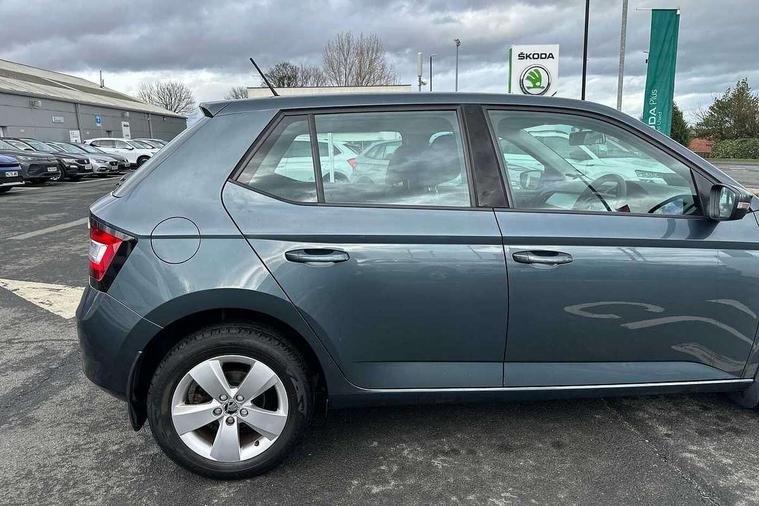 Bluetooth system, Exterior temperature gauge, Front assistant collision mitigation, Multi function trip computer, PAS, Service interval indicator, SmartLink, 6.5" touchscreen, Auxiliary socket for external MP3 player, Bolero Radio, DAB Digital radio, SD card slot, USB interface, Body colour bumpers, Body colour door handles, Chrome grille surround, Electric front windows, Electrically adjustable and heated door mirrors, Heated rear window, Height adjustable headlamps, Intermittent rear wash/wipe, Tinted rear windows, Tinted windscreen, 1.5L bottle holder in front door panels, 2 height adjustable rear headrests, 60/40 split folding rear seat, Boot stowage box, Cargo area storage tray, Driver + passenger vanity mirrors, Folding grab handles, Front reading lights, Height adjustable driver's seat, Height adjustable front headrests, Height adjustable passenger seat, Height/reach adjust steering wheel, Interior light with delay, Leather gearshift, Leather handbrake, Lower glovebox cover, Luggage load hooks, Parcel shelf, Pollen filter, Rear courtesy light, Rear storage trays, Ticket holder, Two rear outer seat isofix location points, Umbrella under front passenger seat, Arkamys surround sound pack - Fabia, Chrome Pack - Fabia, 3x3 point rear seatbelts, ABS, Curtain airbags, Driver and passenger airbags, Driver and passenger side airbags, EDS, ESC with ASR, Front seatbelt pretensioners, Hill hold control, Hydraulic Brake Assist (HBA), Motor Slip Regulation (MSR) - Engine Drag Torque Control, Passenger airbag deactivate switch, Seatbelt warning, Tyre pressure monitor, Alarm with interior monitoring, Immobiliser, Locking wheel bolts, Remote central locking,