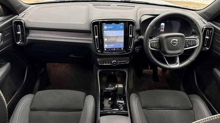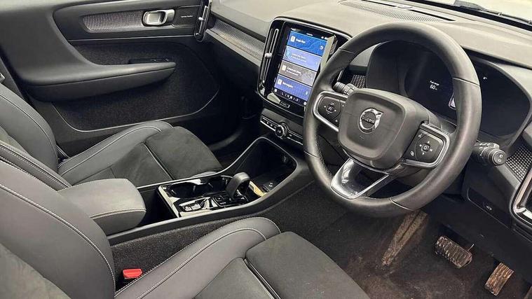 12.3" Progressive Driver Display, 360 degree surround view parking camera with side proximity sensors, 9" centre console portrait touch screen, Adjustable steering wheel force, Bluetooth hands free telephone kit, E-call, Front park assist, Google automatic services - Nav with google maps, apple carplay/android auto, voice recognition with google assistant, Hands free power tailgate, Lane keep assist with driver alert control, Oncoming Lane Mitigation, Rear park assist, Speed limiter, Speed sensitive steering, Wireless/Inductive Mobile Phone Charging, Dynamic chassis, DAB Digital radio, Premium Sound by Harman Kardon, Dolby Pro Logic II Surround Sound, Dirac Unison, 12 speakers/600W and subwoofer, Steering wheel mounted remote controls, Active bending pixel LED headlights with adaptive shadow technology, Active high beam incorporating daytime running lights, Adaptive brake lights with high level LED brake lights, Auto dimming interior mirror, Automatic headlamp levelling, Dark tinted windows for rear door side windows and cargo compartment, Front aluminium tread plates, Front and rear electric windows, Headlight cleaning system, High gloss black front and rear skid plate, High gloss black mesh front grille with high gloss black surround, High gloss black window trim, Home safe and approach lighting, Integrated roof rails in high gloss black, LED front fog lights, Power glass tilt and slide panoramic sunroof with sun curtain, Puddle lights, Rain sensor with automatic windscreen wiper activation, Rear side wing doors, Rear wiper, Roof antenna, Roof spoiler, Visible VIN plate, 12V socket in front tunnel console and luggage compartment, 2-Zone electronic climate control with CleanZone air quality system and pollen filter, 3 seat bench in 2nd row, 3 Spoke tailored steering wheel with chrome trim, 60/40 versatile split folding rear seat, A-pillar parking ticket holder, Ambient front door and instrumental panel lighting, Centre console cupholders and storage, Flexible load floor and grocery bag holder, Floor mats, Front door pocket and front cupholder illumination, Front footwell illumination, Front headrests, Front reading light and theatre lighting, Front seat cushion extensions, Front tunnel pocket, Glovebox bag hook, Heated front seats, Height adjustable passenger seat, Height/reach adjustable steering column, High gloss centre tunnel deco, Illuminated glovebox, Illuminated luggage compartment, Illuminated tailgate, Illuminated vanity mirrors, Integrated waste bin, Isofix attachments on outer rear seats, Load protection net, Multi directional lumbar support, Power driver seat with memory + exterior mirrors memory, Power folding rear headrests, Power passenger seat, Rear armrest / integral cup holders / storage tray, Rear reading and courtesy lights, Single front passenger seat, Underfloor cargo storage, Climate pack without heated front seats - XC40, Driver assist pack - XC40, 3x3 point rear seatbelts, City safety with steering support with Pedestrian + cyclist + front collision warning with full auto brake and rear auto brake, Drivers knee airbag, Dual stage driver/passenger airbags, Electronic parking brake with auto hold, First aid kit, Front and outer rear seatbelt reminder and pretensioners, Front seats SIPS airbags, Hill descent control, Hill start assist, Inflatable curtain, Passenger airbag cut-off device, Power child locks on rear doors, Road sign information display, Run off Road Mitigation, Run off Road Protection, SIPS (Side Impact Protection System), Slippery road and hazard light alert, Stability and Traction Control with Spin control, Engine Drag Control and Corner Traction Control, Tyre pressure monitoring system, Vehicle deceleration control with Anti-lock Brake System, Electronic Brake Distribution and Emergency Brake Assist, Warning triangle, WHIPS whiplash protection system - front, Anti-theft alarm including immobiliser/volume sensor + level sensor, Key integrated remote control central locking + fuel flap with deadlocking system and auto open/close power windows, Keyless drive includes keyless entry and keyless start, Locking wheel nuts,