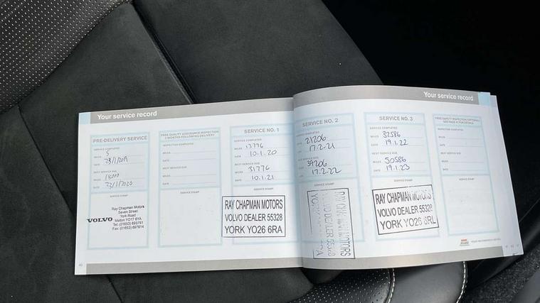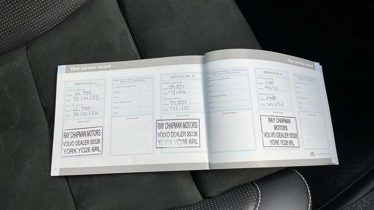 12.3" Active TFT crystal driver's instrument display, 9" Touch screen, Adjustable steering wheel force, Bluetooth hands free telephone kit, Drive mode selector, Lane keep assist with driver alert control, Oncoming Lane Mitigation, Sensus navigation system, Speed limiter, Speed sensitive steering, Voice control system, Volvo on call, DAB Digital radio, Steering wheel mounted remote controls, Active bending headlights, Adaptive brake lights, Auto dimming interior mirror, Automatic headlamp levelling, Black stone door mirrors, Black stone roof, Dark tinted glass for rear windows + rear screen + side luggage area window, Dual integrated exhaust pipes with high gloss black surround, Electrically adjustable and heated door mirrors, Embossed rear side roof pillar, Front and rear electric windows, Front tread plates, Headlamp cleaning system, Heated front windscreen, Heated washer nozzles, High gloss black front and rear skid plate, High gloss black lower front bumper, High gloss black mesh grille, High gloss black roof rails, High gloss black window trim, Home safe and approach lighting, LED front fog lights with static cornering light function, LED Headlights + Active high beam incorporating daytime running lights, Rain sensor windscreen wipers, Rear wiper, Roof antenna, Roof spoiler, Visible VIN plate, 12V socket in front tunnel console, 2 zone electronic climate control with air quality system, 3 spoke leather steering wheel with chrome trim, 60/40 split folding rear seat, A-pillar parking ticket holder, Ambient lighting in door panels, Black headlining, Bright metal luggage threshold, Centre console cupholders, Centre console storage box, Contour sports seats with leather/nubuck upholstery, Cooled glovebox, Courtesy lights, Driver seat height/tilt/lumbar adjust, Driver's lower storage shelf, Extended front seat cushions, Front door pockets, Front footwell illumination, Front tunnel storage net, Front/rear reading lights, Glovebox bag hook, Glovebox illumination, Heated front seats, Height/reach adjustable steering column, High gloss centre tunnel deco, Illuminated driver/passenger vanity mirrors, Illuminated front cupholder, Illuminated luggage compartment, Illuminated tailgate, Isofix attachments on outer rear seats, Load protection net, Multicolour theatre lights, Passenger seat adjustable for lumbar support, Perforated leather gearknob, Perforated Leather Key Integrated Remote, Perforated leather steering wheel, Pollen filter, Power memory driver's seat + door mirror memory, Rear armrest / integral cup holders / storage tray, Sports pedals, Underfloor stowage compartment, ABS/EBD, City safety, Drivers knee airbag, DSTC-Dynamic Stability and Traction Control, Dual stage driver/passenger airbags, EBA, Electronic parking brake with auto hold, Fasten seatbelt reminder, First aid kit, Front seat side impact airbags, Hill descent control, Hill start assist, Inflatable curtain, Passenger airbag cut-off device, Road sign information display, Run off Road Mitigation, Run off Road Protection, Seatbelt pre-tensioners, Side impact protection, Tyre pressure monitoring system, Warning triangle, WHIPS whiplash protection system - front, Anti-theft alarm including immobiliser/volume sensor + level sensor, Fuel flap with deadlocking system, Key integrated remote control central locking, Locking wheel nuts, Private locking, Cutting edge aluminium inlay,