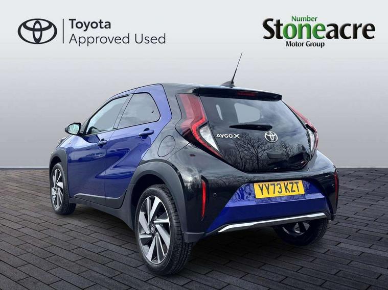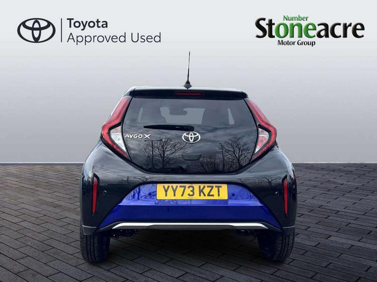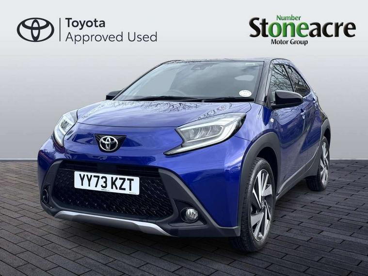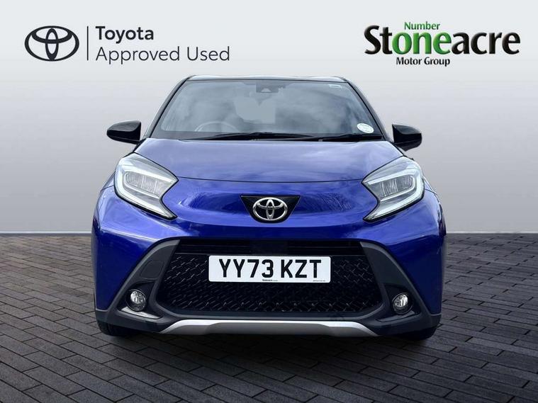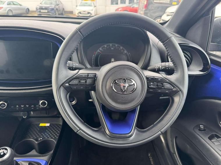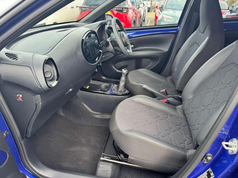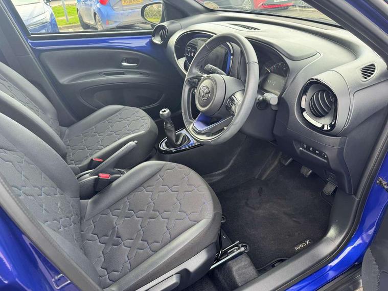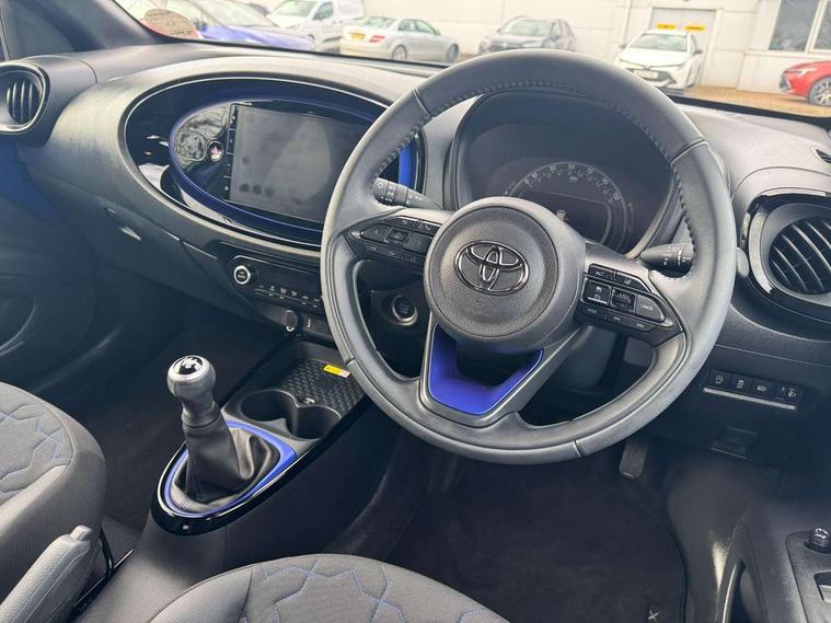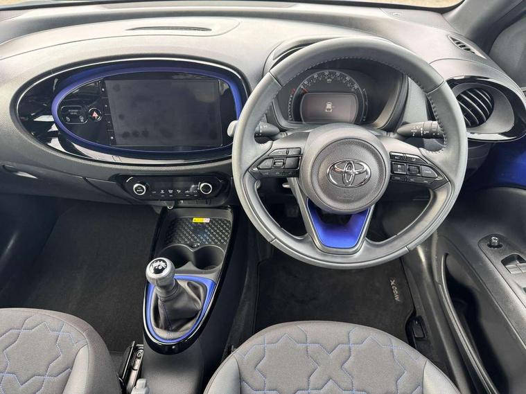 4.2" TFT colour screen, Adjustable speed limiter, Analogue speedometer, Bluetooth connectivity, Digital tachograph, Driver attention alert system, eCall emergency call system, Electric power steering, Front and rear parking sensors with auto brake, Intersection turn assist, Key reminder warning, Noise reduction kit, Pre collision system with emergency steering assist, Remote boot door release on key, Reversing camera with static guide lines, Smart entry and push button start, Speed limit display, Start and stop, Wireless charger, Wireless Smartphone Integration includes Apple CarPlay and Android auto, Vehicle Stability Control (VSC), 4 speakers, 9" HD multimedia display touch screen with Toyota smart connect, DAB digital audio broadcast, USB connector, Auto headlights, Auto wipers, Automatic headlights cut-off, Automatic high beam On/Off switch, Bicycle towing hook, Black fog light surrounds, Black side protection mouldings, Black wheel arch mouldings, Body colour door handles, Body coloured front bumper, Boot door scuff plate, Eclipse black rear bumper, Electric heated door mirrors, Follow me home headlights, Front and rear underruns in silver, Front fog lights, Front power windows, Gloss black door mirrors, Gloss black upper front grille, Headlight cut-off reminder, LED daytime running lights guide, LED front light guide, LED High mounted stop lamp, LED projector headlights, Manual day/night rear view mirror, Manual headlight levelling, Pagoda roof, Power adjustable door mirrors, Power back door, Privacy glass, Rain sensor, Rear combination lights LED bulb type, Rear side wing doors, Rear windscreen defogger, Rear windscreen wiper, Remote hazard lights system, Short antenna, Variable intermittent windscreen wipers, 12v power outlet - front, 2 seat bench in 2nd row, 3 spoke leather steering wheel, 50/50 split folding rear seat, Adhesive roof headlining, Adjustable speed limiter switch on steering wheel, Audio and telephone switches on steering wheel, Auto air conditioning, Black roof lining, Body colour satin anodised insert on steering wheel, Boot light, Centre room light, Chrome interior door handles, Chrome surround on air conditioning buttons, Clean air filter, Console box storage, Floor mats, Front and rear cup holders, Front head rest deco art, Front head restraints, Height adjustable driver seat, Intelligent adaptive cruise control switch on steering wheel, ISOFIX child restraint system on rear seats, Lane departure alert switch on steering wheel, Leather gearshift knob, Light blue ambient lighting in centre console, Manual tilt steering wheel, Manually reclining and sliding driver seat, Manually reclining and sliding front passenger seat, Multimedia switches on steering wheel, Partial synthetic leather upholstery, Pollen filter, Rear door pockets, Rear head restraints, Satin silver insert on gear shift knob, Single compartment glovebox with lights, Single front passenger seat, Soft tonneau cover, Sun visors with mirror on driver and passenger side, Voice recognition switch on steering wheel, Toyota safety sense pack - Aygo X, Anti lock braking system + Electronic brake force distribution, Child safety door lock, Emergency brake light signal (EBS), Hill start assist control (HAC), Passenger airbag on/off switch, Seat belt reminder for front and rear seats, Supplement restraints system (SRS) - 6 airbags, Traction control, Tyre pressure warning system, Immobiliser, Remote power door locks, Black wheel centre caps, Tyre repair kit,
