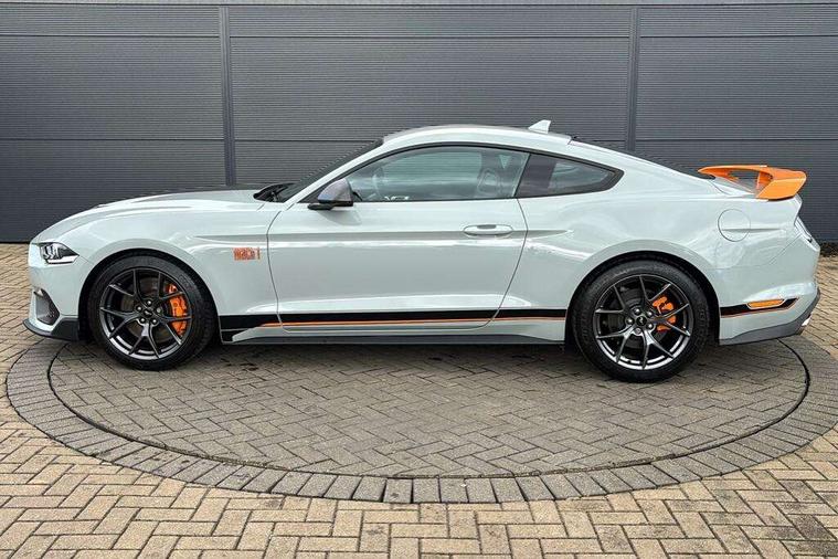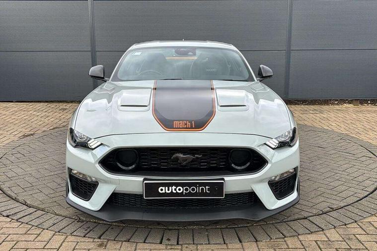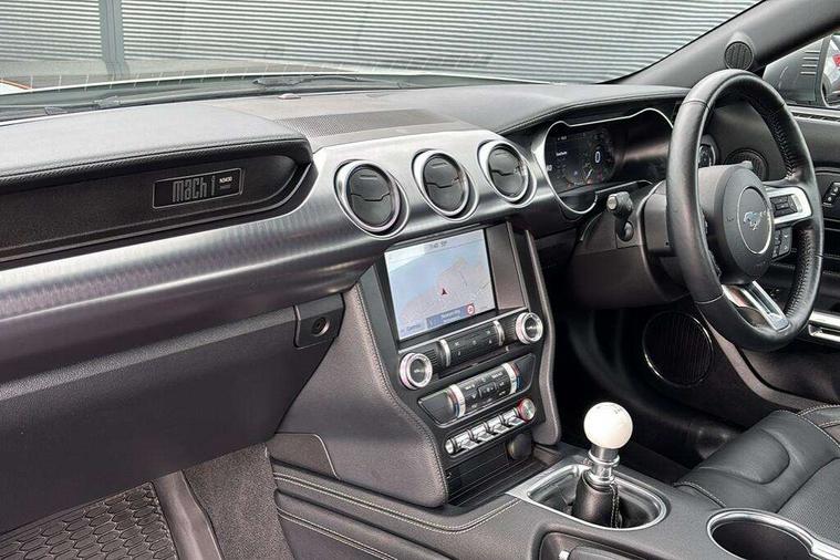 12" digital LCD instrument cluster, 8" colour touch screen, Apple car play/Android Auto, Bluetooth connectivity with voice control, Cruise control with adjustable speed limiter, Emergency services call system, Ford copilot 360, Ford pass connect embedded modem, Ford SYNC 3 satellite navigation + B and O 1000w premium audio system with 12 speakers, Lane keeping aid with lane keeping assist, Oil pressure gauge, Rear view camera, Selectable driving modes - normal, mymode, snow/wet, sport+, track and drag mode, Service interval indicator, SYNC Emergency Assistance, Track apps with accelerometer technology, Trip computer, Unique front splitter, belly pan and rear defuser upto 25% more downforce, Unique Mach 1 steering - new EPAS Calibration, front and rear subframe, Launch control, Limited slip differential, Magneride adaptive suspension system, Open air induction system, Unique Mach 1 suspension set up - stiffer bars and front springs, DAB Digital radio, USB connection, 3rd brake light, 5.0 Exterior badge on front wings, Active exhaust system with chrome tips, Auto dimming rear view mirror, Auto high beam, Automatic headlights, Automatic rain sensing wipers, Body colour bumpers, Bonnet air intake, Electric front windows, LED headlamps with daytime running lights and LED fog lamps, LED rear lights, Low gloss magnetic mirror caps, Mach 1 badge on instrument panel with unique chassis number, Mach 1 fender and rear bootlid badge, Magnetic decklid spoiler, Power folding door mirrors with Mustang logo projection puddle lamps, Rear boot, Unique Mach 1 front bumper design, Unique Mach 1 front grille with low gloss magnetic pony badge, 6 way power adjustable front seats and driver seat power lumbar adjust, Ambient lighting, Cup holders, Dual electronic automatic temperature control, Front headrests, Heated steering wheel, Illuminated entry system, Individually folding 2 rear seats in 2nd row, Isofix system on outer rear seats, Leather multifunction steering wheel, Reach and rake adjustable leather steering wheel with integrated controls, Rear head restraints, Single front passenger seat, Unique white cue ball gearknob, Track capable aero dynamics pack - Mustang, Track capable cooling pack - Mustang, Unique Mach 1 stripe pack - Mustang, 4 seatbelts, ABS, Drivers knee airbag, Dual front airbags, Electronic Line Lock, Electronic Stability Control (ESC) with three settings, ESP, Front side airbags, Pre-collision assist with AEB and pedestrian and cyclist detection, Side curtain airbags, Tyre pressure monitor, Ford key free system with power starter button and keyless entry, Immobiliser, MyKey system, Thatcham Cat.1 alarm, Michelin pilot sport 4 tyres, Tyre repair kit,