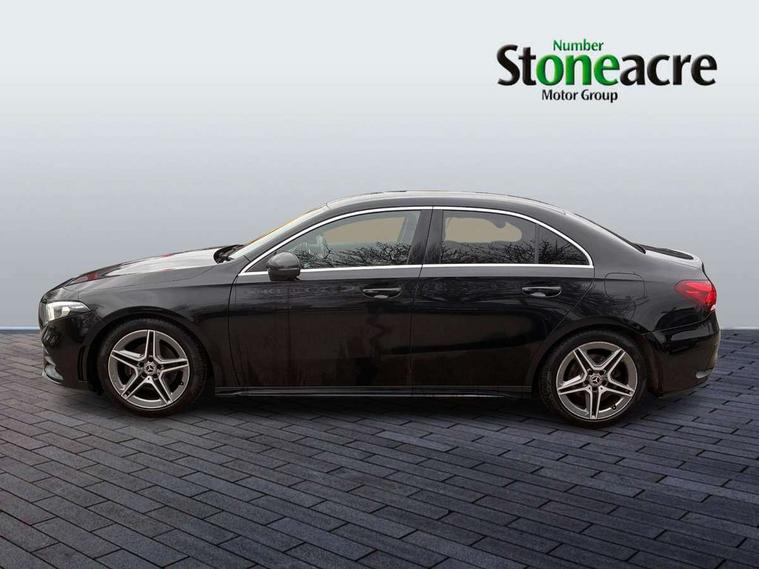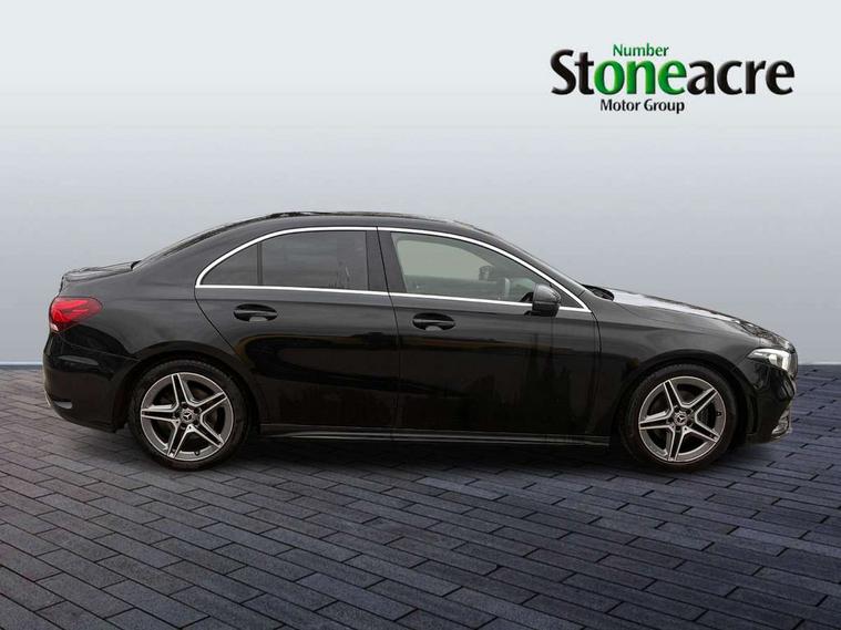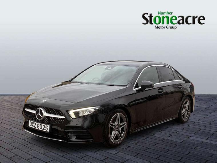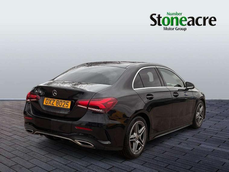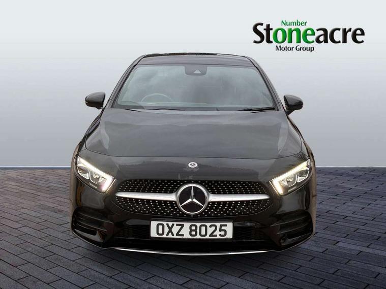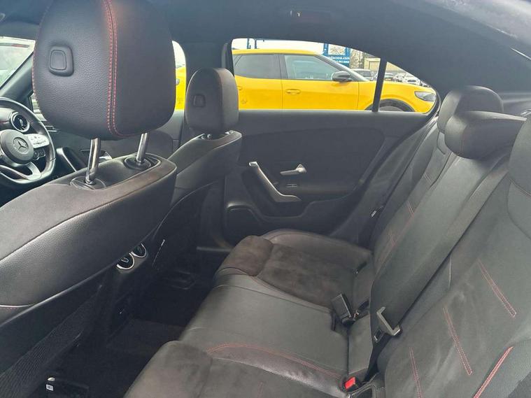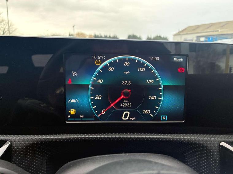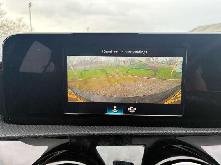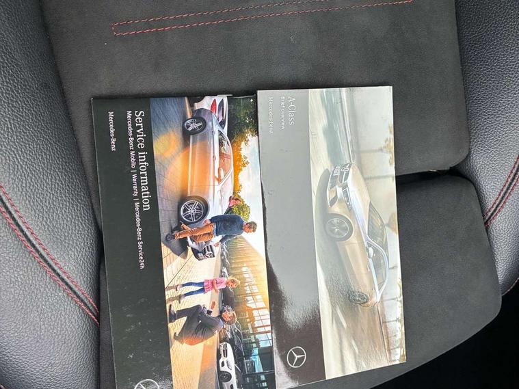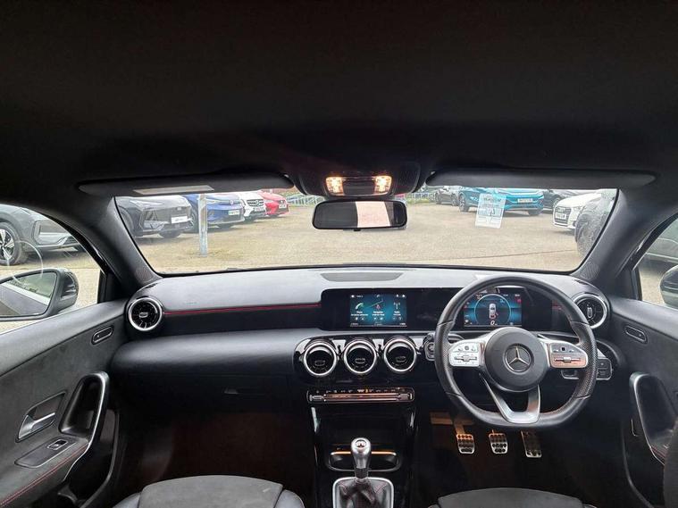 180 degree rear view camera with parking guidelines, 7" colour screen in instrument panel, 7" touchscreen media display, Active lane keep assist, Attention assist, Brake pad wear indicator warning light, Car wash mode, Cruise control + speed limiter, Direct steering, Dual bluetooth interfaces, DYNAMIC SELECT with a choice of driving modes (ECO, Comfort, Sport and Individual), ECO start/stop function, Fluid level warning indicator for fuel, oil, coolant and washer fluid, Hard-disk navigation, Hey Mercedes Voice activation, Lamp failure indicator, Mercedes me connect including emergency call system, accident recovery, breakdown and maintenance management, Outside temperature gauge, Owners manual in English, Pre-installation for private car sharing, Pre-installation for Vehicle Monitoring, Pre-installation for Vehicle Setup, Preinstallation for Mercedes Benz link, Service indicator (ASSYST), Speed sensitive power steering, Trip computer, Lowered comfort suspension, Rear axle torsion beam, 2 USB ports (type C) in rear stowage compartment and one in front of center console, 6 speakers, DAB Digital radio, MBUX multimedia system with DAB digital radio and touchpad including satellite navigation, Mercedes-Benz sound system - 100W, 4 Electric Front and Rear windows, Adaptive brake lights, AMG bodystyling - Front apron with splitter in chrome, rear apron with chrome trim and chrome visible trim elements in tailpipe, Black weather strip, Body colour bumpers, Body colour door handles, Body colour side skirt, Body coloured door mirrors, Chrome beltline trim, Diamond radiator grille with chrome pins and silver louvre + chrome insert, Electric adjustable and heated door mirrors with integrated LED side indicators, Exhaust system - Twin visible tailpipes in polished stainless steel, Headlamp assist automatic headlamp activation, Heated glass rear windscreen + timer control, LED high performance headlamps with integrated LED daytime running lights, LED tail lamp, LED third brake light, Privacy glass, Radio aerial, Rain sensing windscreen wipers with two sensitivity settings, Rear fog lights, Window line trim strip in chrome, 3 Spoke flat bottom leather multi function steering wheel with perforated leather in grip area, 40:20:40 split folding rear seats, Artico man-made leather/Microfibre Dinamica upholstery with red contrast stitching, Auto Mercedes-Benz child seat recognition sensor, Black air vents with surround in silver chrome, Black roof lining, Brushed stainless steel sports pedals with rubber studs, Controller on centre console with chrome surround, Floor mats with stitched edging and AMG lettering, Front centre armrest with storage compartment, Front door sills with Mercedes Benz lettering, Front seat backs luggage nets, Front seat cushion length adjustment, Front sports seats with adjustable head restraints, Heated front seats, Height/reach adjustable steering column, Interior mirror with reading lamps in black and frameless, Manual height adjustable front seats, Rear head restraints, Seat occupancy sensor for front passenger seat, Sunvisors with illuminated vanity mirrors, Touchpad on center console, Twin front cupholders, Two zone thermotronic luxury automatic climate control, Light and sight pack - A Class, Seat comfort pack - A Class, 3 rear 3 point seatbelts, ABS with Brake Assist, Active bonnet, Active brake assist includes forward collision warning system with autonomous braking, Adaptive brake assist with hold function and hill start assist, Black seatbelts, Childproof locks manually operated for rear doors and electrically operated for rear power windows, Crash responsive emergency lighting, Driver and passenger head and side airbags, Drivers knee airbag, Dual stage driver/passenger airbags, Electronic parking brake, ESP curve dynamic assist, ESP with ASR, Front and rear seatbelt reminder, Front brake callipers with Mercedes Benz lettering, ISOFIX and top tether child seat fixing points in two outer rear seats, Tyre pressure monitoring system, Warning triangle and first aid kit, Window airbags, Alarm system/interior protection/immobiliser, Keyless Go, Remote central locking and crash sensor with emergency opening function, Urban guard vehicle protection system with immobiliser and interior protection, Dinamica microfibre trim in black, 18" AMG 5 twin spoke light alloy wheels in titanium grey with highsheen finish, Summer tyres, Tirefit sealant kit,