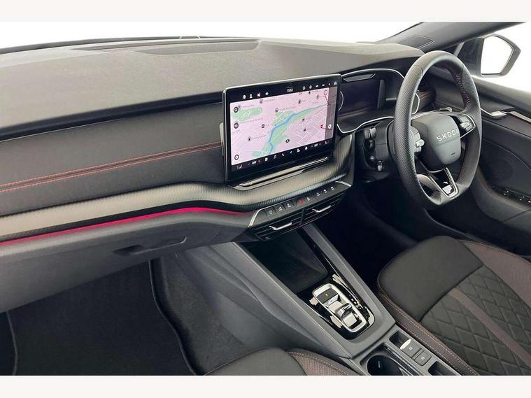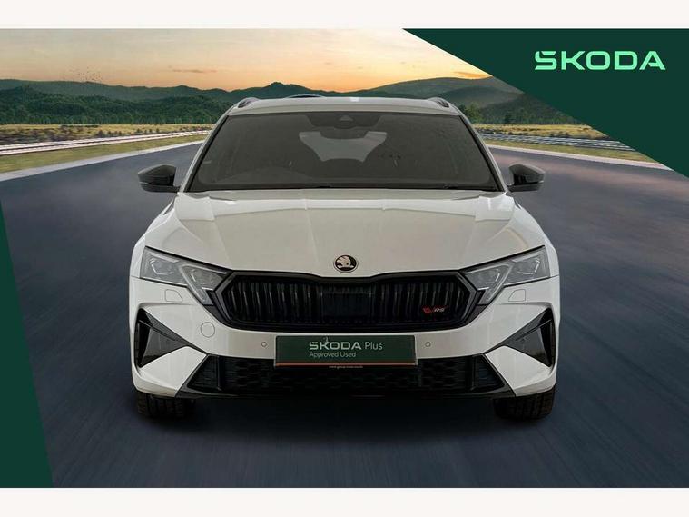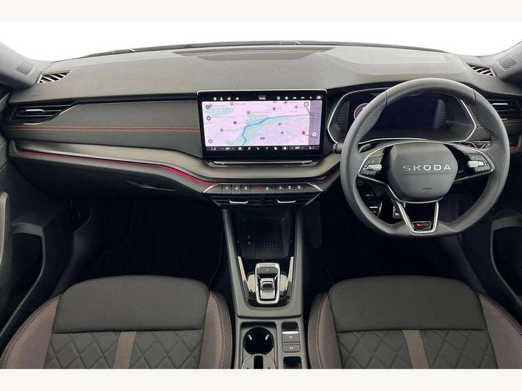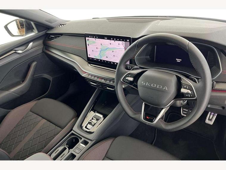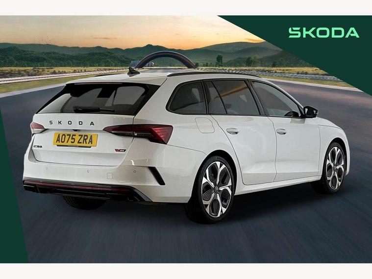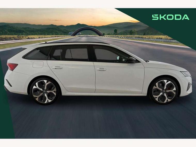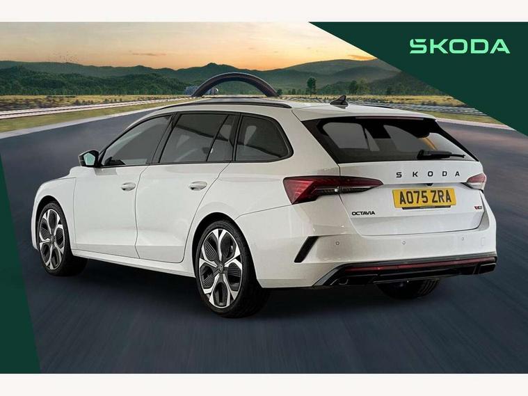 1x USB Typc C port in rear view mirror, 4x USB Type C ports - 2x in front centre console and 2x in rear (45W), Drive mode selection, Driver fatigue sensor, eCall emergency system, Electronic engine sound, Front assist system, Progressive dynamic steering, Traffic sign recognition, Turn Assist, Virtual Cockpit - 10.25" digital display, Voice control system, Wireless charging (15W) with cooling function, Wireless SmartLink for Apple CarPlay and Android Auto, Electronically controlled limited slip differential, vRS suspension, 13" touchscreen display with navigation, DAB Digital radio, Aero front windscreen wipers with intermittent function, Auto dimming rear view mirror, Black sport exhaust pipes, Body colour bumpers, Body colour door handles, Bumpers with rear red reflector strip, Electric front and rear windows, Exterior gloss black sports styling including front grille, window surrounds, door mirrors and badging, Gloss black diffuser, Gloss black roof rails, Gloss black spoiler, Heated rear windscreen, High beam control, High level third brake light, Ice scraper in fuel cap, LED daytime running lights, Logo projection in front doors, Rain and light sensors, Rear fog light on one side and reversing lights on both sides, Rear privacy glass, Rear side wing doors, Rear window wiper, Unique vRS bumpers and exterior styling, 12 volt socket in boot, 2x umbrella in door, 3 rear headrests, 3 seat bench in 2nd row, 4 foldable roof handles, Aluminium pedals, Front head restraints, Front sport seats, Heated front seats, Illuminated glovebox, Interior door handles in dark chrome, Jumbo Box storage, Luggage compartment lighting x2 lights, Mechanical rear seat release from boot, Single front passenger seat, Steering wheel in black leather with black stitching, Storage compartments in left and right of boot, Sun visors with mirrors, Sunglasses storage, Three spoke leather sports multifunction steering wheel with paddles, Ticket holder, Unsplit rear bench seat, split folding backrest with centre armrest with cupholder, Waste bin in door panel, Comfort package - Octavia Estate, Family package - Octavia, Light and view package plus - Octavia, vRS Design Selection pack - Octavia, 3x3 point rear seat belts, Alarm with interior monitoring, tilt sensor and back up horn, Curtain airbags and front side airbags, Driver and front passenger airbags, Drivers knee airbag, Electronic parking brake, ESC including ABS, EBV, MSR, ASR, EDS, HBA, DSR, Front central airbag, Hill hold assist, ISOFIX on front passenger seat and outer rear seats, Passenger airbag deactivate switch, Red brake calipers, Three point seat belts in front and rear, Two tone horn, Tyre pressure monitor, Visual and acoustic seat belt reminder, Warning reflectors in front door, Anti-theft wheel bolts, Keyless entry and start/stop, Remote central locking, Gloss black air vent surrounds, 19" Elias anthracite alloy wheels,