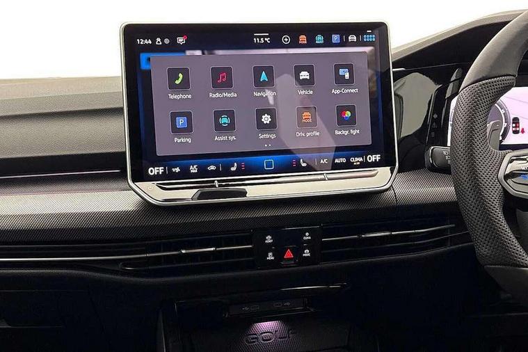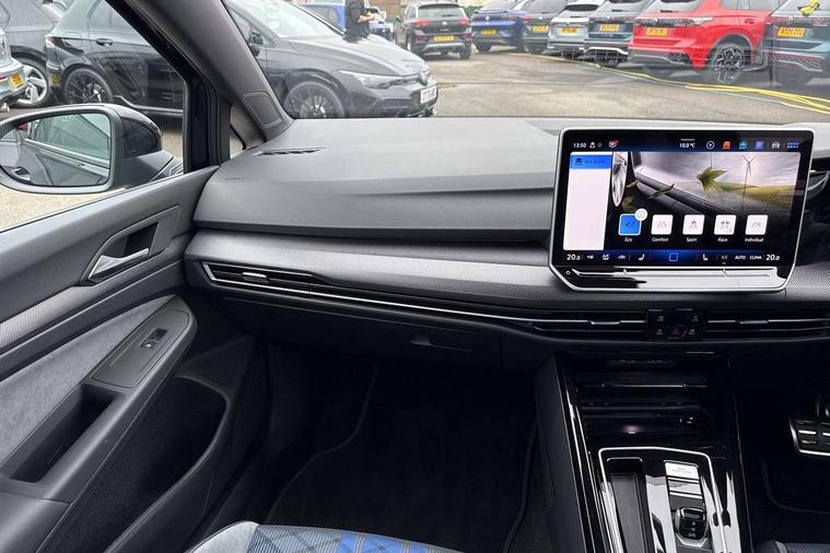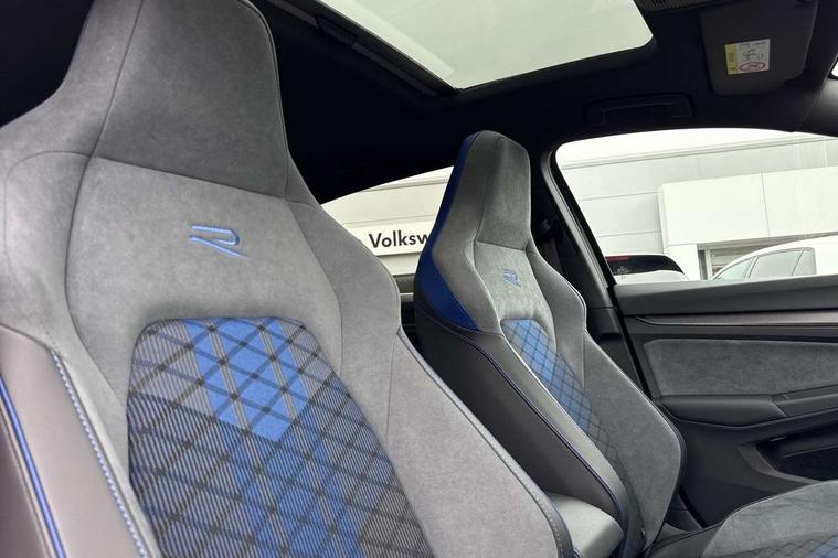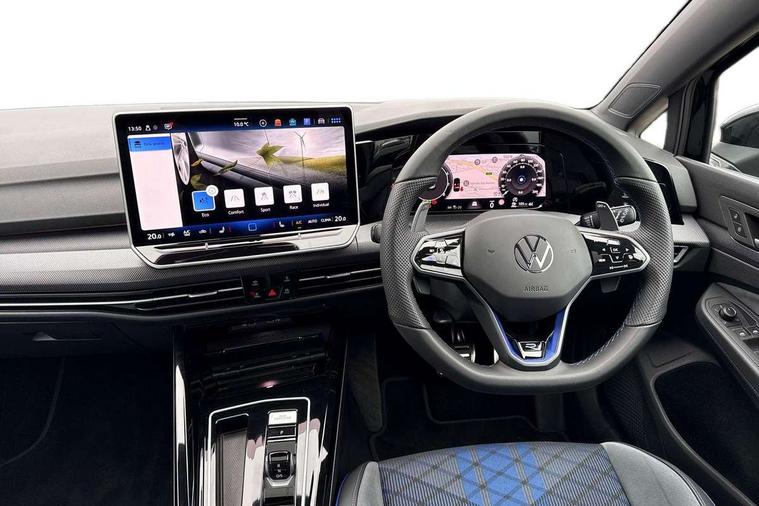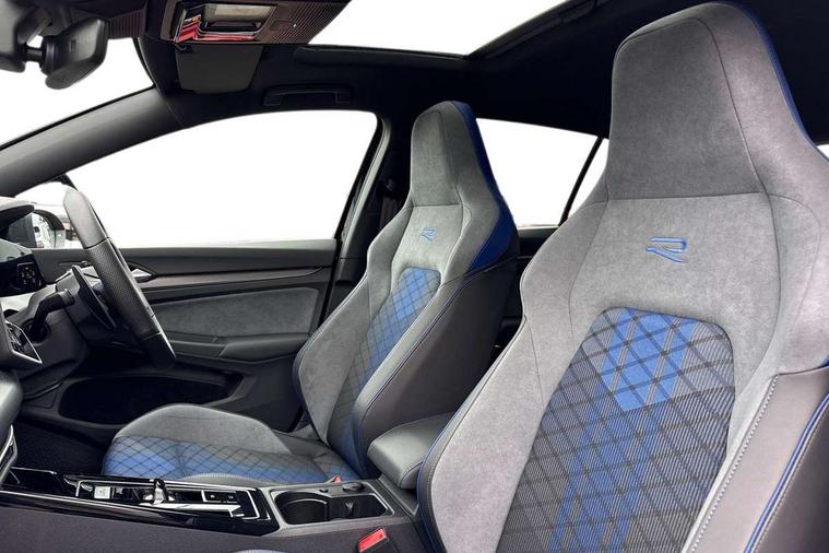 Activated carbon canister, Adaptive cruise control (ACC), Advanced driver attention and drowsiness monitor, Dynamic road sign display, E-Sim card for online connectivity, eCall emergency call system, Electronic maximum speed limit increased to 270 km/h, includes driving Modes 'drift' and 'special', larger roof spolier and GPS laptimer + G-Meter, Multi-color Digital cockpit pro, selection of different info profile possible, Multifunction front facing camera for distance control, Navigation system, Oncoming vehicle braking when turning including swerve support, Progressive steering, Side assist blind spot lane change system, rear traffic alert and exit warning system, Speed limiter, Speedo, rev counter, electronic odometer, trip, service interval display, exterior temperature and fuel gauge, Traffic jam assist, Voice enhancer and voice control, Warning signal and warning light for front and rear seatbelts not fastened, We connect plus preparation, We connect preparation, Wireless app connect, All wheel drive - 4Motion, Petrol Particulate Filter, Start-stop system with battery regeneration (recuperation - energy recovery during braking), XDS electronic differential lock for improved traction and handling, 2 USB C ports in front, 2 USB charging sockets on the centre console in the rear charging capacity upto 45W, Digital radio reception (DAB), Diversity antenna for FM reception, Gaming platform via car app, Infotainment system with 12.9" display, Mobile phone interface with inductive charging feature, 3rd brake light, Auto dimming rear view mirror, Automatic headlamp activation with Coming home and Leaving home feature, Black badge on B-pillar, Black mirror caps, Black strips on radiator grille and headlights, Body colour door handles, Darkened headlights, Darkened R Logos and VW logos in front, rear and on fender, Exterior mirrors convex on the left and aspherical on the right, Front and rear electric windows, Front fog lamps and cornering light, Heat insulating windshield made of laminated glass, Illuminated lighting animation with wake up/goodbye scenario, LED matrix headlights with ambient light V2, advanced high beam, dynamic range contol with cornering, LED rear lamp with indicator, poor weather, LED separate daytime running light, Light assist with High beam control, R name plate, Rain sensor, Rear fog light on one side and reversing lights on both sides, Rear side wing doors, Rear tinted glass 65% light absorbing from B pillar backwards, Rear windscreen washer and wiper with interval delay, Remote electrically foldable door mirrors, puddle lights and reverse activated passenger's door mirror, Welcome light with surround lighting, 12V socket in front centre console, 12V socket in luggage compartment, 3 rear head restraints, 3 seat bench in 2nd row, 30 colour ambient lighting, illuminated center console storage compartment in front, Air care climatronic 3 Zone automatic climate control with rear air conditioning control panel, Aluminium gearshift handle, Brushed stainless steel pedals, Chrome plated radiator grille inserts, air vent surrounds and light switch surrounds, Entry lights, Front + rear black carpet mats, Front centre armrest, Integrated front head restraints, ISOFIX anchors for child seats on outer rear bench seats and on front passanger seat compatible for i-Size, Luggage compartment lighting, Rear cupholder and loadthough, Single front passenger seat, Soul black instrument panel, Soul black roof lining, Split folding backrest with centre armrest and unsplit rear seat bench, Sun visors with illuminated vanity mirrors, Driver assistance pack - Golf Estate/Hatchback Auto, R styling pack - Golf, Technology park and comfort pro package - Golf Hatchback, 3 point height adj front seatbelts + pretensioners, 3 rear three point seatbelts, ABS, Autonomous emergency braking front assist with pedestrian and cyclist monitoring, Child locks on rear doors, Driver and front passenger airbag with front passenger airbag deactivation, Electronic parking brake with auto hold, ESC (Electronic Stability Control), Extended pedestrian protection measures, Front and rear black brake calipers with darkened R-logo, Hill start assist, Rear disc brakes, Two tone horn, Tyre pressure loss indicator, Volkswagen roadside assistance, Anti theft wheel bolts, Preparation for alcohol interlock, Sporty vehicle dynamics, Tool kit for tyre mobility set, Tyre mobility kit Includes 12V compressor and tyre sealant, Wheel hub cover with darkened R-logo,