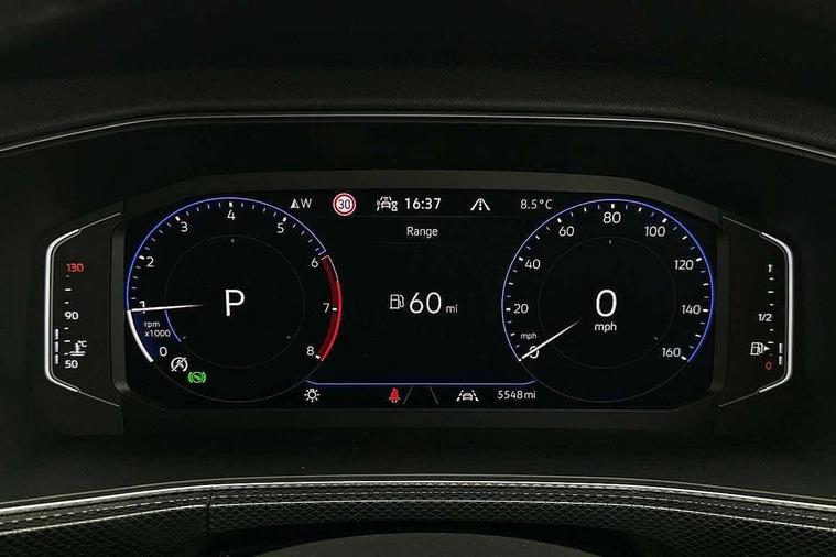 'Lights On' Reminder warning buzzer, 10.25" Digital cockpit pro, Advanced driver attention and drowsiness monitor, Blind spot monitoring, Car information display, Driver profile selection including ECO function, Dynamic road sign display, E-Sim card for online connectivity, eCall emergency call system, Front and rear parking sensors, Front assist, forward collision warning, autonomous emergency braking and speed limiter, Low washer fluid warning light, Multifunction computer with visual gear change recommendation for fuel consumption, Multifunction front facing camera for distance control, Operating permit alteration, Power assisted steering, Predictive adaptive cruise control, Preparation for navigation system with media and internet package, Preparation for We connect and We connect plus, Semi-automated driving assistance, travel assist including lane keeping system Lane Assist and emergency assisst, Speedo, rev counter, electronic odometer, trip, service interval display, exterior temperature and fuel gauge, Warning sound and light for doors and tailgate open, Warning sound and light for front seatbelts unfastened, Wireless Car net app connect with Apple CarPlay, combined functionality of Apple CarPlay/Android Auto and MirrorLink, Wireless charging, Misfuel prevention device, Start-stop system with battery regeneration (recuperation - energy recovery during braking), 2 USB C ports in front, 2 USB charging sockets on the centre console in the rear charging capacity upto 45W, Diversity antenna for FM reception, Music playback - MP3, WMA and AAC files, Radio, Automatic dimming interior rear view mirror, Automatic hazard lights activation under emergency braking, Automatic headlight control with LED separate daytime running light and coming home and leaving home feature, Body colour door handles, Body colour door mirrors, Body coloured bumpers, Dynamic headlight range control with self adjusting whilst driving, Electric folding door mirror, adjustable, heated with front passenger exterior mirror lowering function, Exterior mirrors convex on the left and aspherical on the right, Front and rear electric windows, Front door sill protectors with R-Line logo, Galvanised body, Heat insulating and laminated safety glass windshield, Heat insulating darkened glass in side and rear windows, High Beam Assist, automatic sensing for switching between dipped and main beam, LED rear combination lights, LED third brake light, Lower door sills and door pillars in black, Privacy glass for rear side windows and rear window, Rain sensor, Rear fog light on one side, reversing light on both sides, Rear side wing doors, Rear window aerial, Rear window wiper with intermittent control, Reflectors in all doors, Scuff plates, Tailgate with integrated roof spoiler, 12V Accessory socket in centre console, 2 Front and rear reading lights incorporating LED technology, 3 rear head restraints, 3 seat bench in 2nd row, 60/40 split folding rear seat backrest, Air care climatronic 2 zone air conditioning system, Ambient lighting, Brushed stainless steel pedals, Chrome plated radiator grille inserts, air vent surrounds and light switch surrounds, Cloth upholstery, Comfort front sport seats, Door and side trim panel, Drawer under drivers seat, Driver and front passenger sunvisor with vanity mirror, Dust and pollen filter, Front + rear carpet mats, Front centre armrest with storage compartment, Front footwell illumination, Front seat back storage pockets, Glove compartment door with light, Heated front seats, Heating and fresh air system with 4 stage blower, Height/reach adjust steering wheel, Instrument lighting white adjustable panel illumination, Interior light with switch off delay and dimmer, Isofix anchors for child seats on outer rear seats and front passenger seats, Leather gearshift handle, Leather wrapped multifunction steering wheel, Luggage compartment floor, Luggage compartment lighting, Manual front seats with height adjustment, Padded dashboard, Removable luggage compartment cover, Single front passenger seat, Storage compartment in drivers and front passengers door, Titanium black roof lining, Unsplit sliding rear seat bench, 3 point outer rear seat belts with ECE label, 3 Point seatbelt for centre rear seat, Anti-lock Braking System (ABS) with Hydraulic Brake Assist (HBA), Automatic post collision braking system, Disc brakes in front, Disc brakes in rear, Driver and front passenger safety-optimised head restraints, Drivers and Front Passengers airbags with front passengers airbag deactivation switch, ESC with EDL and ASR (traction control), Extended and predictive pedestrian/cyclist protection, Front and rear passenger curtain airbag system including front side airbags, Height adjustable front 3 point seatbelts + pretensioners, Hill start assist, Pre crash preventive occupant protection, Proactive passenger protection system in combination with front assist, Rear door child safety locks, Rigid safety cell with front and rear crumple zones, Single tone horn, Tyre pressure loss indicator, Volkswagen roadside assistance, Alarm with interior protection, Anti theft alarm system, Electronic engine immobiliser, Remote tailgate unlocking using key fob, Titanium Black Decorative inserts - R Line, Low rolling resistance tyres,