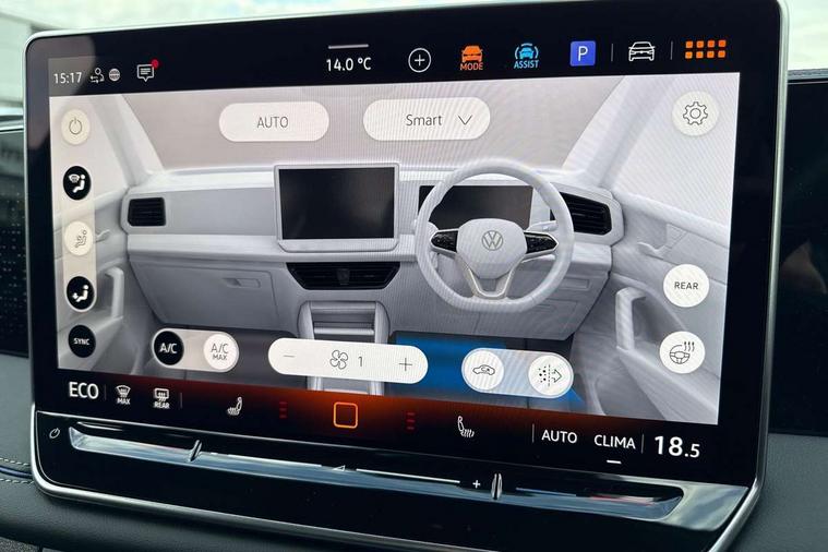 Adaptive cruise control (ACC), Advanced driver attention and drowsiness monitor, Bluetooth mobile phone interface, Car2X technology, Digital Cockpit Pro - 10.25" high resolution dash display screen with customisable menus and information, Dynamic road sign display, E-Sim card for online connectivity, eCall emergency call service, Front Assist - Autonomous emergency braking with pedestrian and cyclist monitoring, Lane change system, Side assist, Rear traffic alert and Exit warning system, Lane keeping system Lane Assist, Multifunction front facing camera, Oncoming vehicle braking when turning including swerve support, Park assistance plus with front and rear parking sensors, Power assisted steering with speed sensitive, Start/stop system with regenerative braking, Warning signal and warning light for front and rear seatbelts not fastened, Wireless App-Connect, Adaptive chassis control DCC pro includes driving mode selection, Charging cable Mode 3 Type 2 / 3 (16A), Front shock absorption, Front wheel drive, Rear shock absorption, Digital radio reception (DAB), Diversity antenna for FM reception, Air intake with Chrome trim, Ambient lighting with logo projection, Auto dimming interior rear view mirror, Automatic headlight control system, Body coloured door handles, Chrome moldings on the side windows, Coming/leaving home lighting function, Heat insulating glass in side and rear windows, Heated rear window, Heated windscreen washer jets, High level 3rd brake light, Illuminated door handle recesses, Illuminated lightline between headlamps, Laminated safety glass windshield, Rain sensor windscreen wipers, Rear fog light on one side, reversing light on both sides, Rear side wing doors, Rear wiper, 12V outlet in center console rear and in luggage compartment, 12V socket in centre console, 3 bench rear seats in 2nd row, Air care climatronic 3 zone air conditioning system with rear air conditioning control panel, Black roof lining, Brushed stainless steel pedals, Carpet mats, front and rear, Centre console with illuminated storage compartment with sliding cover and two drinks holders, Chrome elements on the mirror switch and power window switches and door pulls, Door and side trim panel with leatherette insert, Door sill protectors, Front centre armrest, Interior ambient lighting with 30 colour options, ISOFIX anchors for child seats on outer rear seats and front passenger seat compatible with i-Size, Mechanical rear seat release, Power adjustable lumbar support in front, Rear bench seat, split folding, longitudinally movable and folding with load-through hatch and centre armrest, Single front passenger seat, Soul headlining, Sports comfort seats in front, Sun visors with illuminated vanity mirrors, Three rear head restraints, Variable luggage compartment floor, 3 point seat belt for centre rear seats, 3 Point seat belts in front with pretensioners, 3 point seatbelts in outer rear with ECE label, Driver and front passenger airbag with front passenger airbag deactivation, Electronic parking brake with auto hold, Front and rear curtain airbags, Front and rear side airbags, Front centre airbag, Front disc brakes, Manual child proof rear door locks, Rear disc brakes, Two tone horn, Warning triangle, Anti theft wheel bolts, Decorative inserts, Interior door handle in matte chrome, Soul instrument panel, Tool kit for tyre mobility set, Tyre mobility kit including compressor and sealing foam,