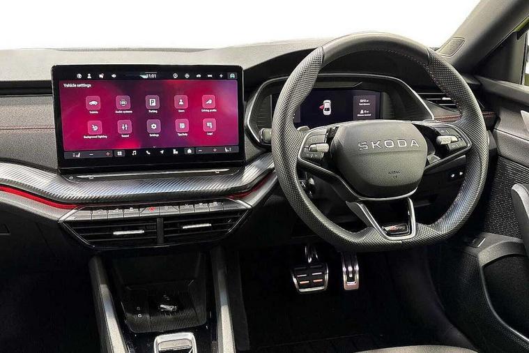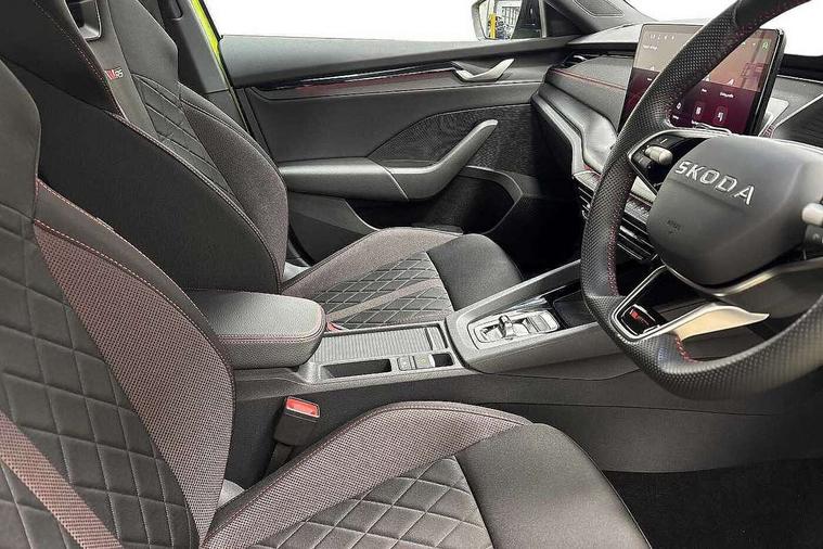1x USB Typc C port in rear view mirror, 4x USB Type C ports - 2x in front centre console and 2x in rear (45W), Drive mode selection, Driver fatigue sensor, eCall emergency system, Electrically operated boot with virtual pedal, Front assist system, Progressive dynamic steering, Traffic sign recognition, Turn Assist, Virtual Cockpit - 10.25" digital display, Voice control system, Wireless charging (15W) with cooling function, Wireless SmartLink for Apple CarPlay and Android Auto, Electronically controlled limited slip differential, vRS suspension, 13" touchscreen display with navigation, DAB Digital radio, Aero front windscreen wipers with intermittent function, Auto dimming rear view mirror, Black sport exhaust pipes, Body colour bumpers, Body colour door handles, Electric front and rear windows, Exterior gloss black sports styling including front grille, window surrounds, door mirrors and badging, Gloss black diffuser, Gloss black spoiler, Heated rear windscreen, High beam control, High level third brake light, Ice scraper in fuel cap, LED daytime running lights, Logo projection in front doors, Rain and light sensors, Rear fog light on one side, Rear privacy glass, Rear side wing doors, Unique vRS bumpers and exterior styling, 12 volt socket in boot, 3 rear headrests, 3 seat bench in 2nd row, 4 foldable roof handles, Aluminium pedals, Front head restraints, Front sport seats, Heated front seats, Illuminated glovebox, Interior door handles in dark chrome, Jumbo Box storage, Luggage compartment lighting x2 lights, Mechanical rear seat release from boot, Parcel shelf - folding, Single front passenger seat, Steering wheel in black leather with black stitching, Storage compartments in left and right of boot, Sun visors with mirrors, Sunglasses storage, Ticket holder, Umbrella in door panel, Unsplit rear bench seat, split folding backrest with centre armrest with cupholder, Waste bin in door panel, Comfort package - Octavia, Family package - Octavia, Light and view package plus - Octavia, vRS Design Selection pack - Octavia, 3x3 point rear seat belts, Alarm with interior monitoring, tilt sensor and back up horn, Curtain airbags and front side airbags, Driver and front passenger airbags, Drivers knee airbag, Electronic parking brake, ESC including ABS, EBV, MSR, ASR, EDS, HBA, DSR, Front central airbag, Hill hold assist, ISOFIX on front passenger seat and outer rear seats, Passenger airbag deactivate switch, Red brake calipers, Three point seat belts in front and rear, Two tone horn, Tyre pressure monitor, Visual and acoustic seat belt reminder, Warning reflectors in front door, Anti-theft wheel bolts, Keyless start/stop, Remote central locking, Gloss black air vent surrounds, 19" Elias anthracite alloy wheels,