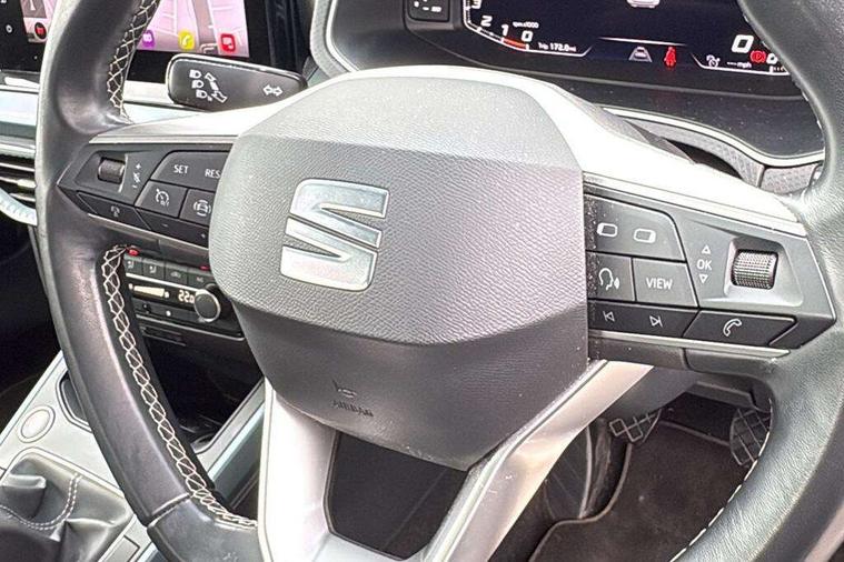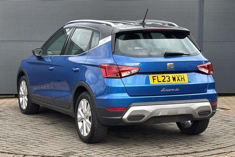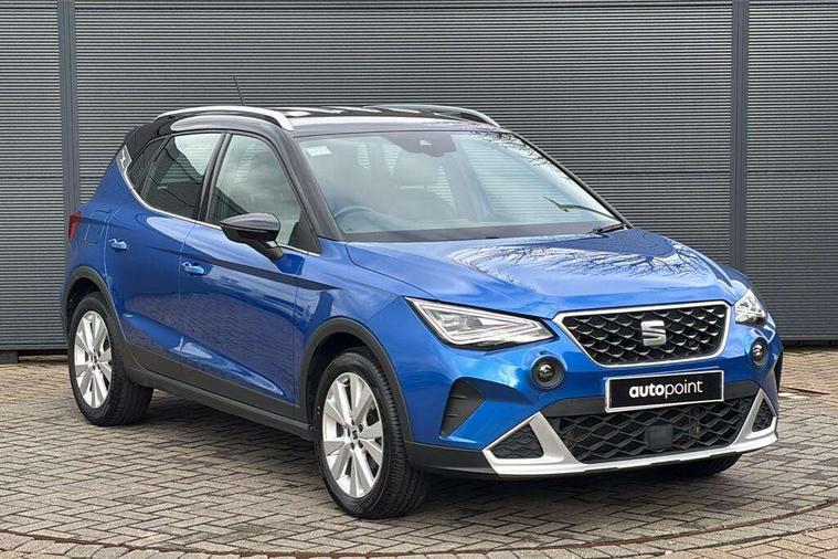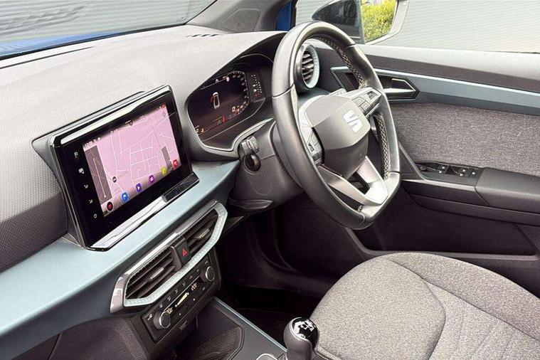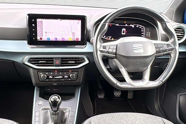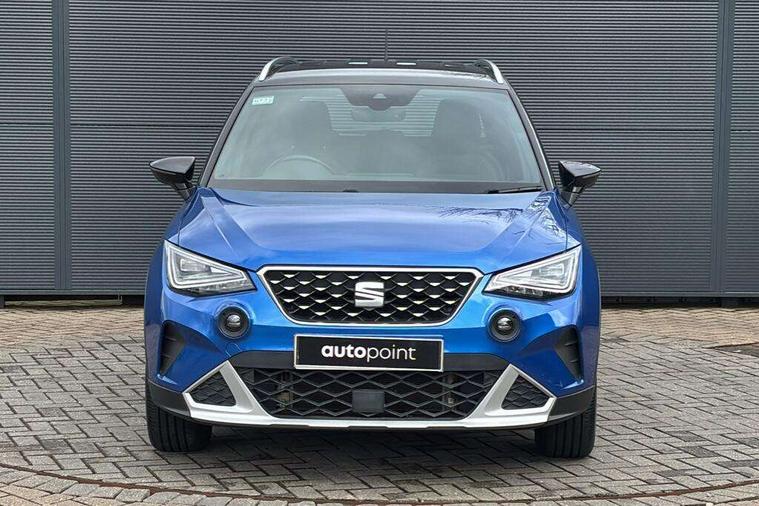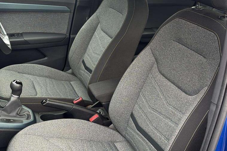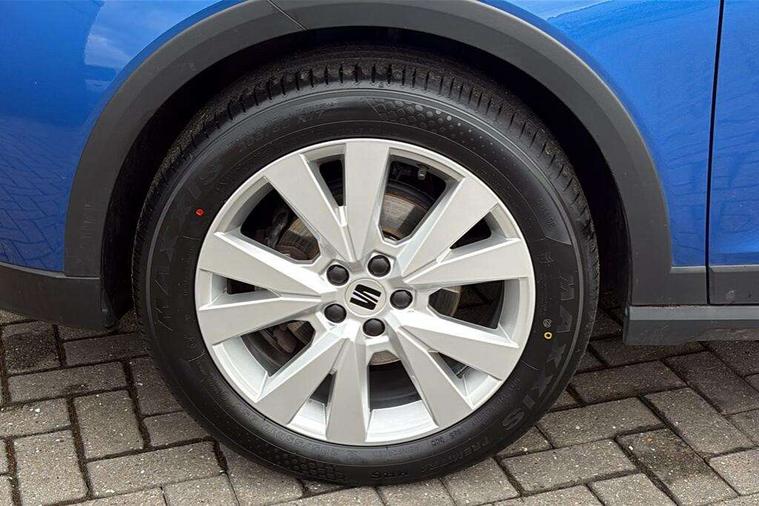 'Lights On' Reminder warning buzzer, 8" Digital cockpit, Digital clock, E-call, Electric speed sensitive power steering, Full Link Smartphone Integration with Mirror Link, Apple Car Play, Google Android Auto with USB Type C cable for Apple and Android compatibility, Lane keeping system, Low fuel warning light, Outside temperature display, Rear parking sensor, RPM counter, Seat connect with safety, service, remote and online, Trip computer, Wireless phone charger, 9.2" colour touchscreen with navigation system, voice control and USB port (type c), Bluetooth interface for hands free and audio streaming, DAB digital radio and AM/FM radio, Steering wheel mounted audio controls, Anti theft roof antenna, Auto dimming interior rear view mirror, Automatic activation of hazard warning lights, Body coloured bumpers, Body coloured door handle inserts, Chrome roof rails and window surrounds, Electric front/rear windows, Electrically adjustable, heated and folding door mirrors, Front fog lights with cornering function and rear fog light, FULL LED automatic headlights with dynamic headlight range control, coming and leaving home, LED daytime running lights, Hidden exhaust pipe, LED rear tail lights and licence plate lights, Protective side mouldings, Rain sensing wipers, Rear side wing doors, Rear spoiler, Rear window wash/wipe, Roof colour door mirrors, Third brake light, Visible VIN plate, Windshield wiper with intermittent control and potentiometer, 2 cupholders, 3 seat bench in 2nd row, 60/40 split folding rear seat, Aircare filter, Black interior roof, Cloth upholstery, Double boot floor, Driver sunvisor with covered mirror + card holder, Dual zone climate control, Flat bottomed leather steering wheel/gear knob/handbrake, Front courtesy light with 2x front and 2x rear reading lights, Front seat back storage pockets, Gear shift indicator, Height adjustable front seats, Height/reach adjustable steering column, Illuminated boot, Instrument lighting with brightness control, Interior ambient lighting, Interior light in footwell, central console and door panel, ISOFIX points in outer rear seats with top tether anchorage points, Leather steering wheel/gear knob/handbrake, Passenger sunvisor with vanity mirror, Single front passenger seat, Storage net on centre console, Two front and three rear height adjustable headrests, Interior chrome pack - Arona, Safety and driving pack (M) - Arona, Storage pack - Arona, 3 point seatbelts on all rear seats, ABS, Active front headrests, Child locks on rear doors, Driver and front passenger airbags with front passenger airbag de activation, front side and curtain airbags, Electronic stability control, Emergency Brake Assist (EBA) and front assist, Front and rear seatbelt reminder, Hill hold control, Multi-Collision braking, Tiredness recognition system, Traction control, Tyre pressure monitoring system, Alarm with back-up horn, Electronic engine immobiliser, KESSY Keyless entry and go, Locking wheel bolts, Remote central locking + deadlocks, Tow away protection, Titan black dashboard, 17" Dynamic alloy wheels,