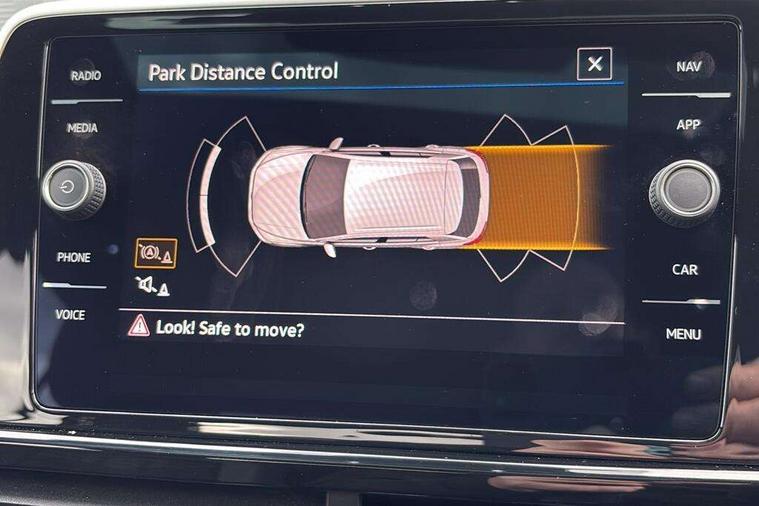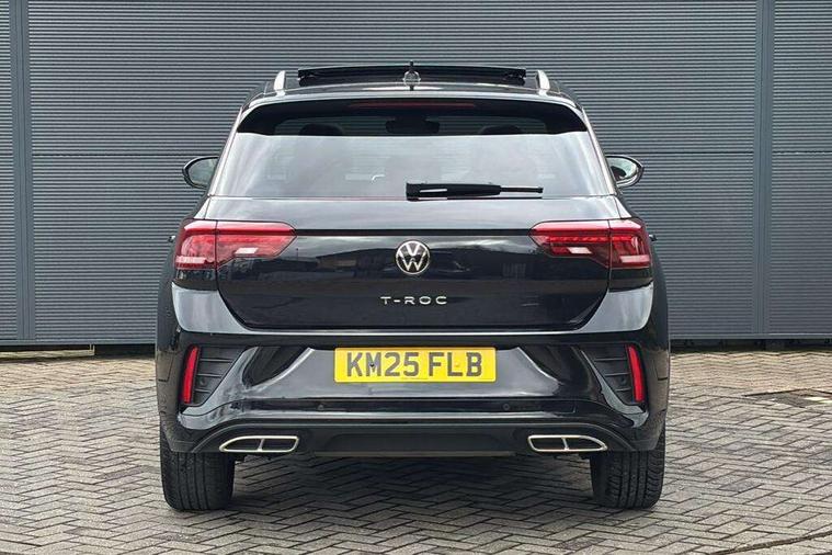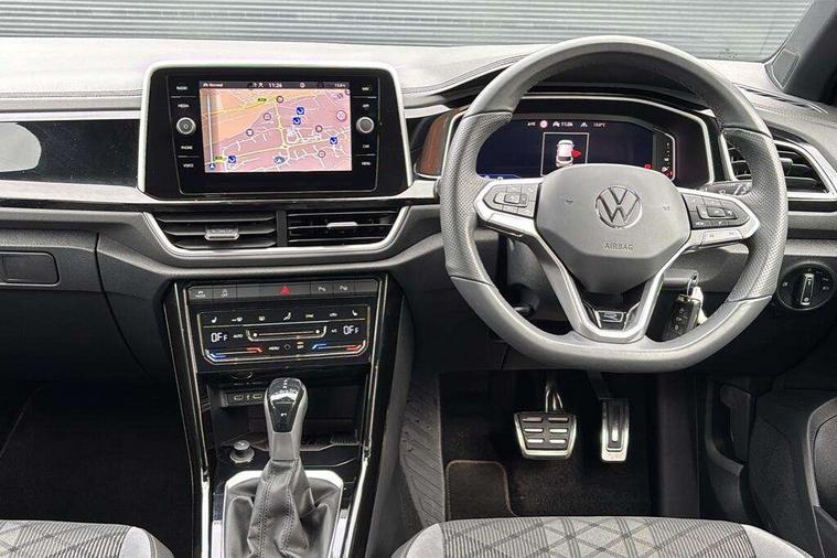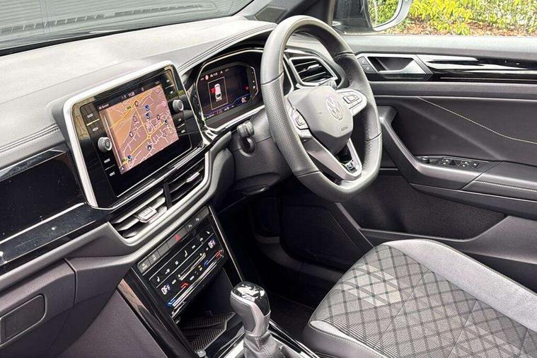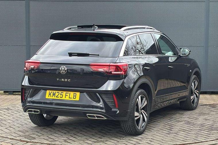 10.25" Digital cockpit pro, Advanced driver attention and drowsiness monitor, Emergency call service, Lane keeping system Lane Assist, Mobile phone interface, Modified key software - reduce switch off time for key status change to Long no motion, Online services, Park assist including front and rear parking sensors, Service interval indicator, Tailgate/trunk lid release from outside, Think blue trainer driver tips and journey analysis, Warning sound and light for front seatbelts unfastened, Wireless app connect, Battery regeneration during braking, Start/stop function with battery regeneration, DAB Digital radio, Diversity antenna for FM reception, Front and rear 6 speakers, Music playback - MP3, WMA and AAC files, Premium USB cable in choice of either Apple or Android smartphone compatibility, SD card slot, Simultaneous pairing of 2 compatible mobile devices, Title and cover art display, We Connect and We Connect Plus functionality, Auto dimming interior rear view mirror, Automatic hazard lights activation under emergency braking, Automatic headlight control with LED separate daytime running lights with coming/leaving home function, Body coloured exterior mirror housings and door handles, Electrically adjustable and heated door mirrors, Extended roof spoiler, Exterior mirrors aspherical on driver side, convex on front passenger side, External USB type C socket and charging sockets, Front windscreen wiper with intermittent wipe and 4 position delay, Heated rear window, LED 3rd brake light, LED rear combination lamps, LED rear number plate lights, Power windows with comfort operation and circuit breaker, Privacy glass for rear side windows and rear window, R-Line design body coloured bumpers, Rain sensor, Rear exhaust tailpipe, Rear fog light on one side and reversing lights on both sides, Rear side wing doors, Rear wash/wipe with intermittent wipe setting, Remote electrically foldable door mirrors, puddle lights and reverse activated passenger's door mirror, 12V power socket in centre console, 3 rear head restraints, 3 seat bench in 2nd row, 4 load lashing points in luggage compartment, Air care climatronic air conditoning system with active combination filter and 2-zone temperature control, Black roof lining, Chrome plated decorative trims, Chrome plated radiator grille inserts, air vent surrounds and light switch surrounds, Door and side trim panel with leatherette insert, Front + rear carpet mats, Front centre armrest, Front cupholders x 2, Front footwell illumination, Front reading light, Front scuff plates with R Line logo, Front seat back storage pockets, Glove compartment door with light, Instrument lighting, white adjustable panel illumination, Interior ambient lighting and surround lighting, Interior light delay, Isofix child seat preparation, Leather gearshift handle, Load-through provision with cup holder when folded down ('Unsplit rear seat bench, split folding backrest, with centre armrest), Luggage compartment lighting, Single front passenger seat, Stainless steel pedals, Storage compartment in left and right luggage area, Storage compartment in rear doors, Storage compartments in driver and front passenger doors, Sunvisors with illuminated vanity mirrors, Variable boot floor, height adjustable and removable, Driver assistance pack without proactive passenger protection - T-Roc, 3 point height adj front seatbelts + pretensioners, 3 point seatbelts in outer rear with ECE label, ABS, Child locks on rear doors, City emergency braking and pedestrian monitoring, Driver and front passenger airbag with front passenger airbag deactivation, Driver and front passenger safety-optimised head restraints, Drivers seatbelt reminder, Electronic parking brake, Electronic Stability Control (ESC) inc EDL (Electronic Differential Lock) and ASR (Traction Control), Front and rear passengers curtain airbag system including front side airbags, Hill start assist, Predictive pedestrian protection, Rear disc brakes, Two tone horn, Tyre pressure loss indicator, Volkswagen roadside assistance, Piano black decorative inserts in dashboard and front door trim panels, Trims for alloy wheels,