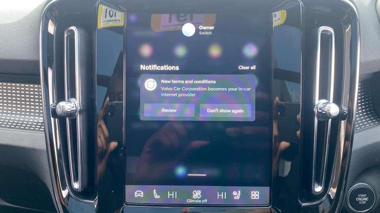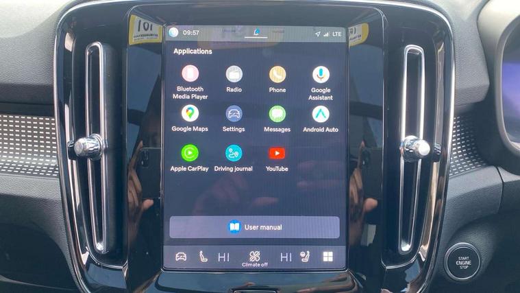 12.3" Progressive Driver Display, 360 degree surround view parking camera with side proximity sensors, 9" centre console portrait touch screen, Adjustable steering wheel force, Android auto (Wired), Apple carplay (wired), Bluetooth handsfree system, Driver alert control, Driver assistance (pilot assist and adaptive cruise control), Driver awareness - Blind spot information system with steer assist, cross traffic alert with autobrake and rear collision warning and mitigation, E-call, Front park assist, Google automotive services - Enabled entertainment apps, navigation with google maps, voice recognition with google assistant, Hands free power tailgate, Intelligent speed assistance, Lane keeping aid, Oncoming Lane Mitigation, Rear park assist, Speed sensitive steering, Volvo cars services with app - Driving journal, emergency and breakdown call, engine remote start, remote door locking/unlocking and vehicle dashboard, Wireless/Inductive Mobile Phone Charging, Automatic transmission with start/stop and manual change functions, Dynamic chassis, DAB Digital radio, Premium Sound by Harman Kardon, Dolby Pro Logic II Surround Sound, Dirac Unison, 12 speakers/600W and subwoofer, Steering wheel mounted remote controls, Active bending pixel LED headlights with adaptive shadow technology, Active high beam incorporating daytime running lights, Adaptive brake lights with high level LED brake lights, Auto dimming feature for exterior door mirrors, Auto dimming interior mirror, Automatic headlamp levelling, Colour coordinated auto folding and heated power door mirrors, Dark tinted windows - rear side windows and rear screen, Front aluminium tread plates, Front and rear electric windows, Headlight cleaning system, High gloss black front and rear skid plate, High gloss black front bumper deco, High gloss black front grille strikethrough and ironmark, High gloss black rear model, engine and volvo logo badges, High gloss black window trim, Home safe and approach lighting, Integrated roof rails in high gloss black, LED front fog lights with cornering function, Power glass tilt and slide panoramic sunroof with sun curtain, Puddle lights, Rain sensor with automatic windscreen wiper activation, Rear side wing doors, Rear wiper, Roof antenna, Roof spoiler, Visible VIN plate, 12V socket in front tunnel console and luggage compartment, 2-Zone electronic climate control with CleanZone air quality system and pollen filter, 3 seat bench in 2nd row, 3 Spoke tailored steering wheel with chrome trim, 60/40 versatile split folding rear seat, Centre console cupholders and storage, Charcoal headlining, Connect textile/microtech upholstery, Flexible load floor and grocery bag holder, Floor mats, Front cabin courtesy lights, Front door pocket, front cupholder, ambient front door, rear reading, rear courtesy, instrument panel and tailgate lighting, Front footwell illumination, Front headrests, Front reading lights, Front seat cushion extensions, Front side step illumination (under door), Glovebox bag hook, Heated front seats, Height/reach adjustable steering column, High gloss centre tunnel deco, Illuminated glovebox, Illuminated luggage compartment, Illuminated vanity mirrors + ticket holder, Integrated waste bin, Isofix attachments on outer rear seats, Load cover, Load protection net, Multi directional lumbar support for driver and passenger seat, Power driver seat with memory + exterior mirrors memory, Power folding rear headrests, Power passenger seat, Rear armrest with cupholders, Single front passenger seat, Underfloor cargo storage, Climate pack without heated front seats - XC40, 3x3 point rear seatbelts, City safety with steering support with Pedestrian + cyclist + front collision warning with full auto brake and rear auto brake, Driver and passenger airbags, Drivers knee airbag, Electronic parking brake with auto hold, First aid kit, Front and outer rear seatbelt reminder and pretensioners, Front seats SIPS airbags, Hill descent control, Hill start assist, Inflatable curtain, Passenger airbag cut-off device, Power child locks on rear doors, Road sign information display, Run off Road Protection, SIPS (Side Impact Protection System), Slippery road and hazard light alert, Stability and Traction Control with Spin control, Engine Drag Control and Corner Traction Control, Tyre pressure monitoring system, Vehicle deceleration control with Anti-lock Brake System, Electronic Brake Distribution and Emergency Brake Assist, Warning triangle, WHIPS whiplash protection system - front, 2 x Key integrated remote control central locking including with deadlocking system and auto open/close windows and sunroof, Anti-theft alarm including immobiliser/volume sensor + level sensor, Keyless drive includes keyless entry and keyless start, Locking wheel nuts,