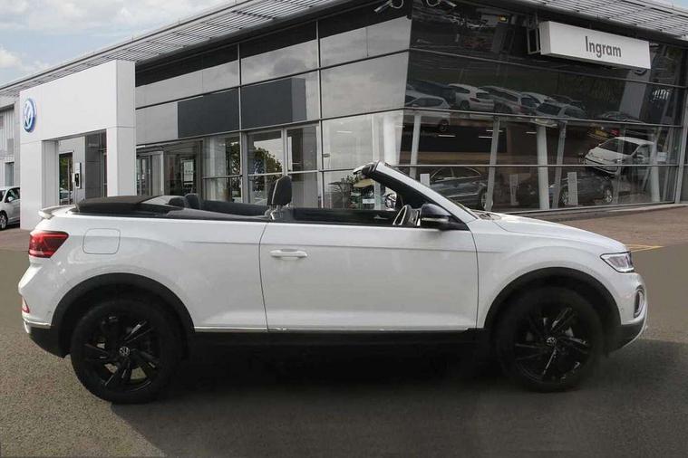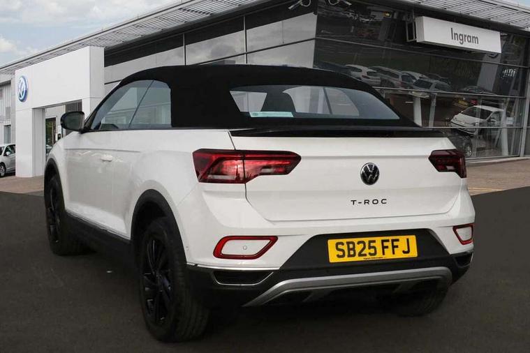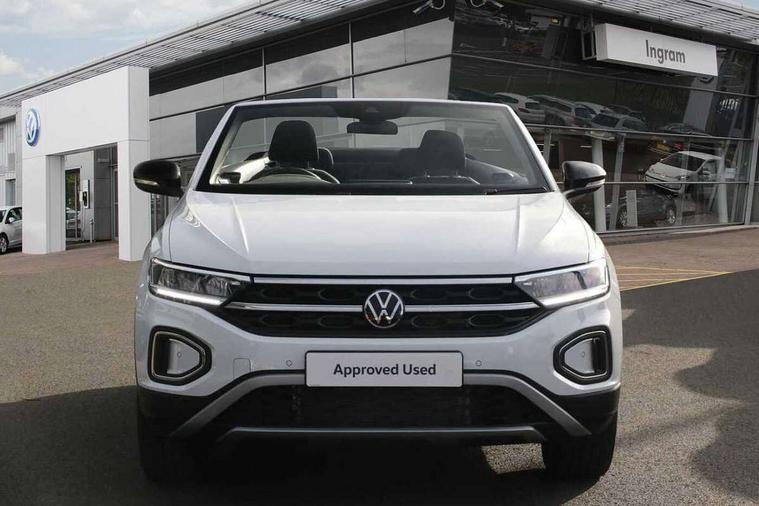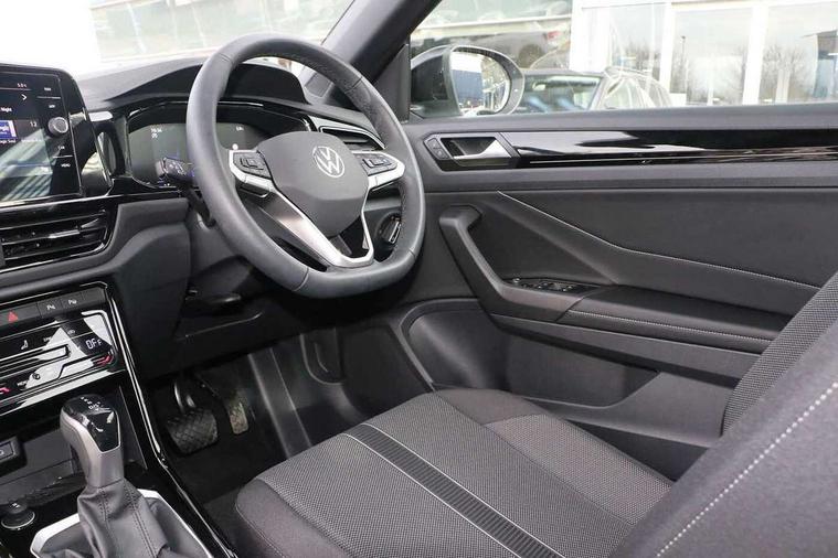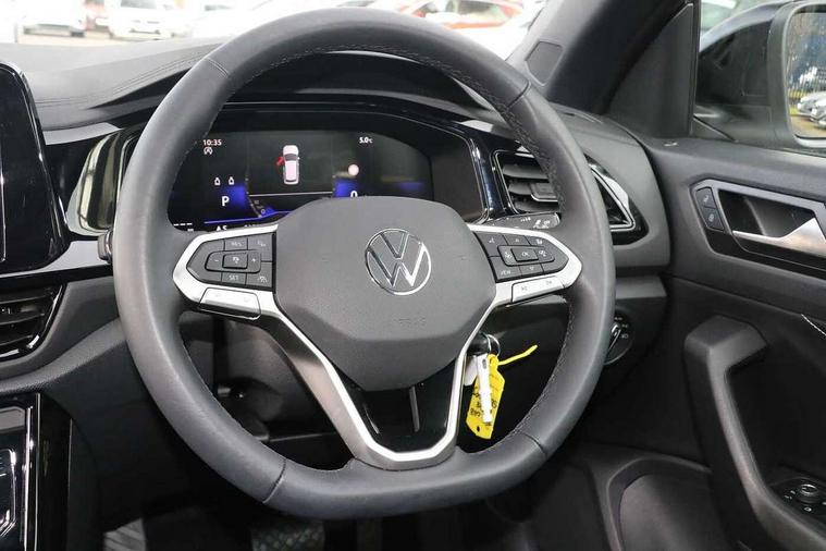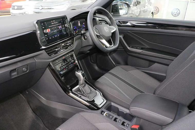 Adaptive cruise control and speed limiter, Advanced driver attention and drowsiness monitor, Brake pad wear indicator, Car information display, Driver tips and journey analysis, Dynamic road sign display, Emergency call service, Modified key software - reduce switch off time for key status change to Long no motion, Multifunction computer with visual gear change recommendation for fuel consumption, Multifunction front facing camera, Online services, Park assist including front and rear parking sensors, Speedo and rev counter, electronic odometer, trip, service interval display and exterior temperature gauge, Start/stop system with brake energy recovery, Tailgate/trunk lid release from outside, Warning sound and light for front seatbelts unfastened, Wireless App-Connect for apple Carplay and android Auto, Digital radio reception (DAB), Diversity antenna for FM reception, Mobile phone interface with inductive charging feature, Music playback - MP3, WMA and AAC files, SMS functionality - read, compose and send SMS messages using touch-screen display, Title and cover art display, USB-C Interface and USB charging socket, We Connect and We Connect Plus functionality, Ambient lighting with logo projection, Auto dimming interior rear view mirror, Automatic hazard lights activation under emergency braking, Automatic headlight control with LED separate daytime running lights with coming/leaving home function, Black roof, Body colour door handles, Body colour rear boot spoiler, Body coloured bumpers and radiator grille with chrome trim and front fog lamps with chrome bezel, Chrome effect left and right trapezoid exhaust tailpipe fascia surround, Dark red rear combination lamps in LED technology, Dusk sensor, Exterior mirrors aspherical on driver side, convex on front passenger side, Headlight range control, Heat insulating glass windscreen, LED 3rd brake light, LED rear number plate lights, Power operated canvas convertible top, Power windows with comfort operation and circuit breaker, Rain sensor, Rear boot, Rear exhaust tailpipe, Rear fog light on one side and reversing lights on both sides, Remote electrically foldable door mirrors, puddle lights and reverse activated passenger door mirror, Volkswagen roundel, Windscreen wiper with intermittent wipe light, Without exterior ambient lighting, 12V socket in centre console storage area, 2 LED front reading lights, 2 seat bench in 2nd row, 50:50 Split folding rear seat backrests with fixed rear seat bench, Air care climatronic air conditoning system with active combination filter and 2-zone temperature control, Black door lower parts with chrome trim, Chrome plated surround to light, mirror and window switch, Door and side trim panel with leatherette insert, Easy entry backrest release, Front and rear carpet mats with black stitching, Front centre armrest, Front cupholders x 2, Front door pockets, Front seat back storage pockets, Heated multi function steering wheel with tiptronic, Height/reach adjust steering wheel, Instrument lighting, white adjustable panel illumination, Interior light delay, Interior light in footwell, Interior lighting with switch off delay and contact switches on all doors, Interior white ambient lighting and surround lighting, Isofix child seat preparation, Lockable glove compartment with light, Luggage compartment lighting, Rear head restraints, Single front passenger seat, Sun visors with illuminated vanity mirrors, Driver assistance pack without proactive passenger protection - T-Roc Cabriolet DSG, 2 x 3-point seatbelts/outer rear seats with ECE label, Driver and front passenger airbag with front passenger airbag deactivation, Driver and front passenger safety-optimised head restraints, Drivers seatbelt reminder, Electronic parking brake, Electronic Stability Control (ESC) including ABS, ASR and EDL, Front and rear disc brakes, Front assist with autonomous emergency braking, Pedestrian monitoring, Predictive pedestrian protection, Rigid safety cell with front and rear crumple zones, Side airbag/thorax airbag system, for front passengers, Three point height adjust front seatbelts + pretensioners, Two tone horn, Tyre pressure loss indicator, Volkswagen roadside assistance, Anti-theft alarm system with interior protection and central locking system with SAFELOCK, radio remote control and 2 remote control folding keys, Electronic engine immobiliser, Trims for alloy wheels,